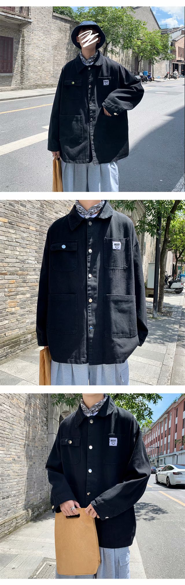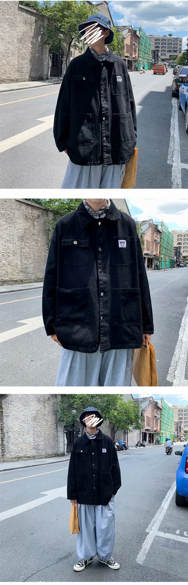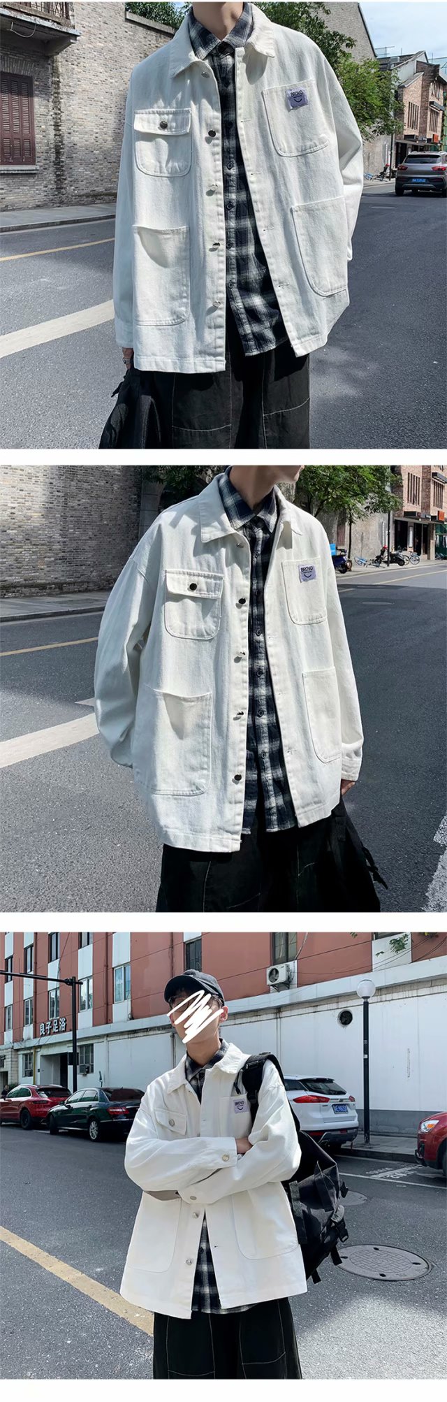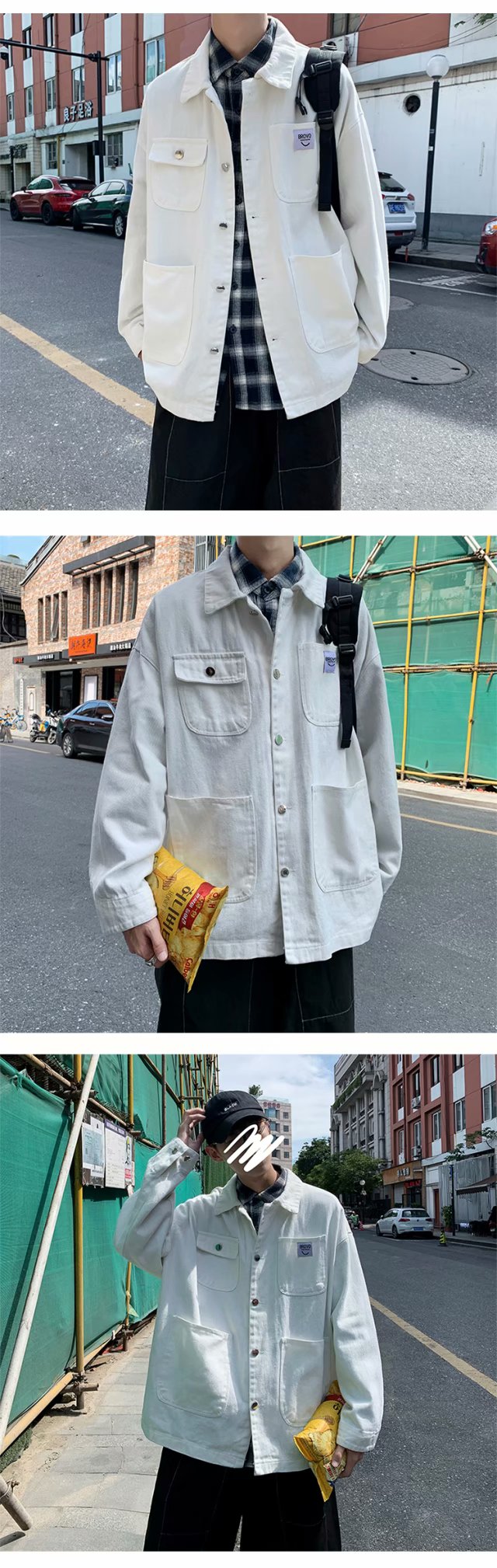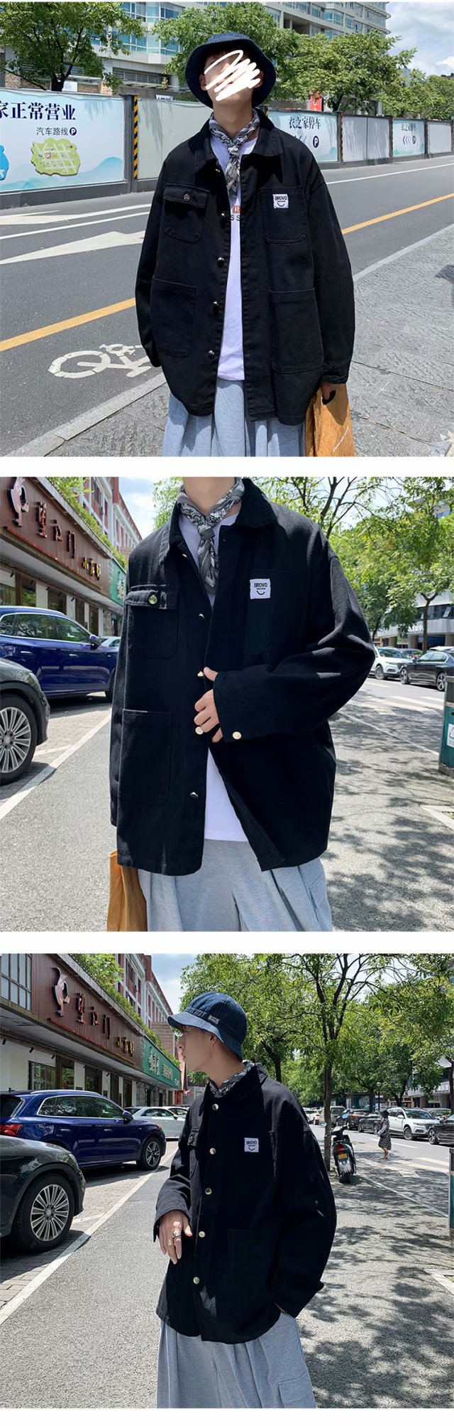 实拍 日系韩版简约宽松纯色百搭夹克上衣男港风休闲开衫潮流外套