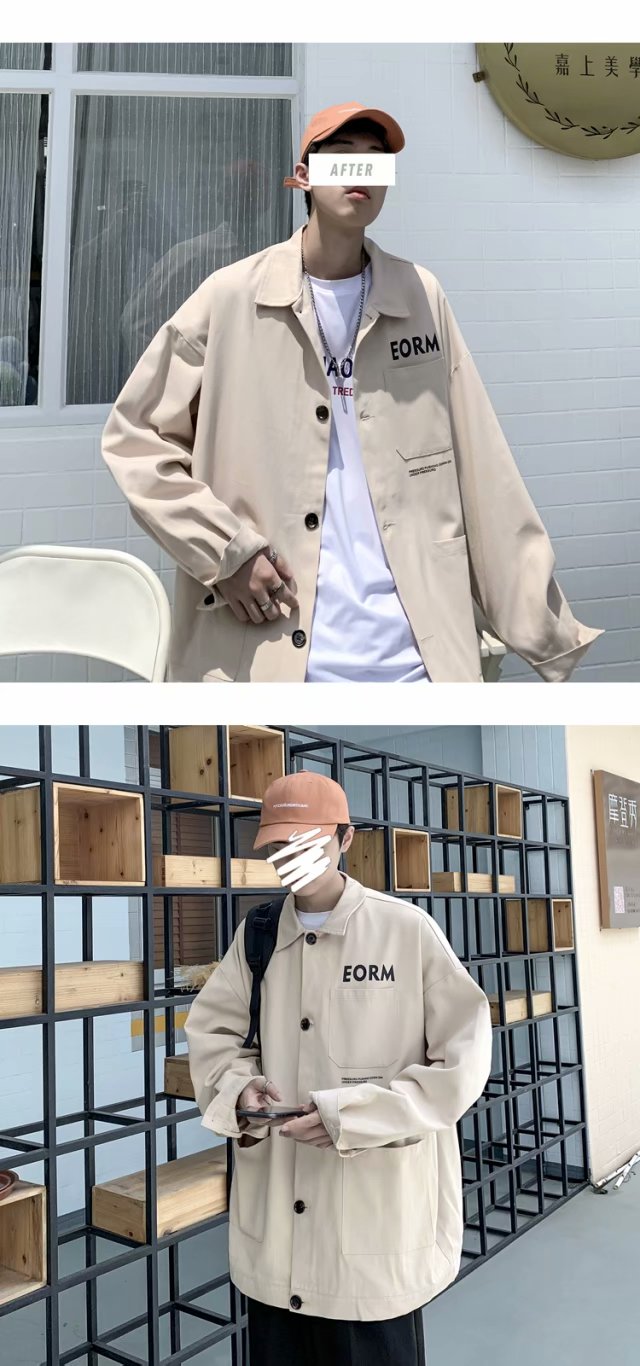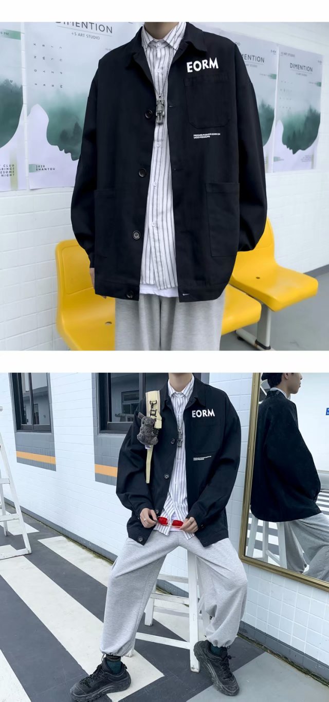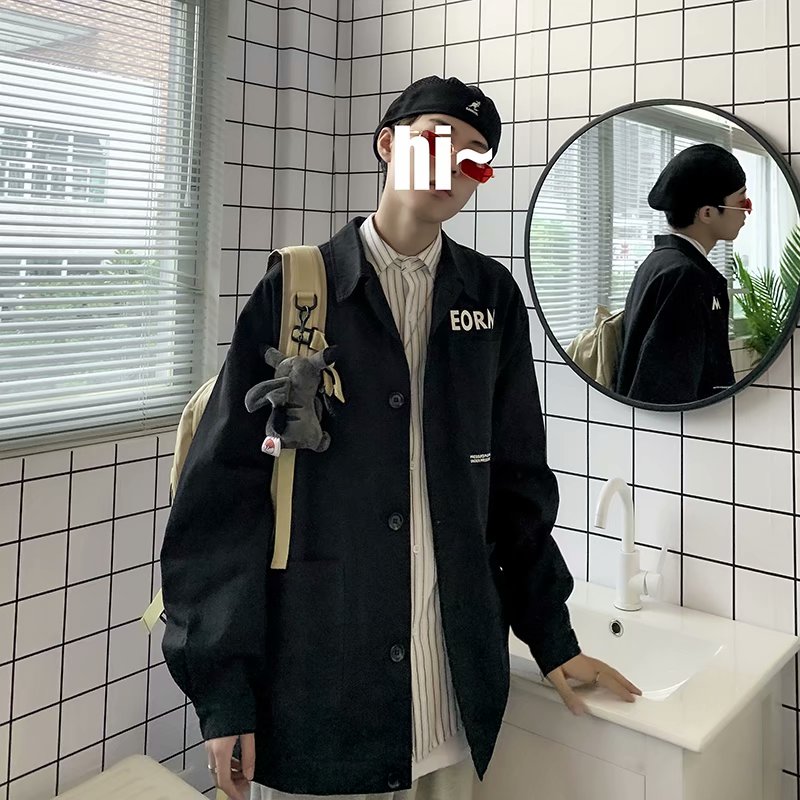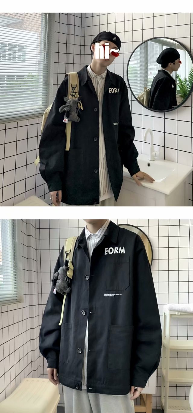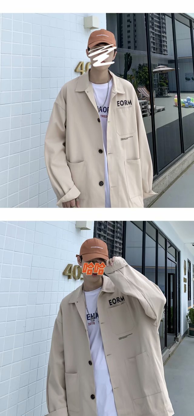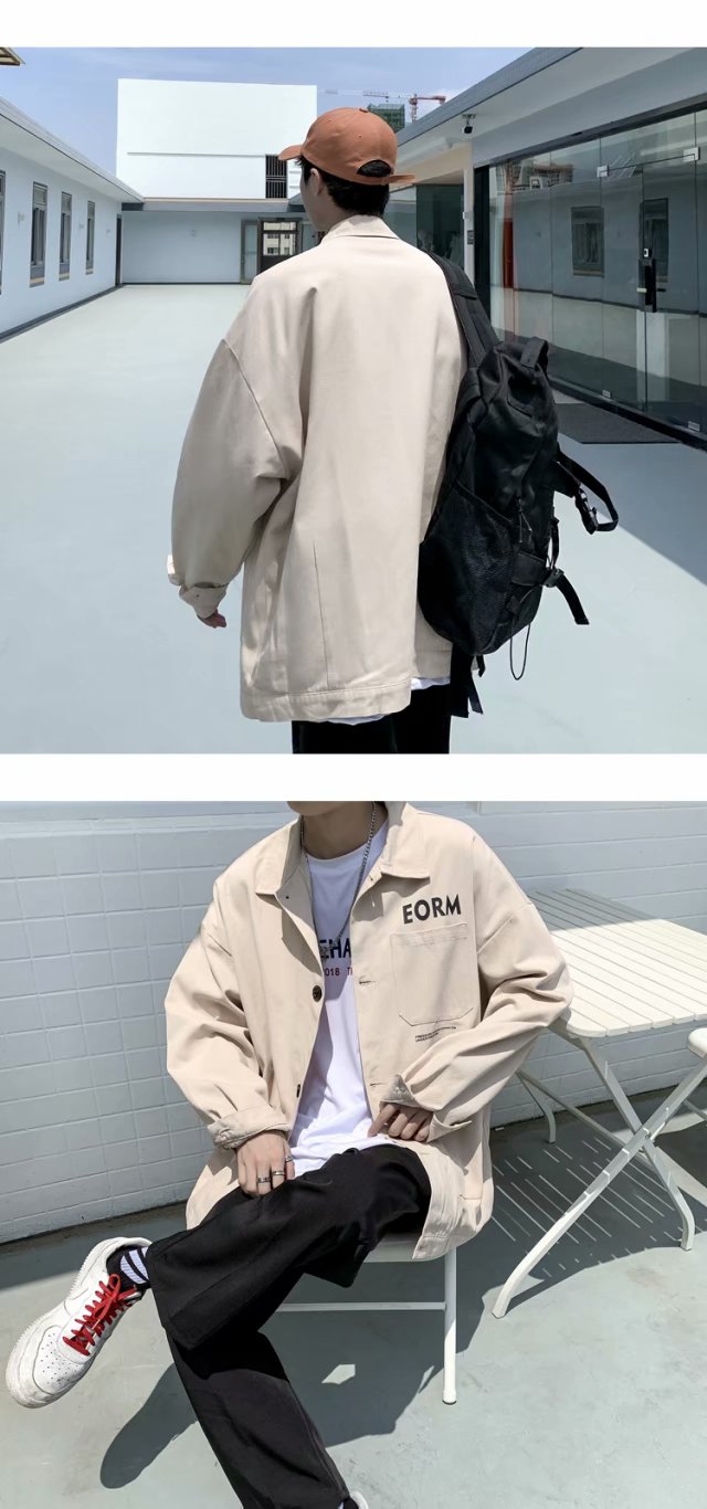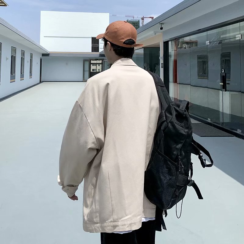实拍 韩版日系青年纯色百搭开衫上衣男港风街头休闲宽松夹克外套