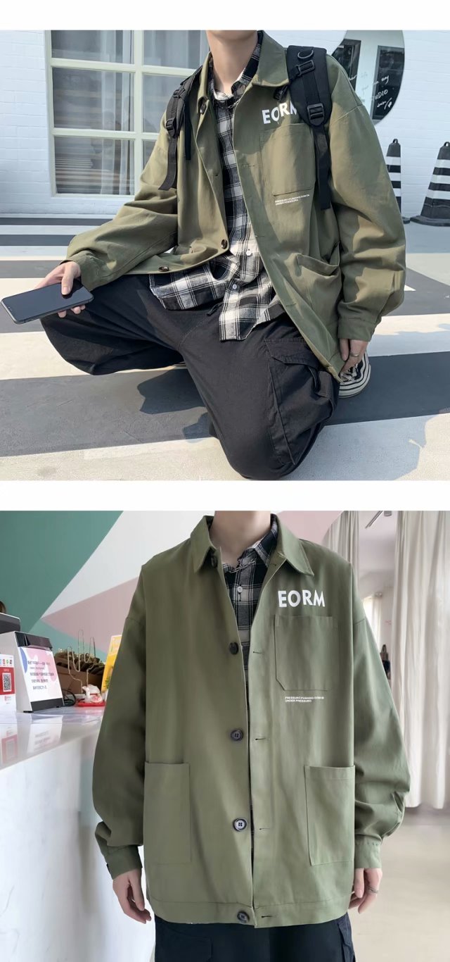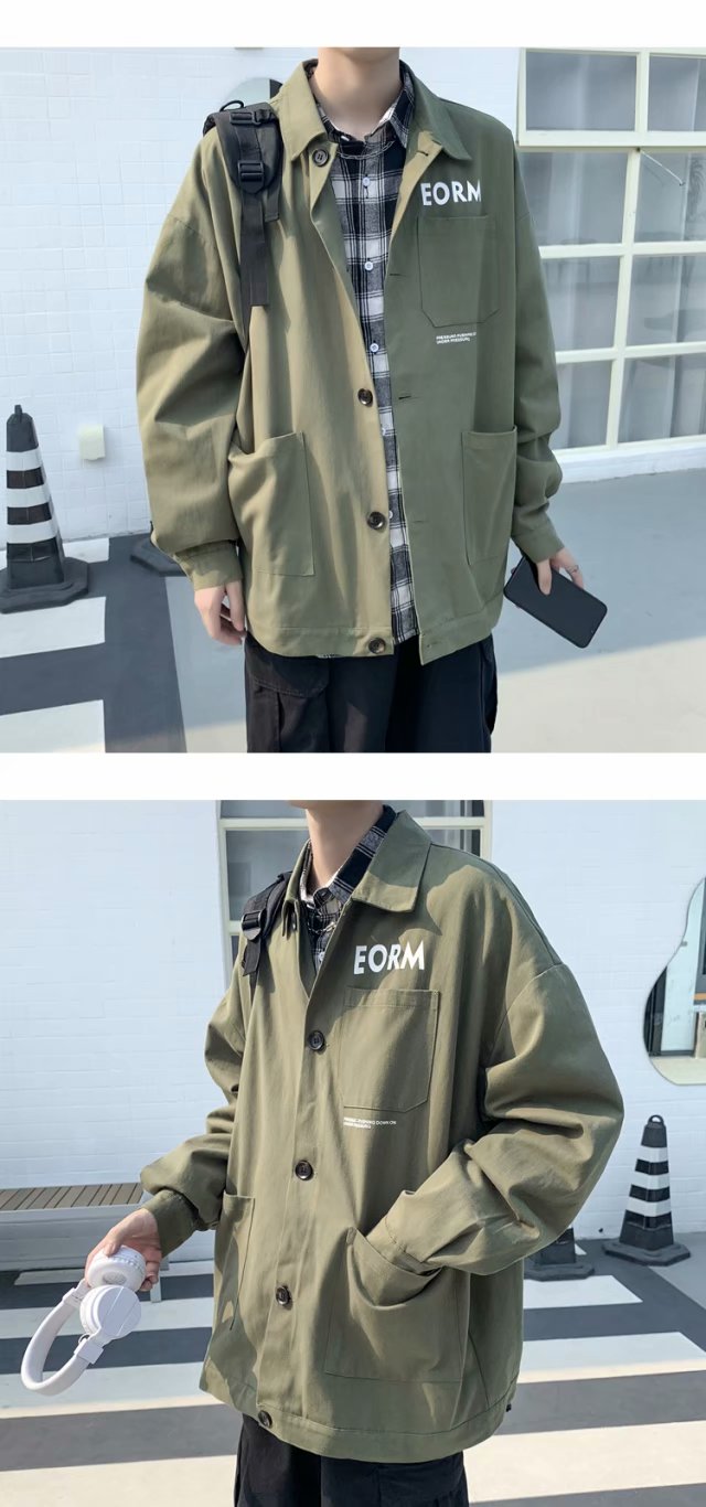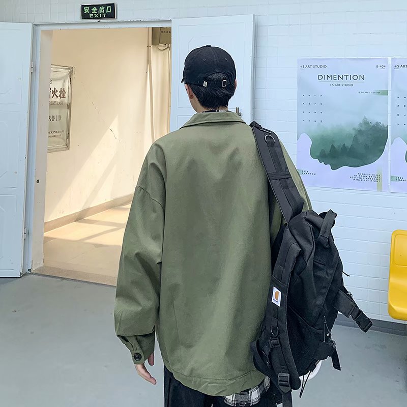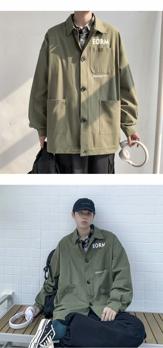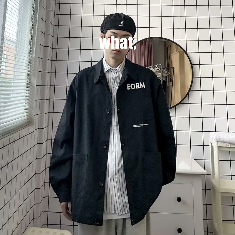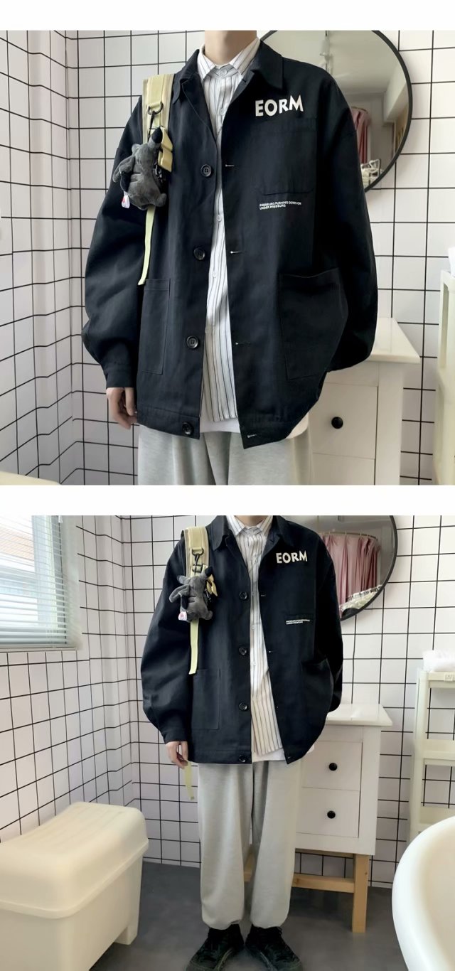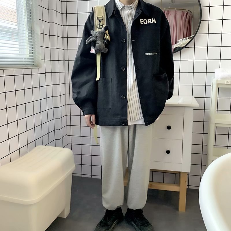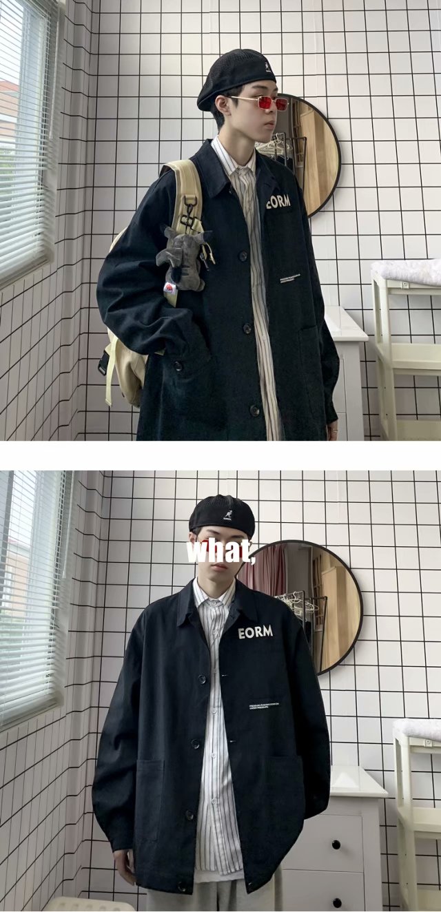 实拍 韩版日系青年纯色百搭开衫上衣男港风街头休闲宽松夹克外套