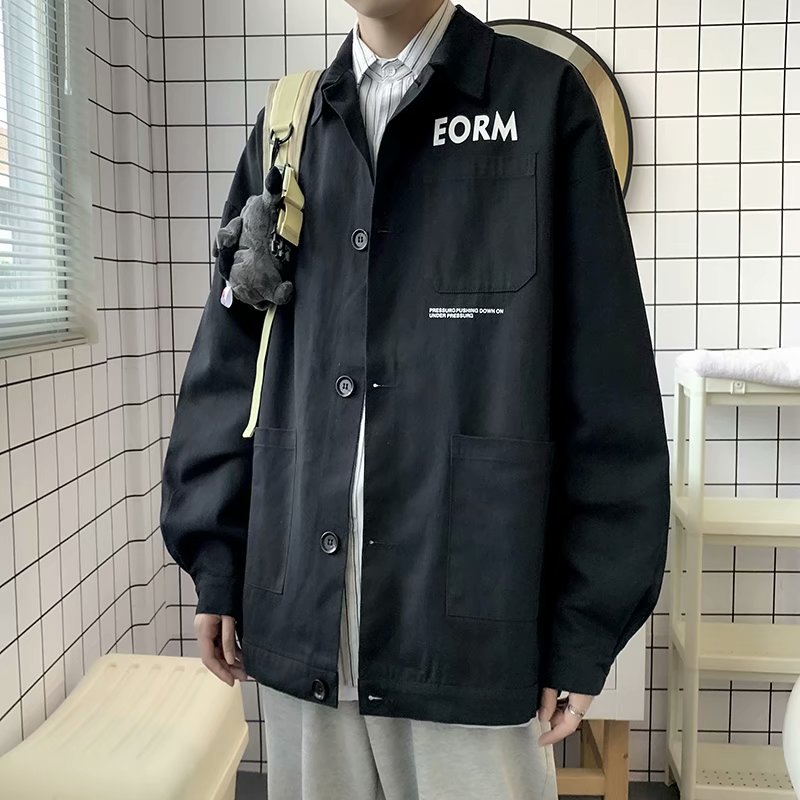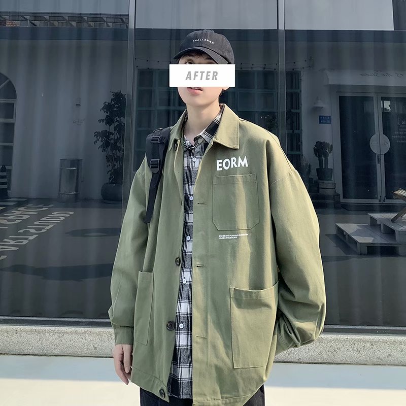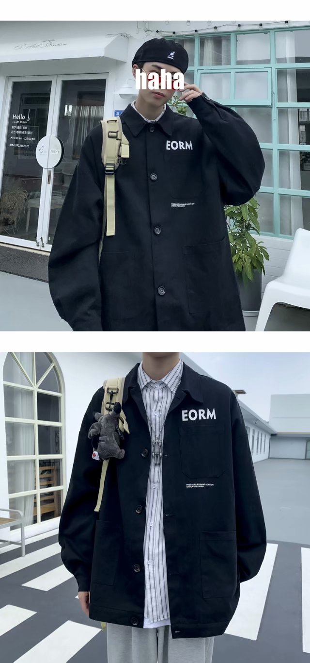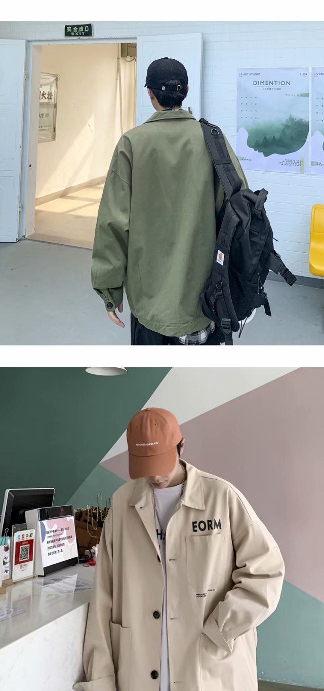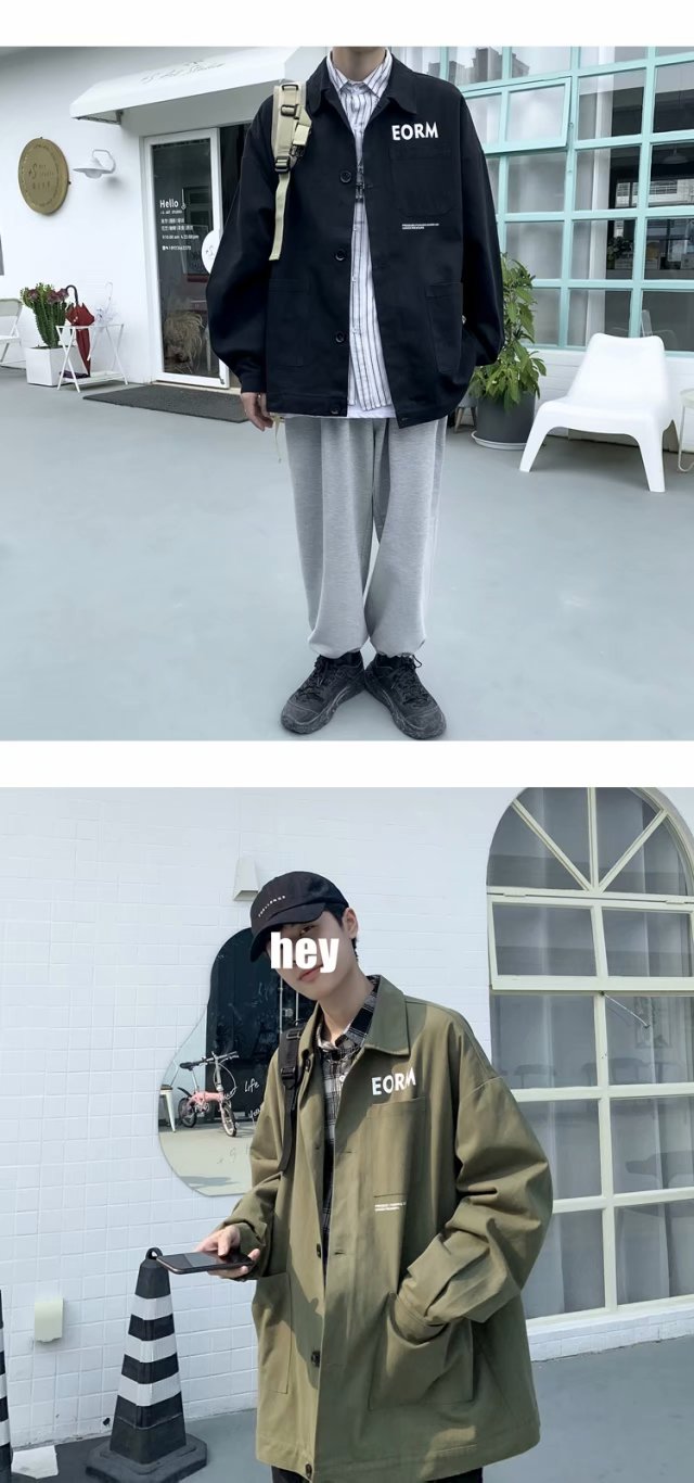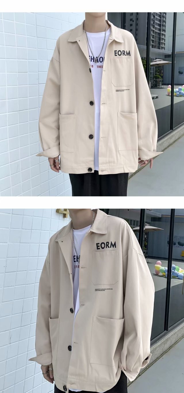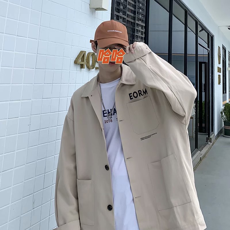 实拍 韩版日系青年纯色百搭开衫上衣男港风街头休闲宽松夹克外套