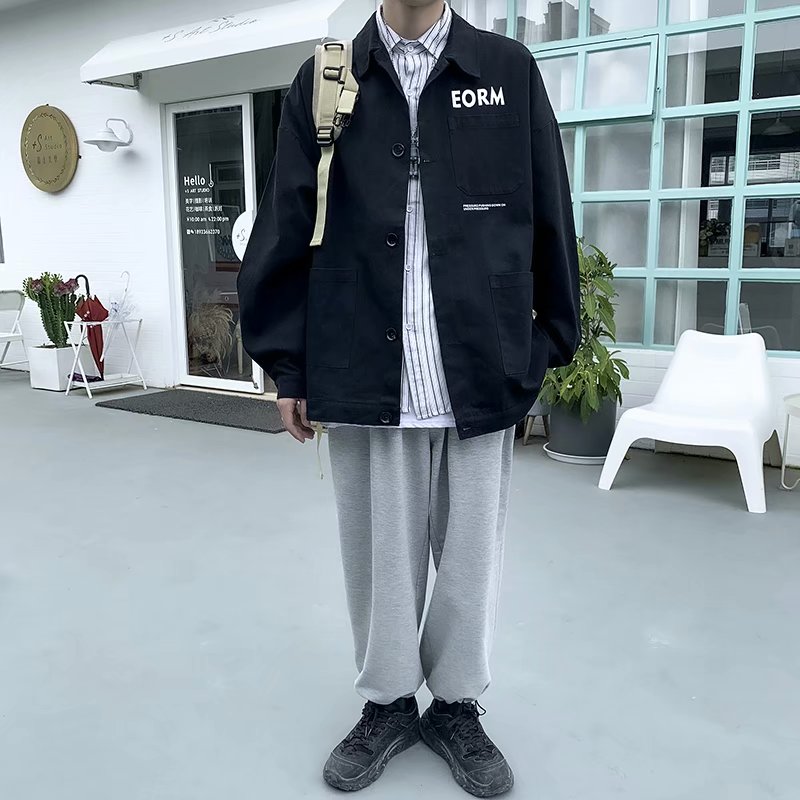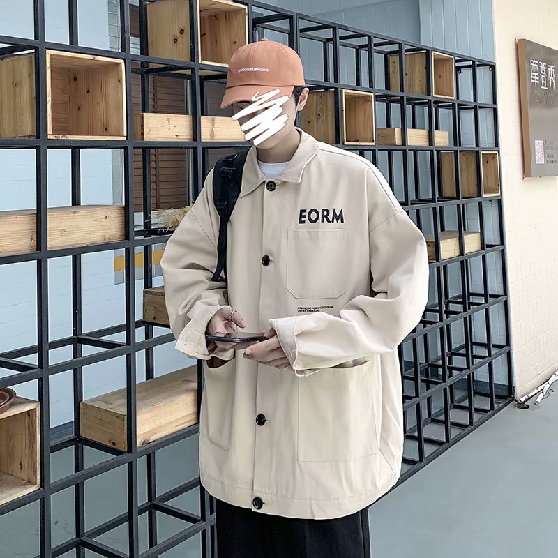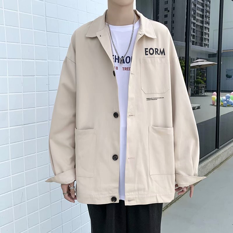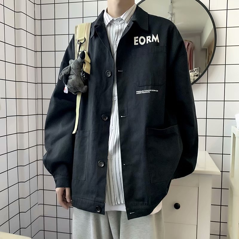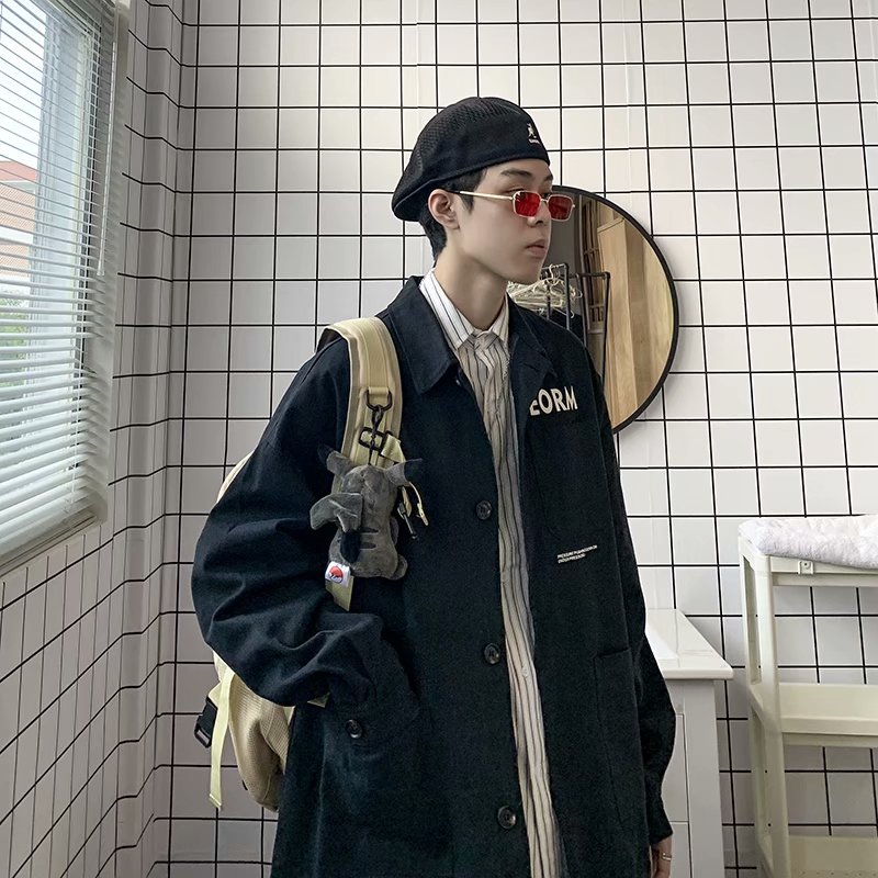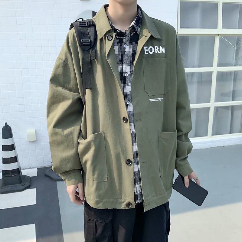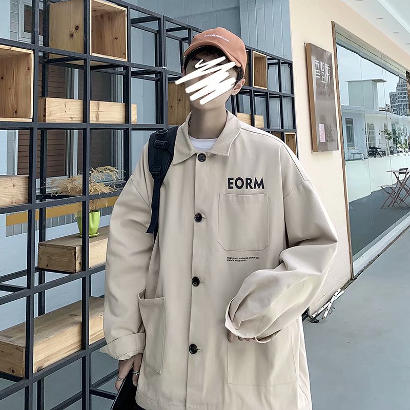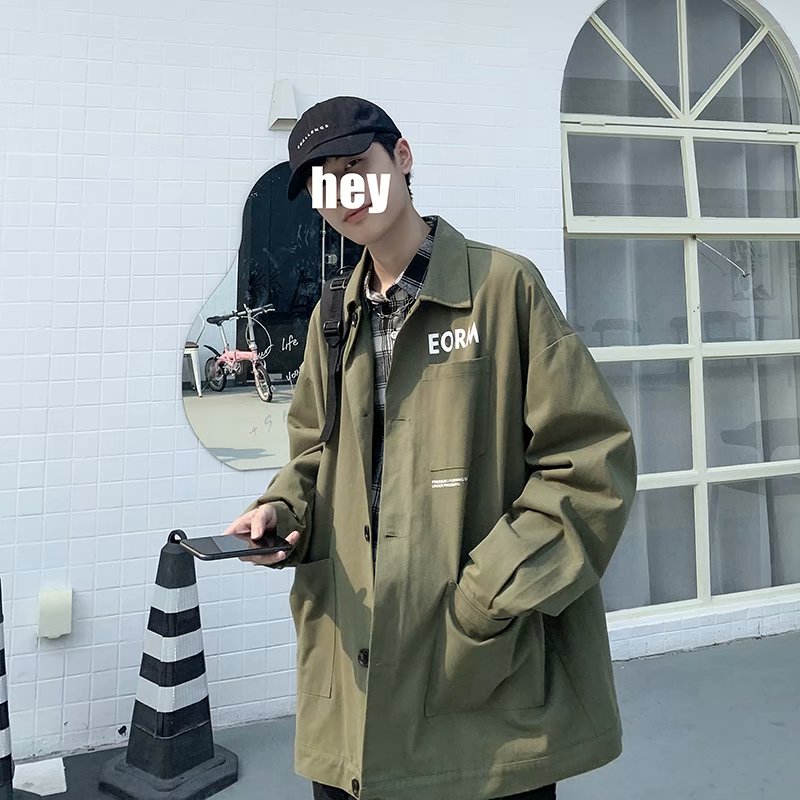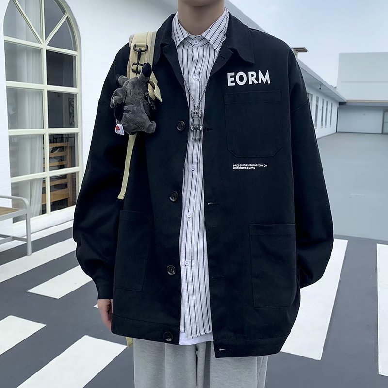 实拍 韩版日系青年纯色百搭开衫上衣男港风街头休闲宽松夹克外套