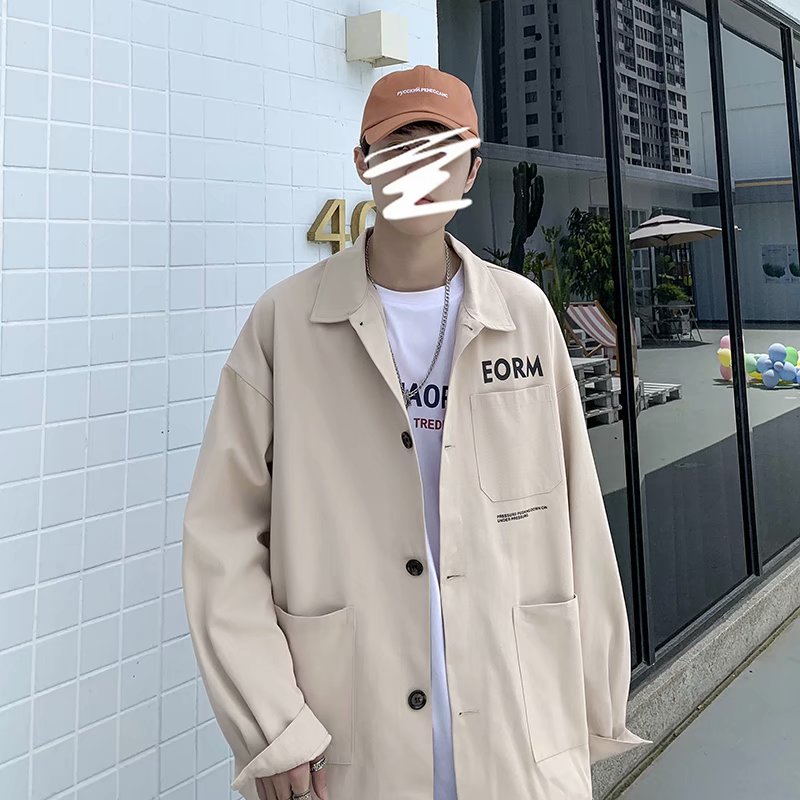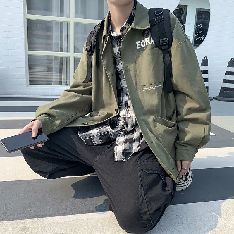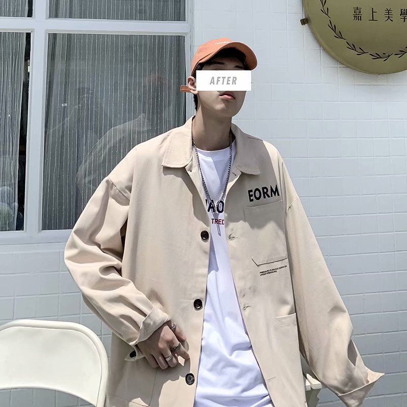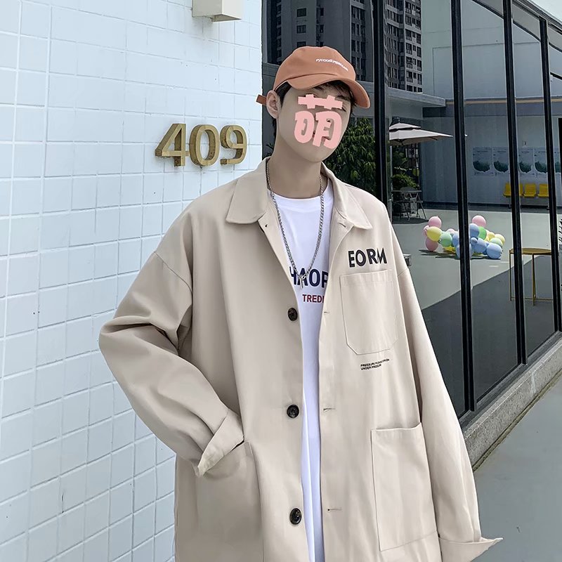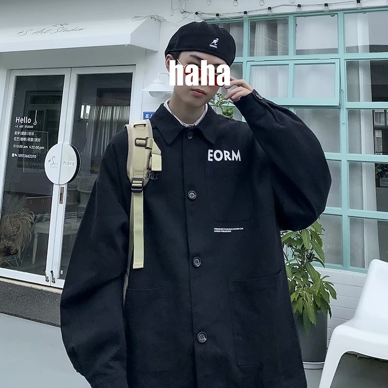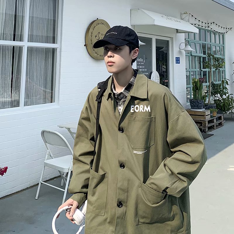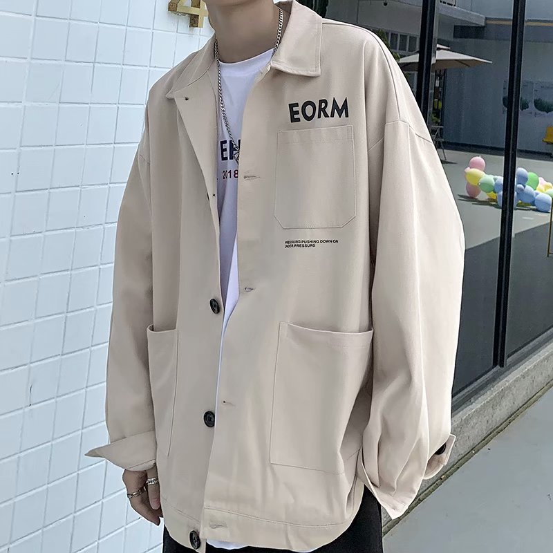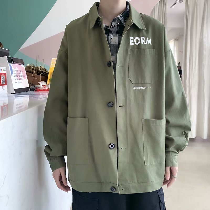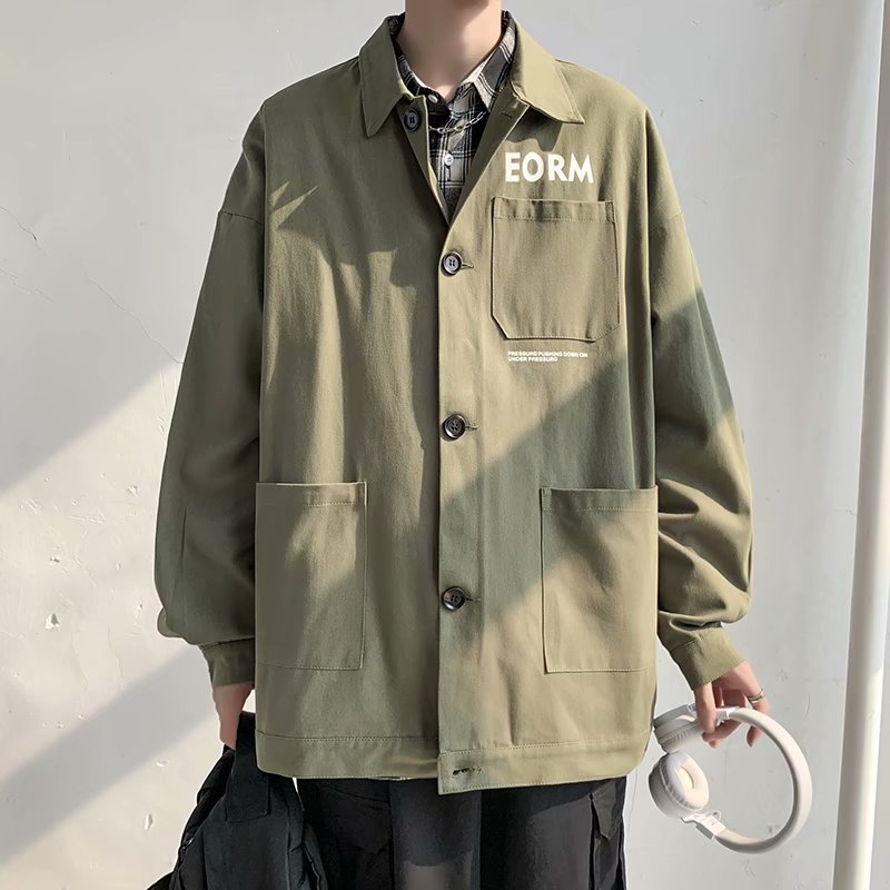 实拍 韩版日系青年纯色百搭开衫上衣男港风街头休闲宽松夹克外套