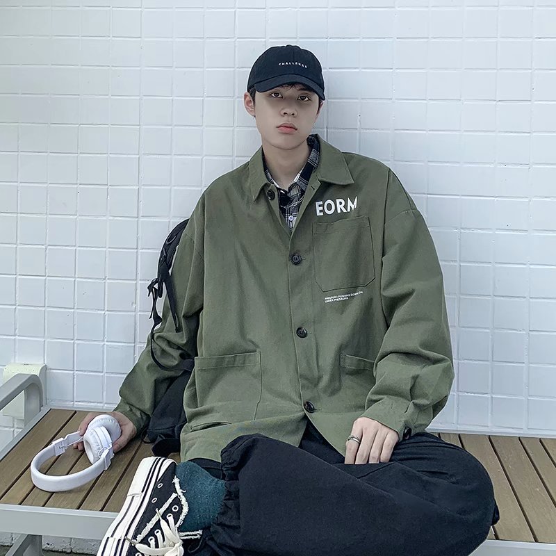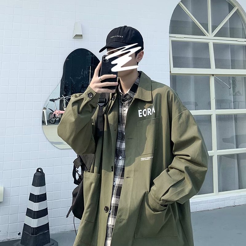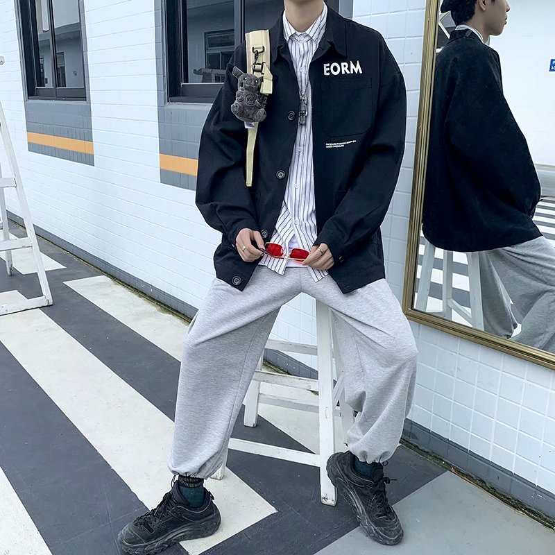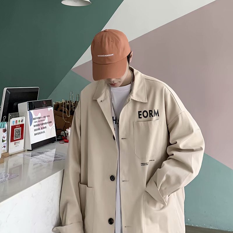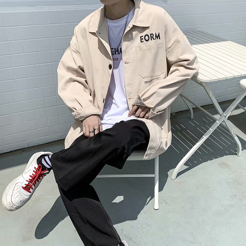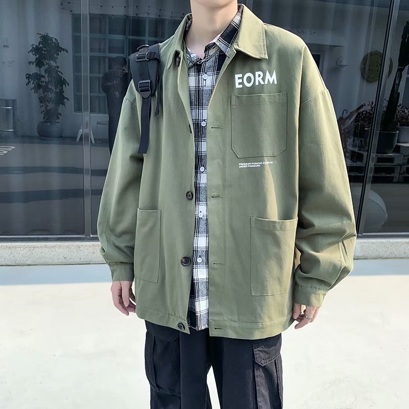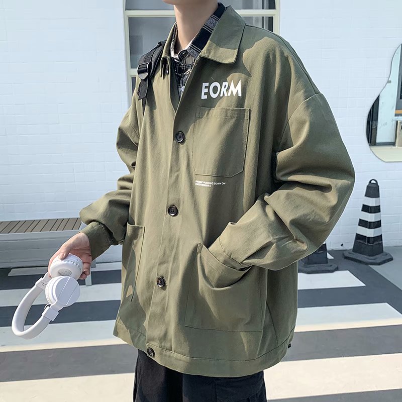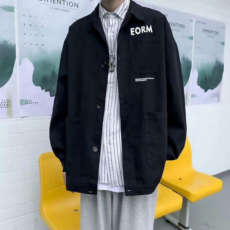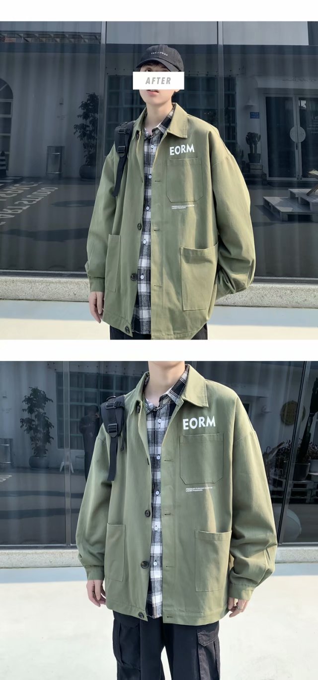 实拍 韩版日系青年纯色百搭开衫上衣男港风街头休闲宽松夹克外套