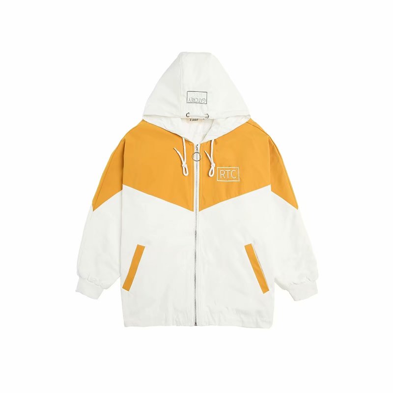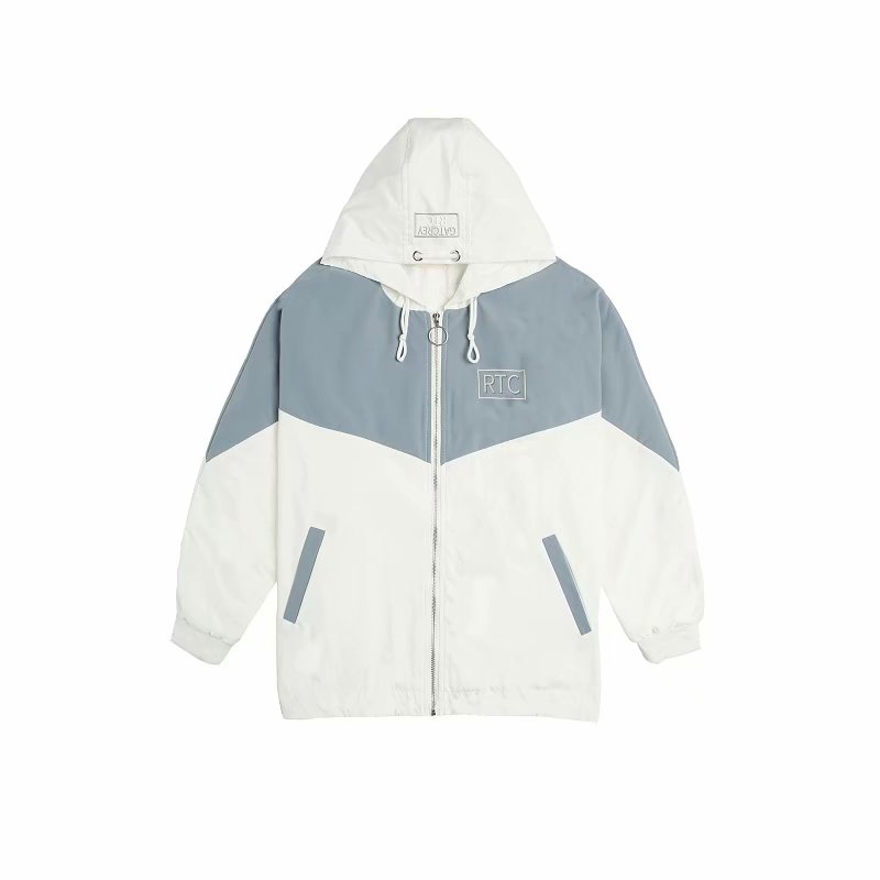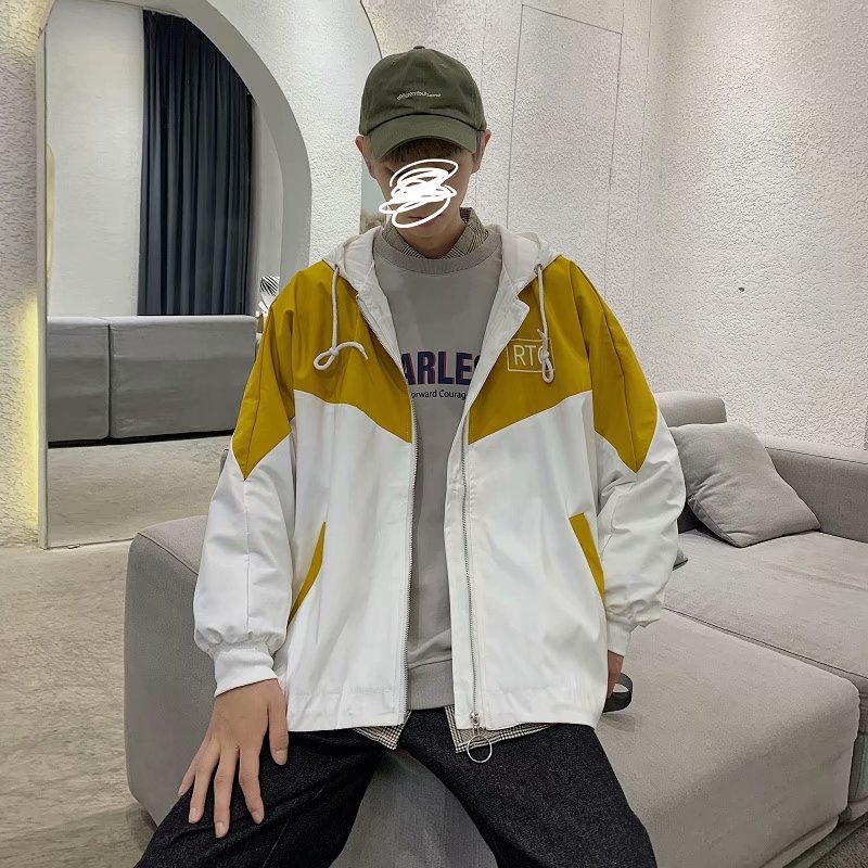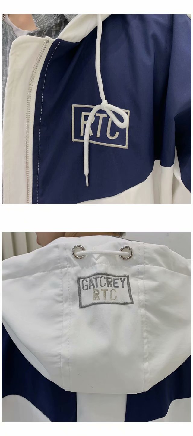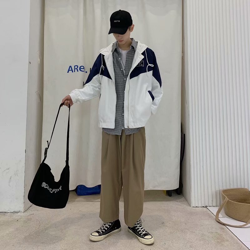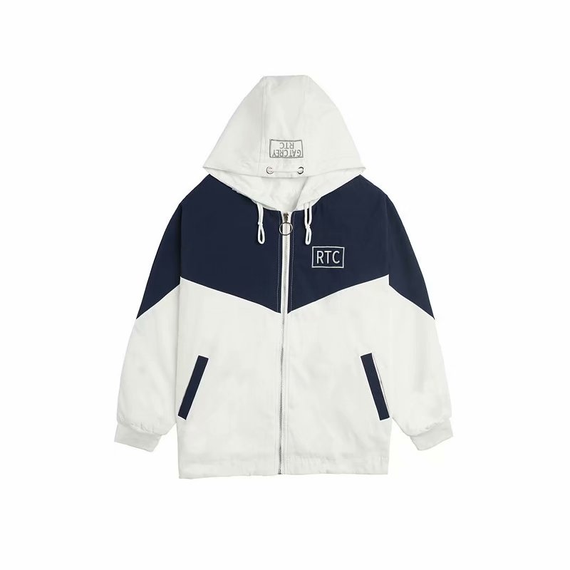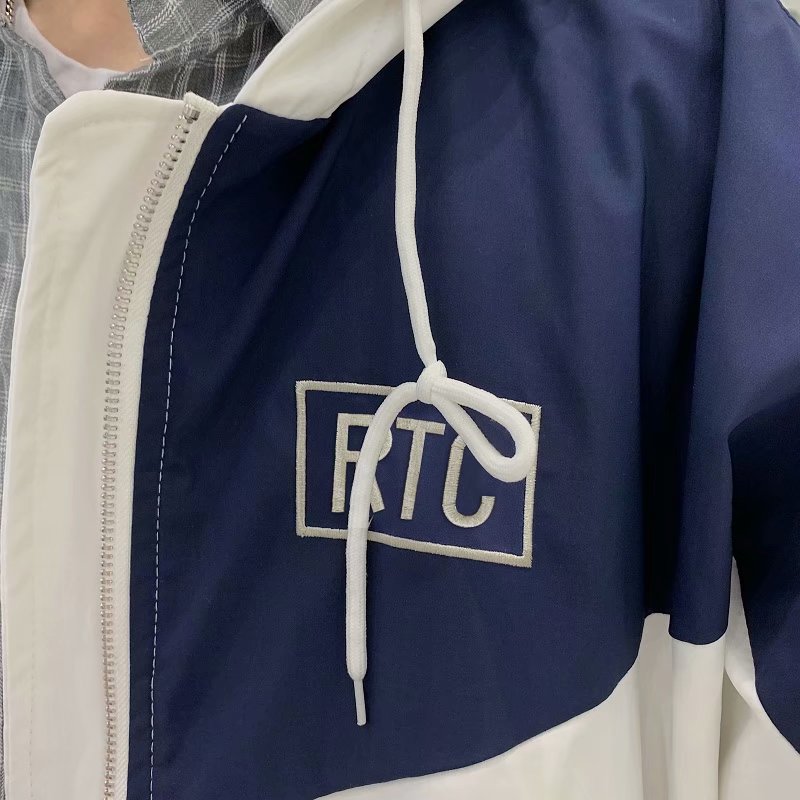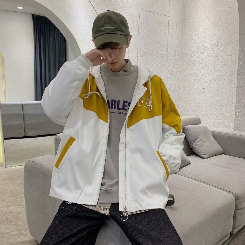 实拍 韩版街头日系青年宽松拼色上衣港风抽绳连帽百搭学生外套潮
