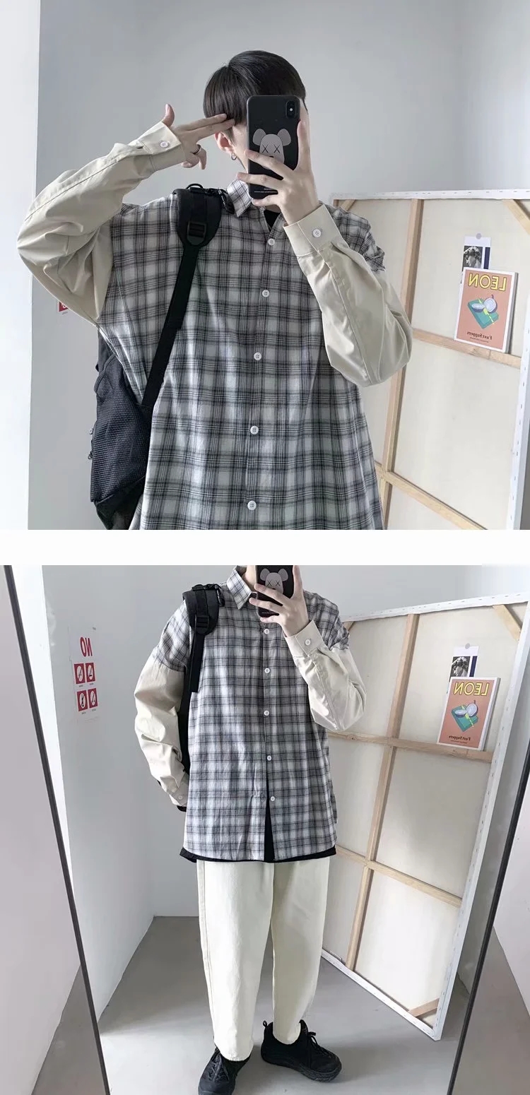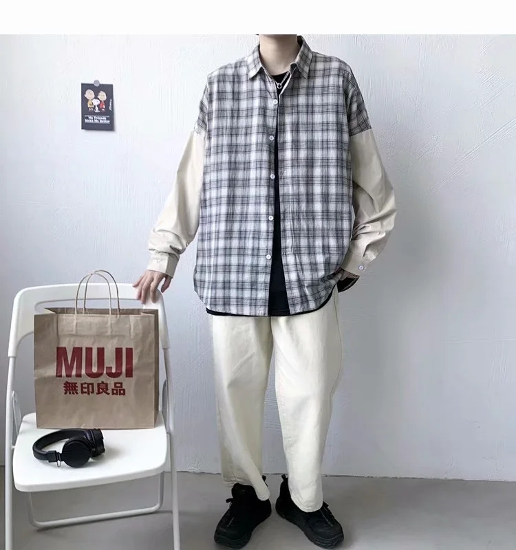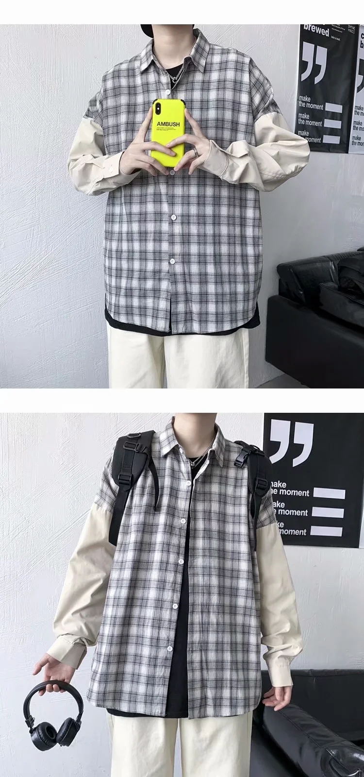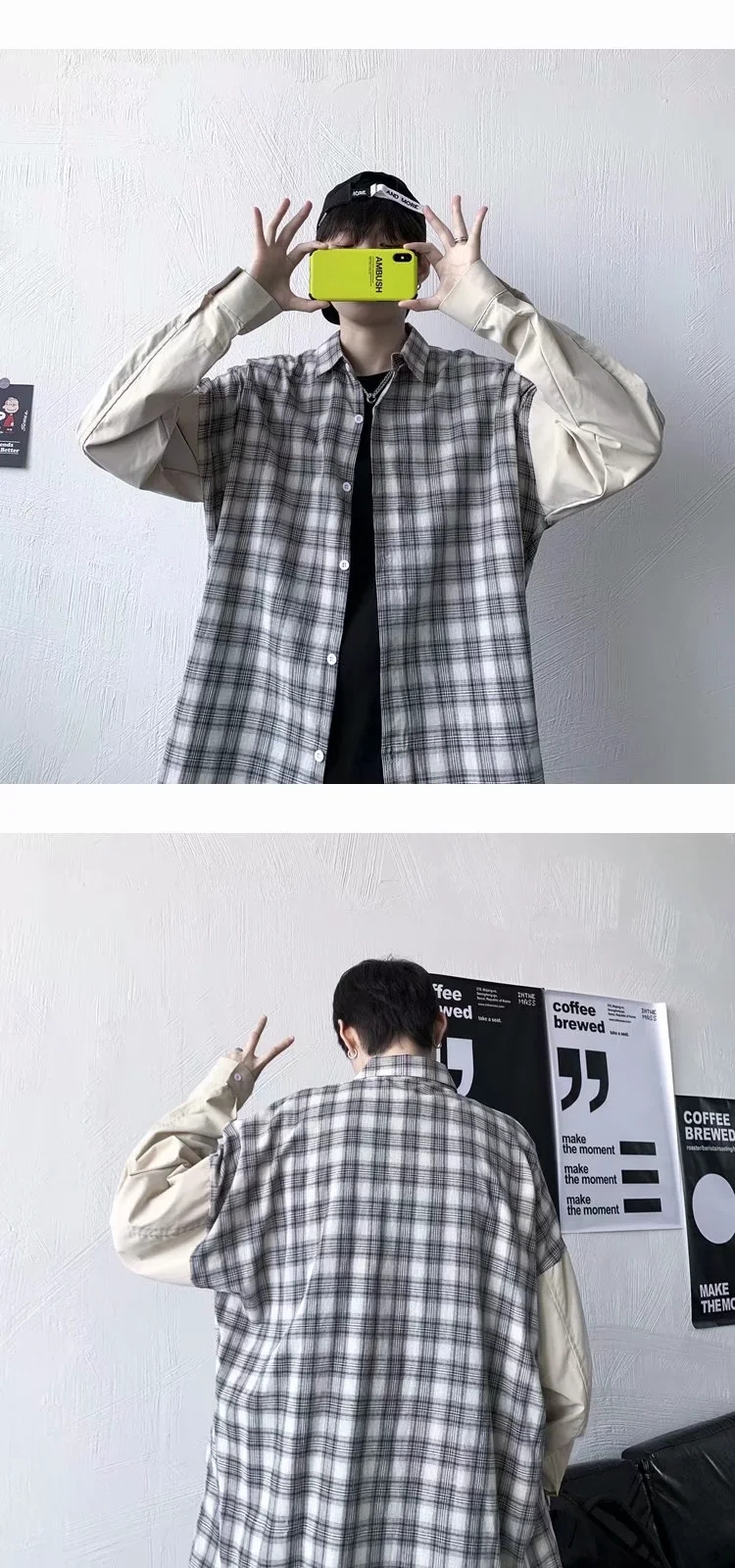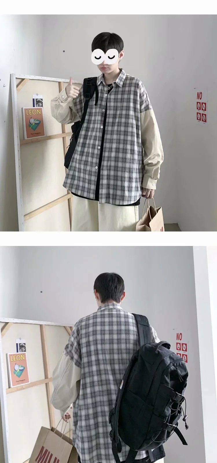 实拍 港风日系街头拼接百搭宽松夹克上衣男韩版休闲开衫潮流外套