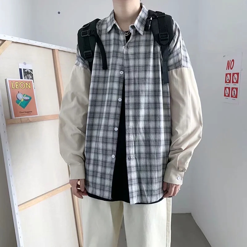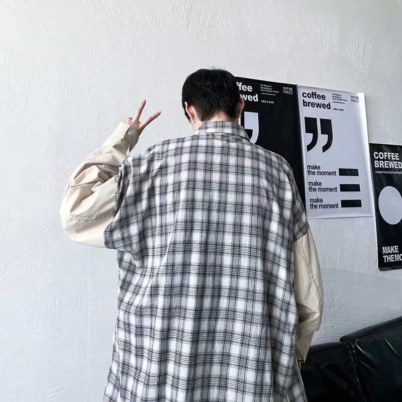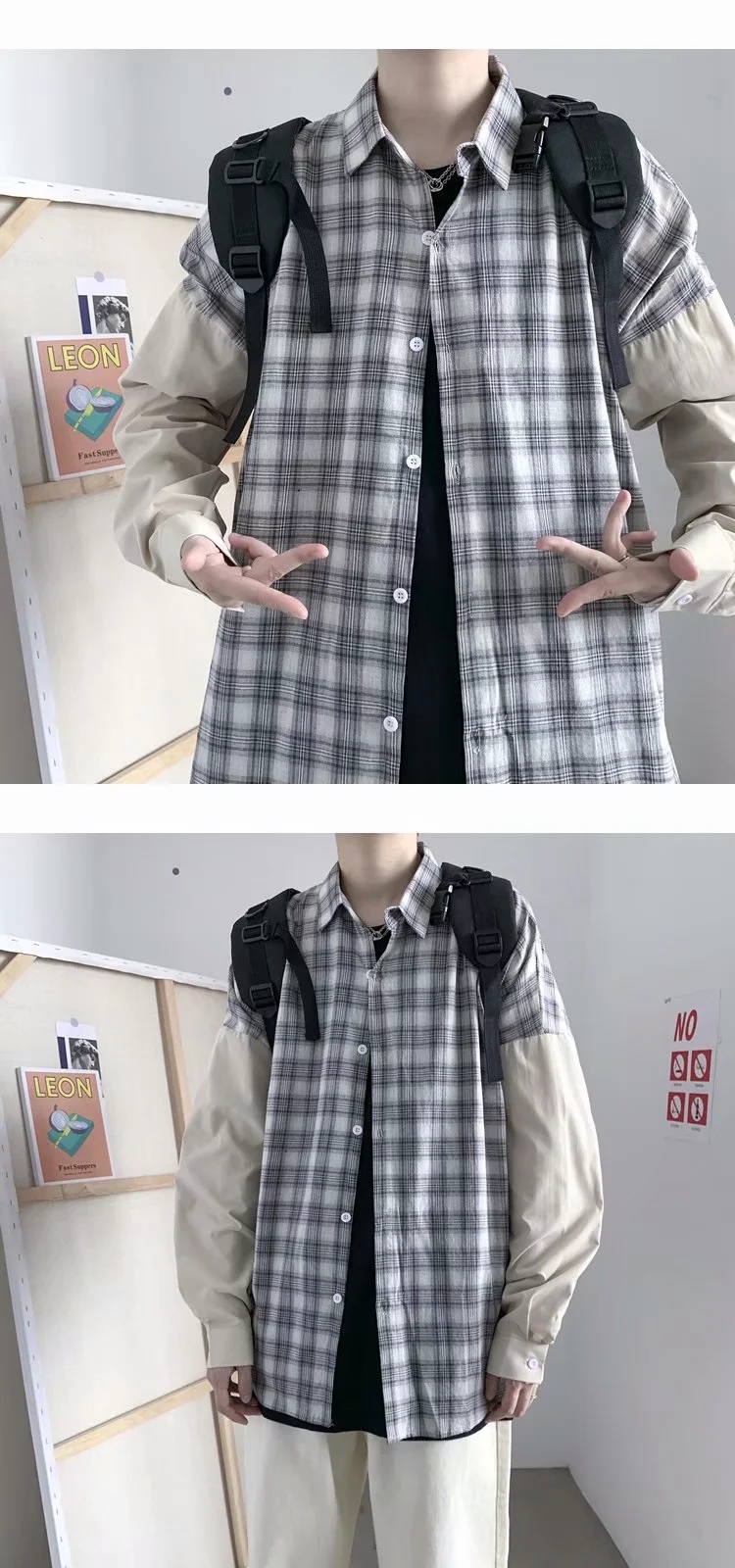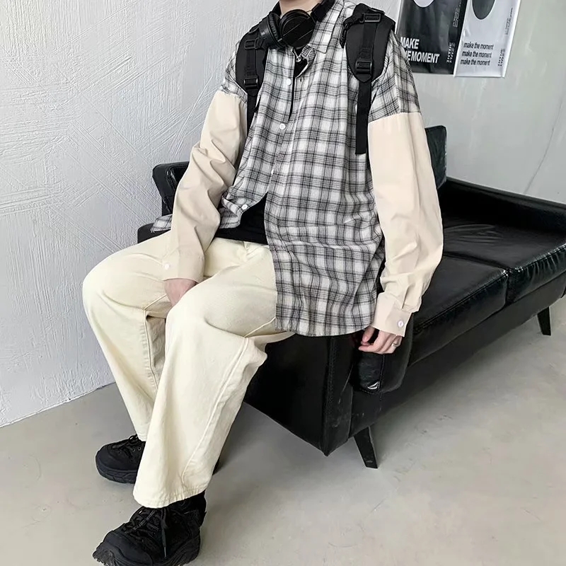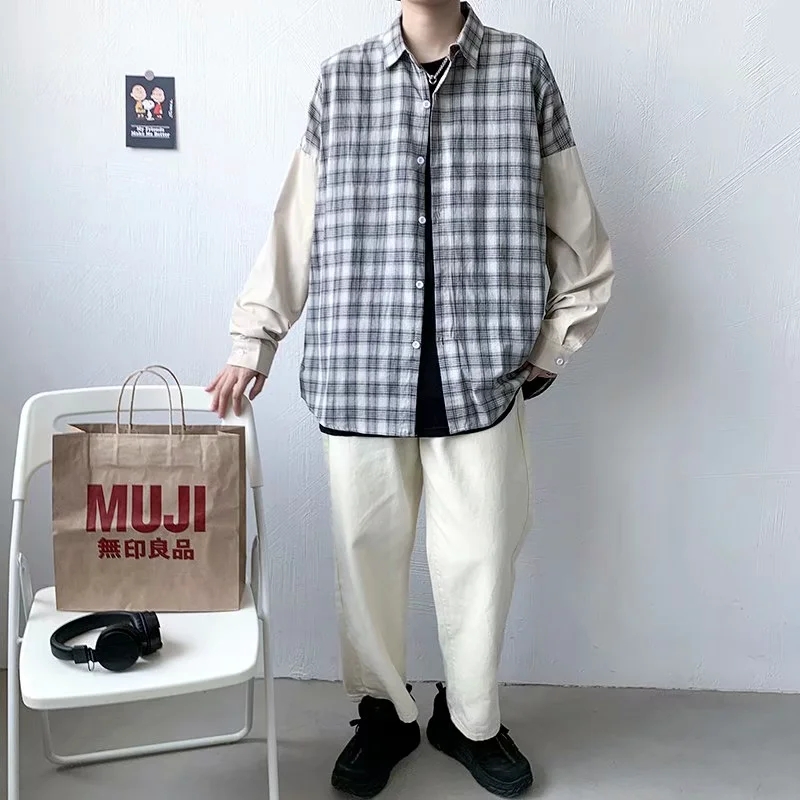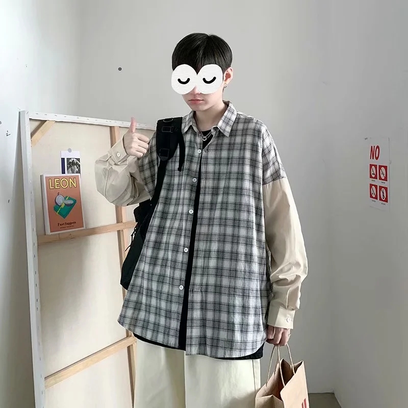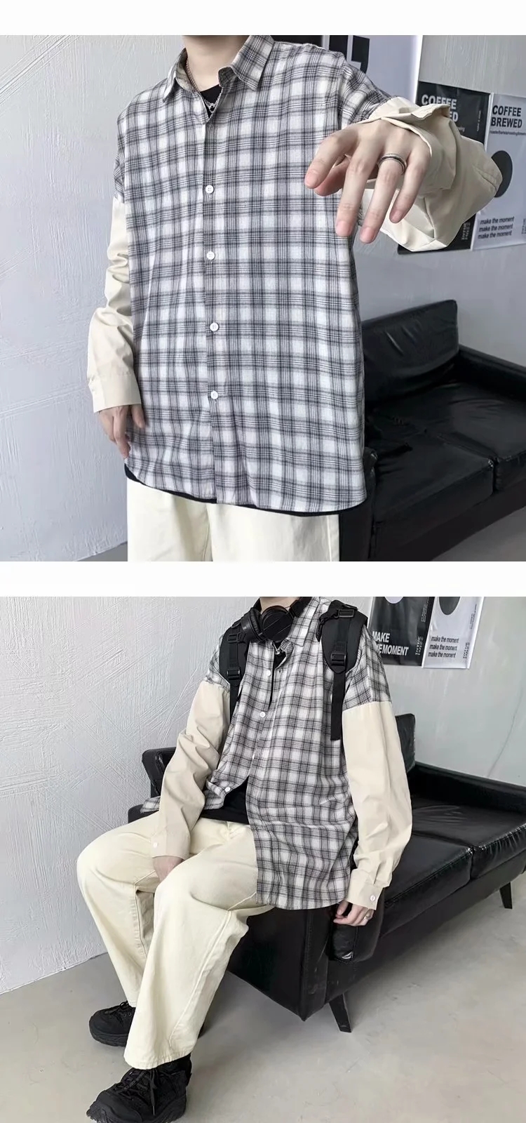 实拍 港风日系街头拼接百搭宽松夹克上衣男韩版休闲开衫潮流外套
