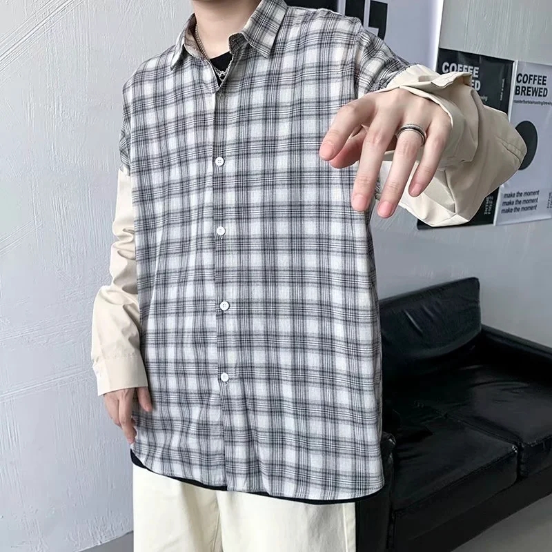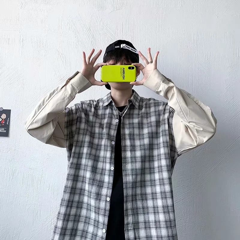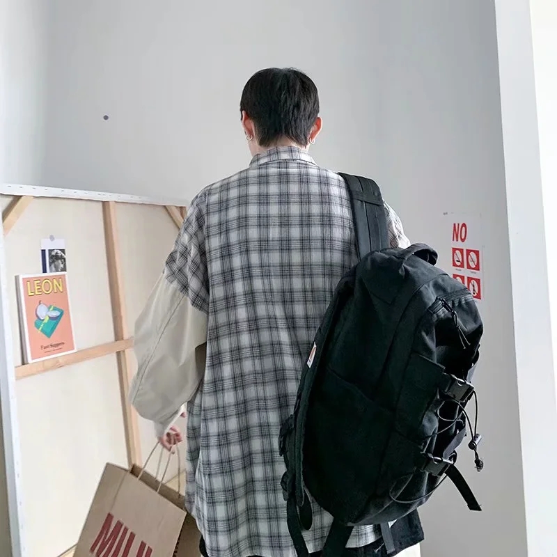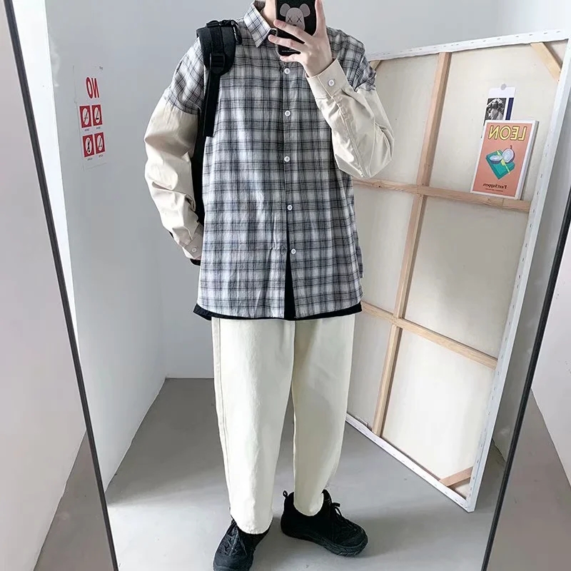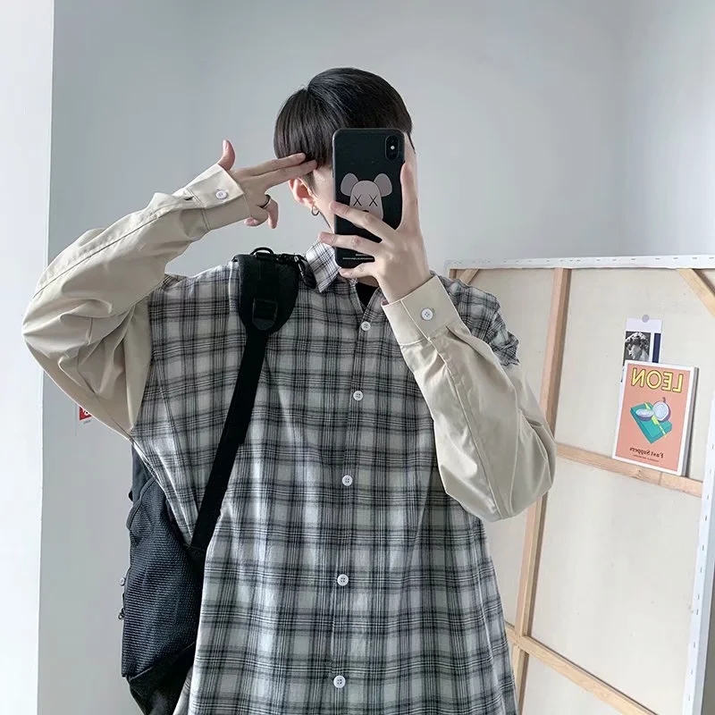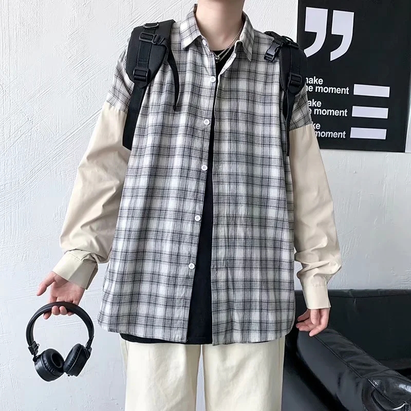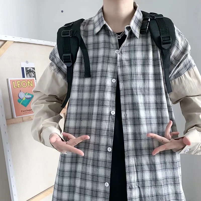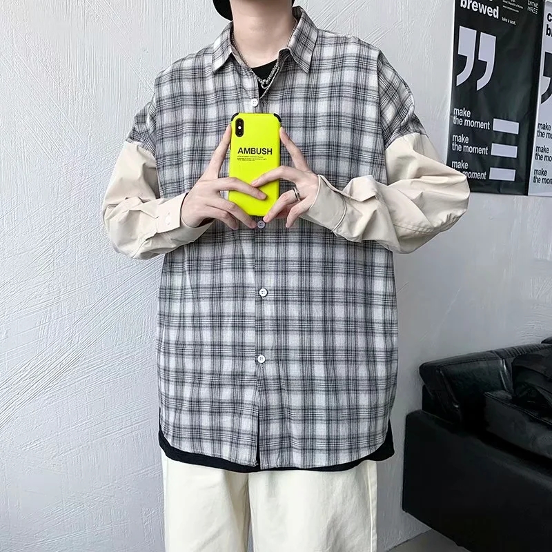 实拍 港风日系街头拼接百搭宽松夹克上衣男韩版休闲开衫潮流外套