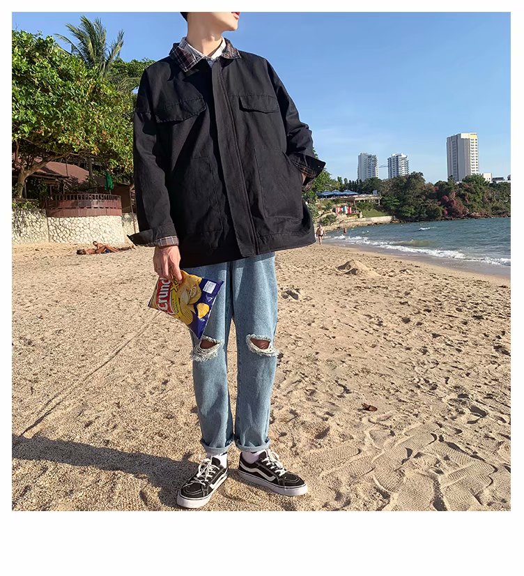 秋冬季新款男士上衣休闲时尚外套男宽松个性潮流青年学生帅气夹克