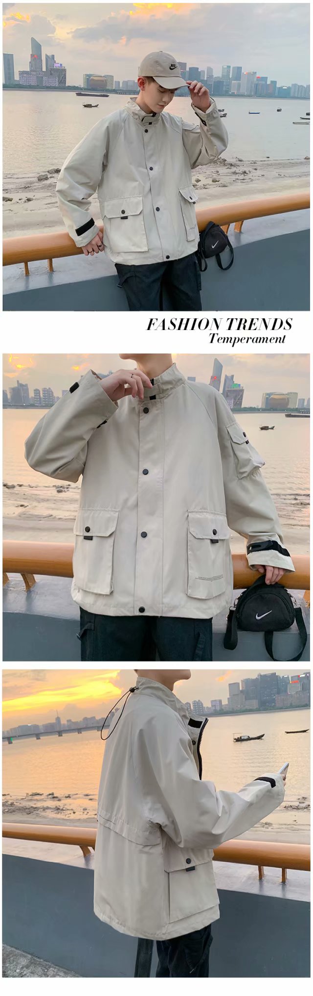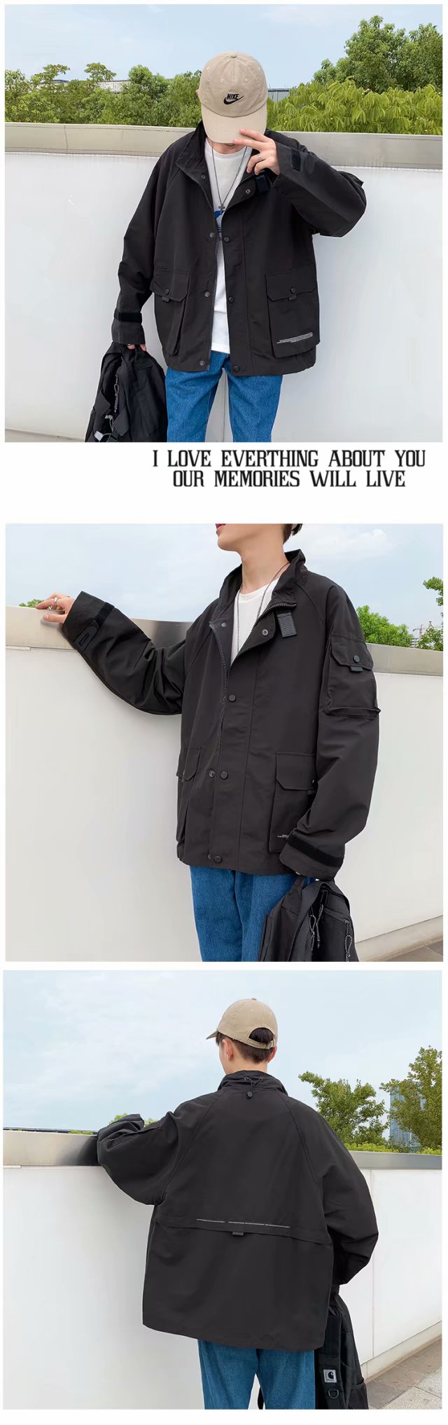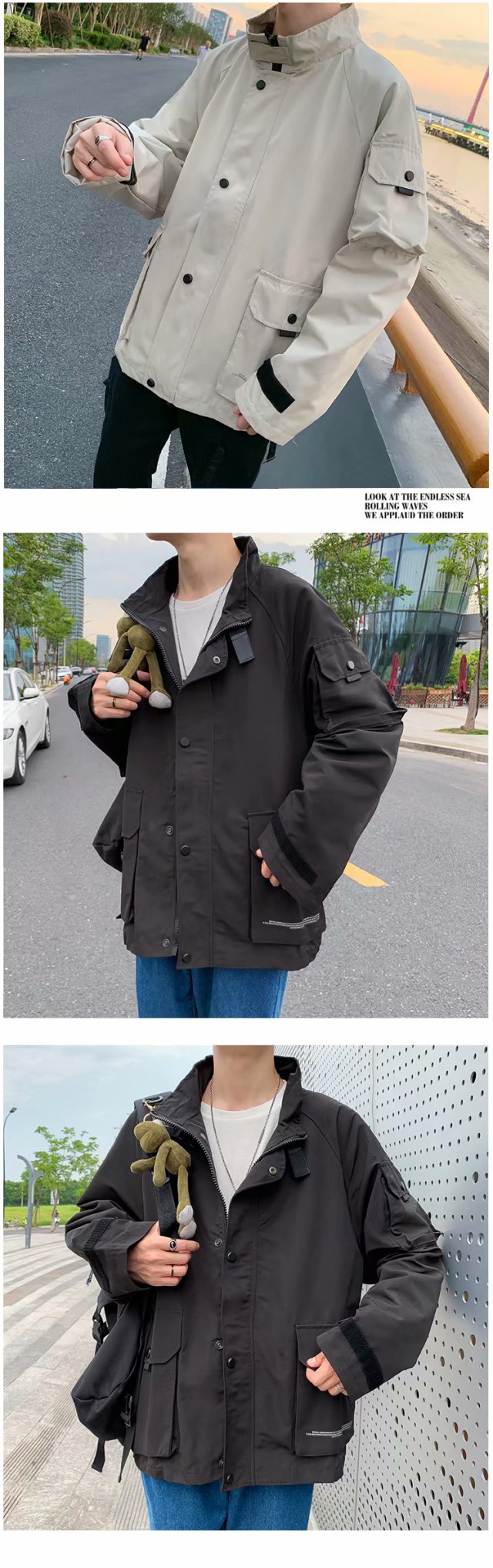 实拍季新款男士上衣休闲时尚外套男宽松个性潮流青年学生帅气夹克