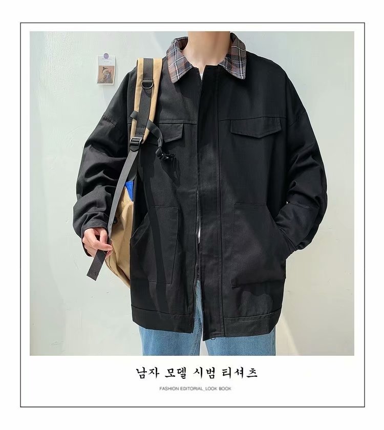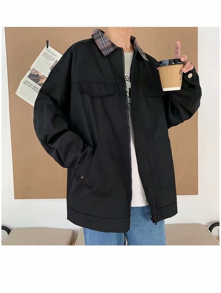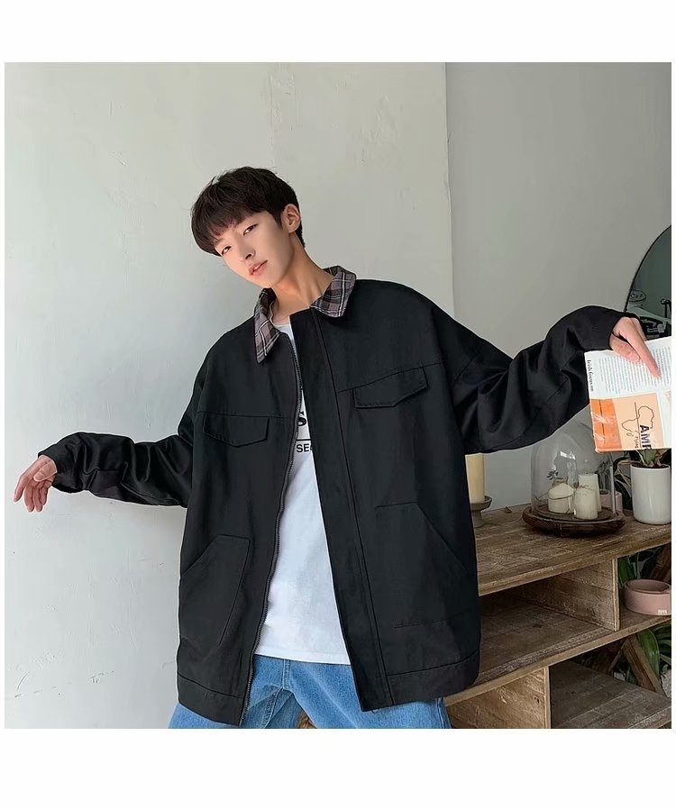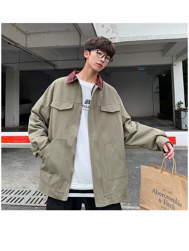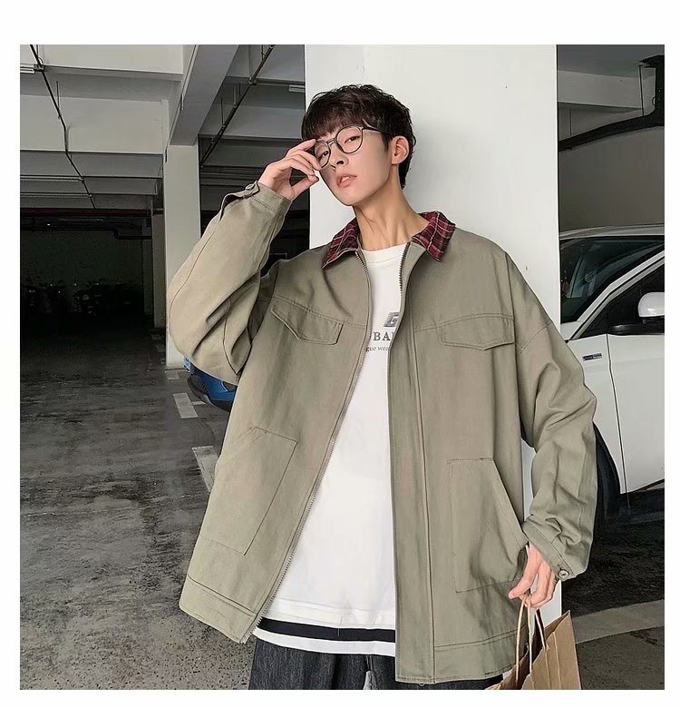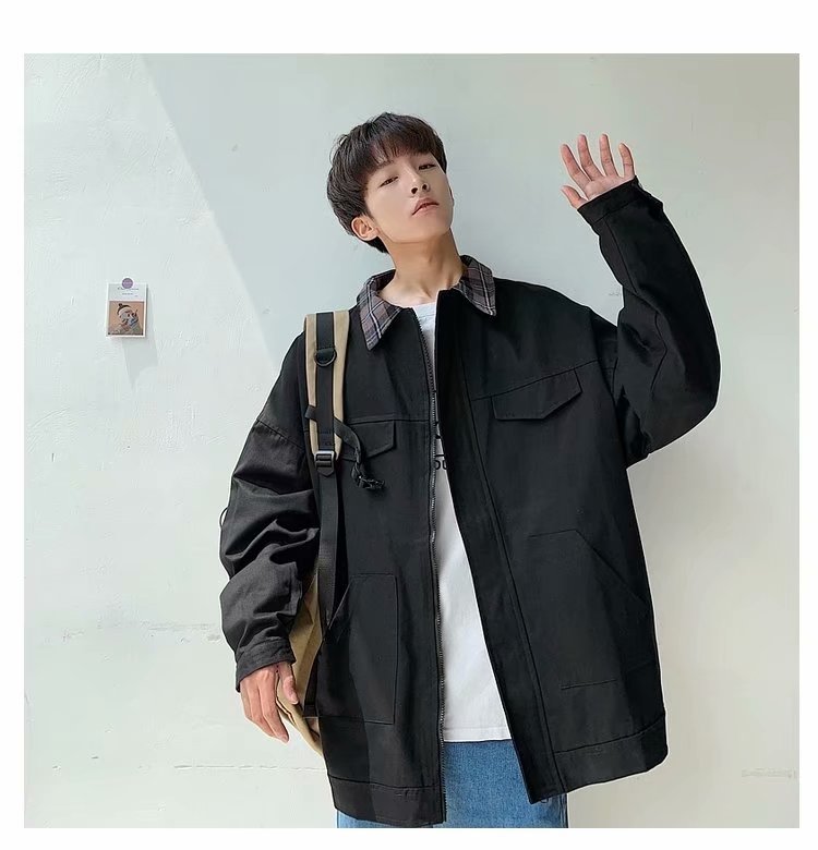 情侣装春秋工装外套男学生韩版宽松港风假两件潮流bf撞色男士夹克