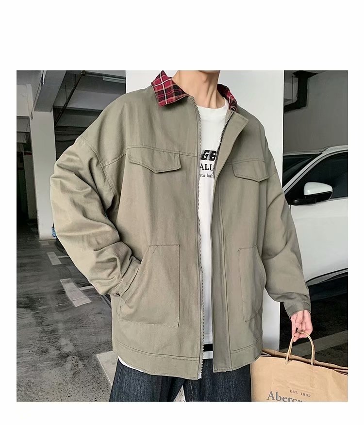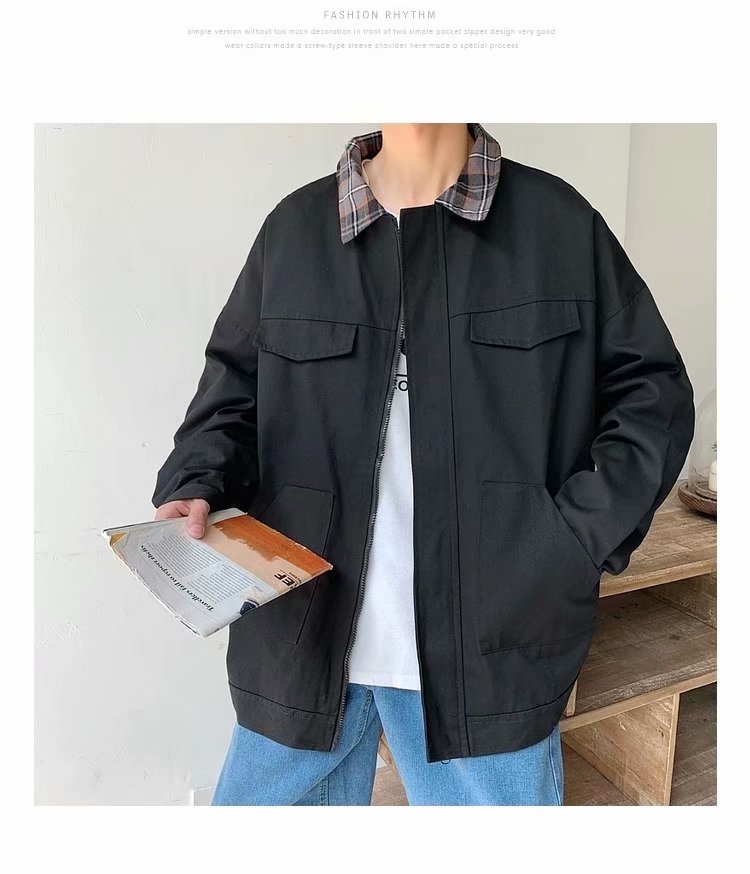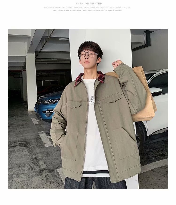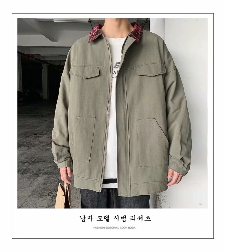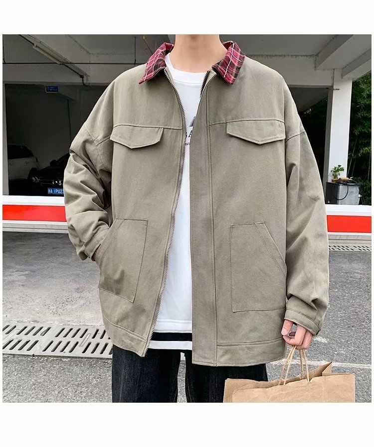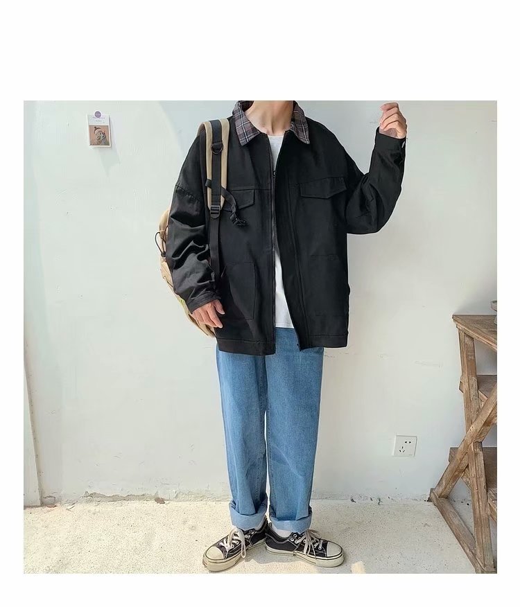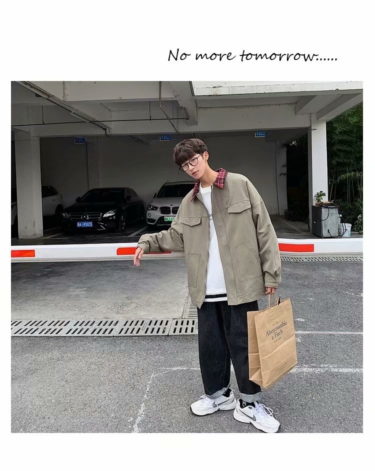 情侣装春秋工装外套男学生韩版宽松港风假两件潮流bf撞色男士夹克