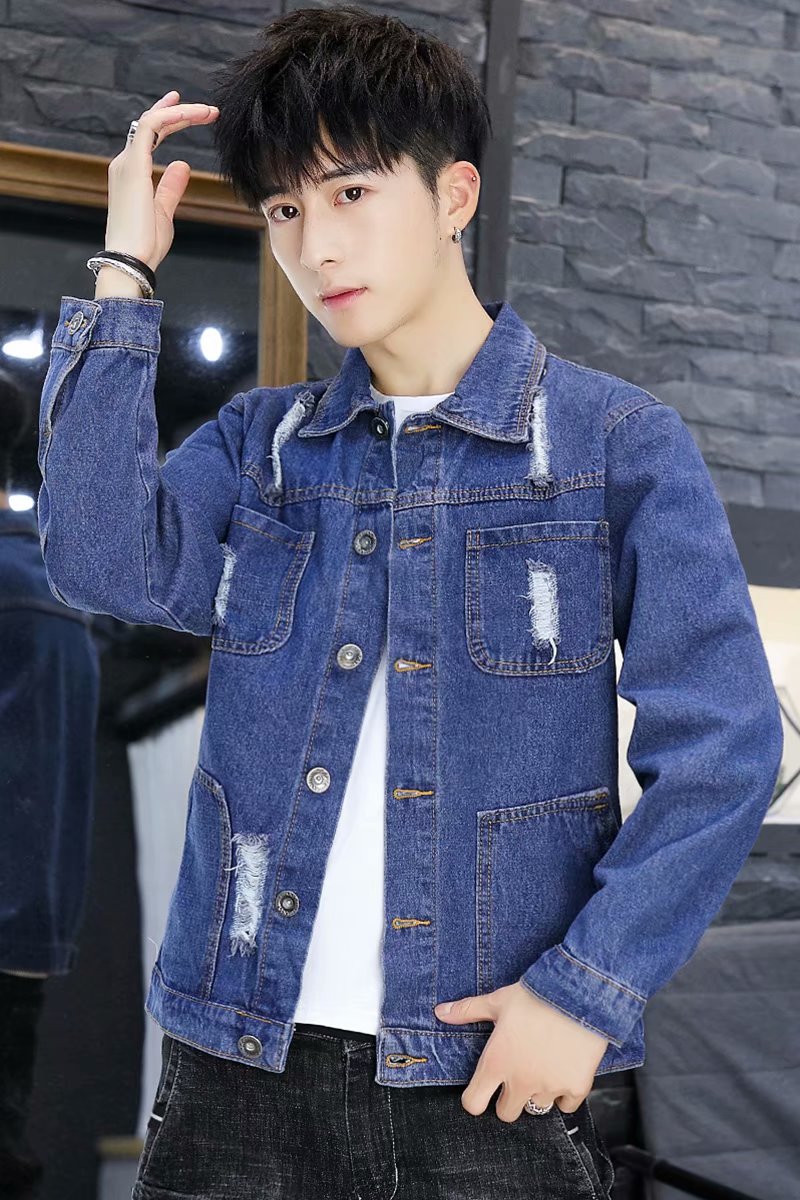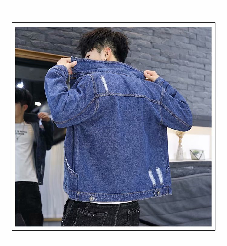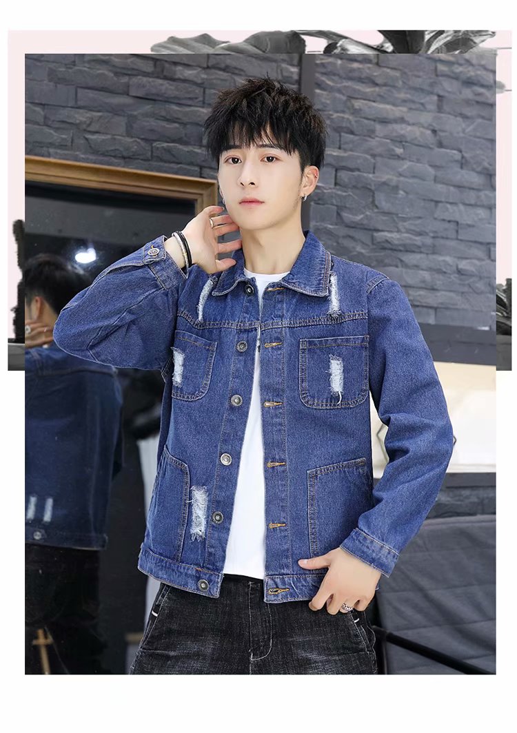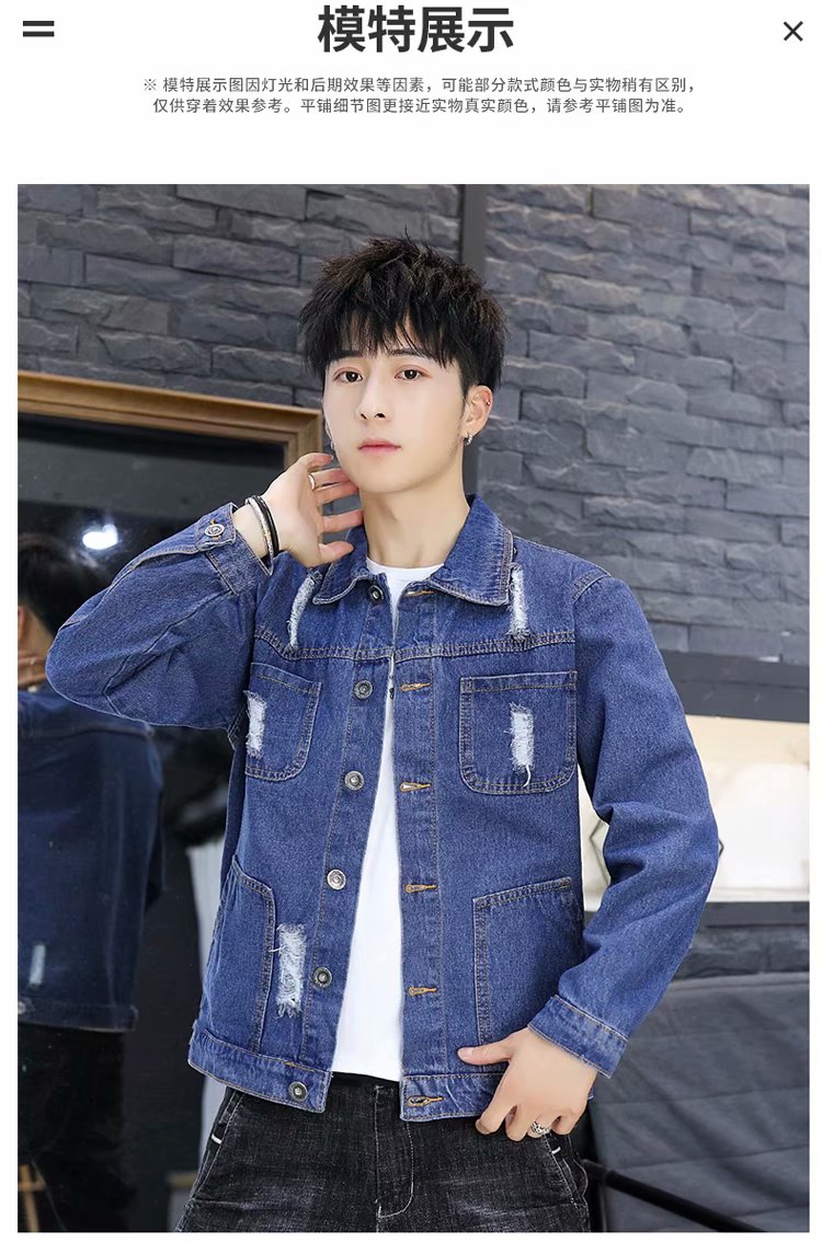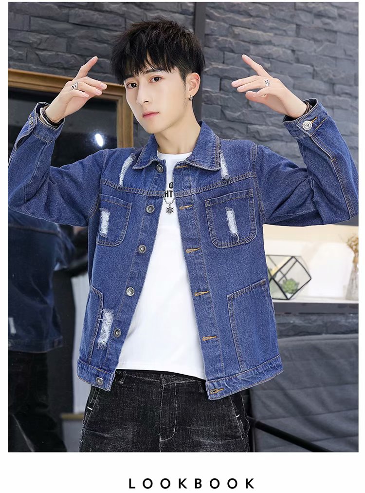 时尚秋冬季新款男秋装上衣牛仔破洞刺绣外套休闲男装潮流青年夹克
