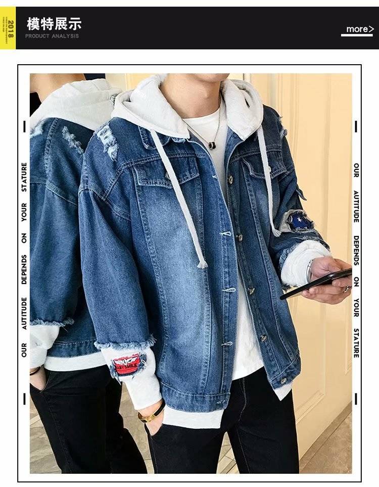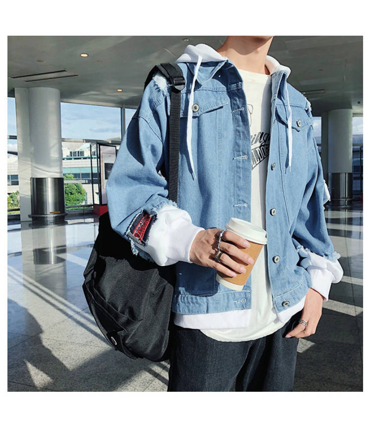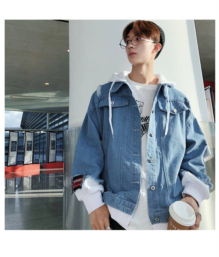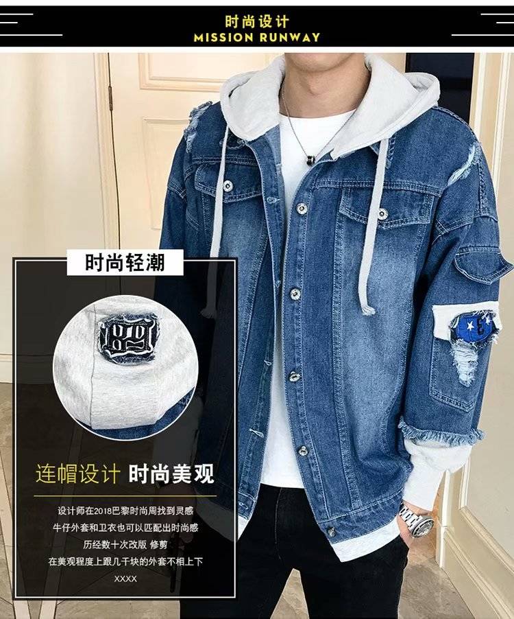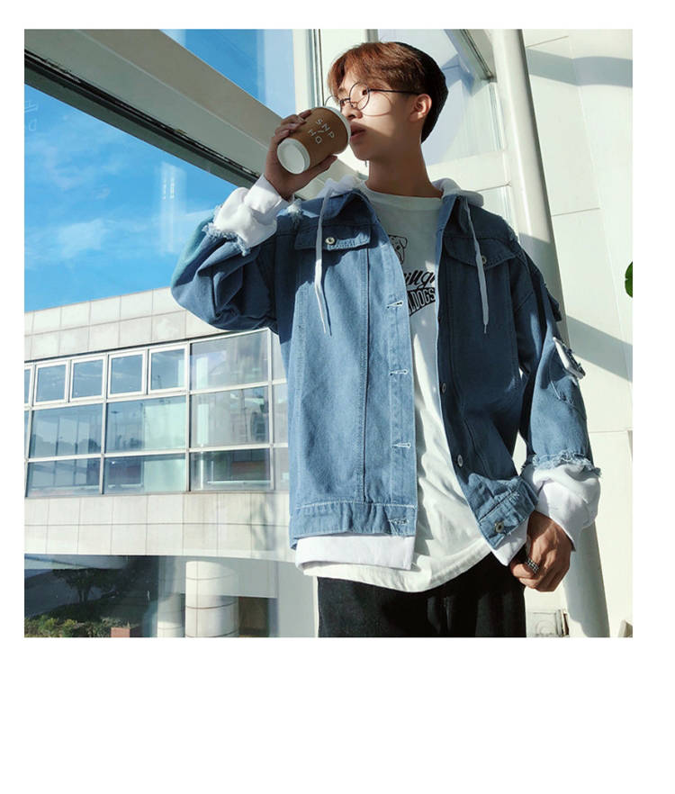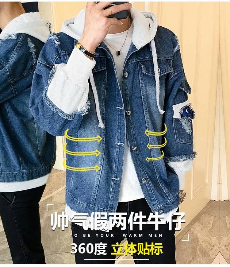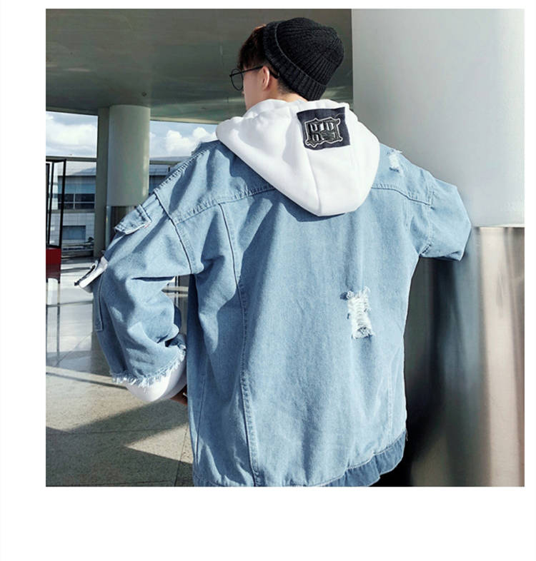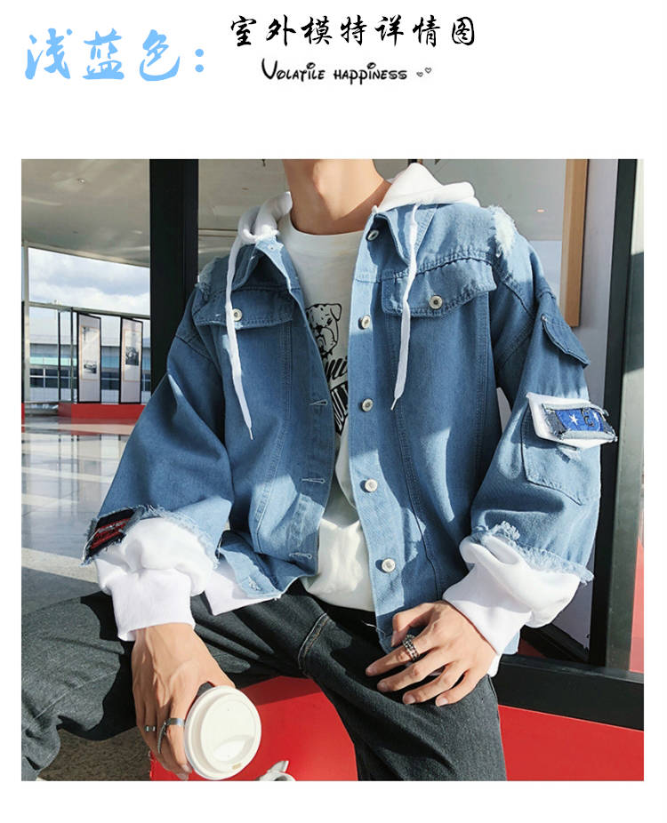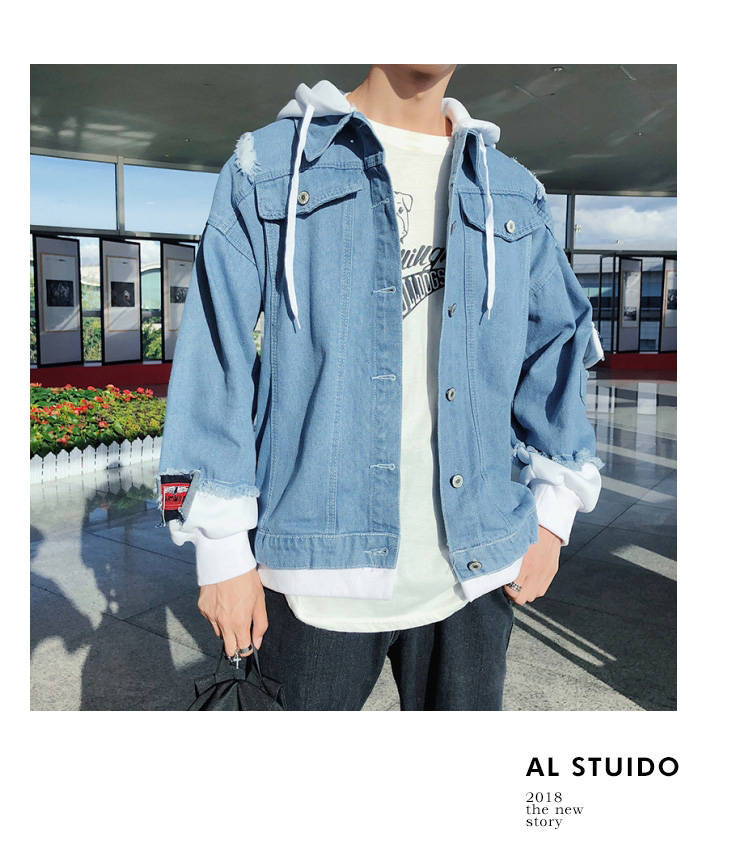连帽牛仔外套男士韩版春秋装潮流帅气bf风情侣夹克宽松学生牛仔衣