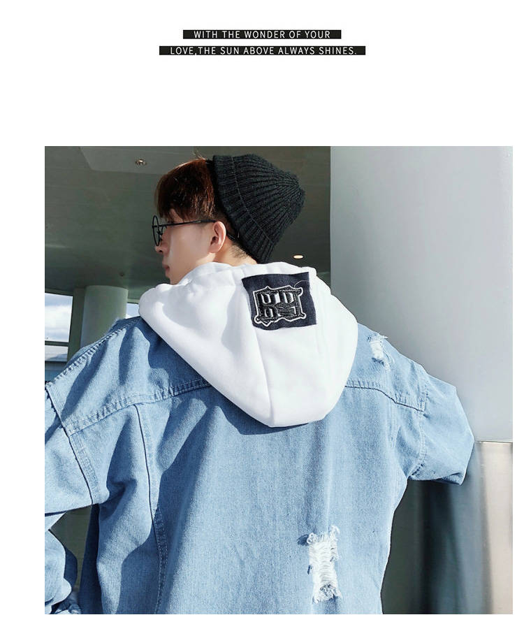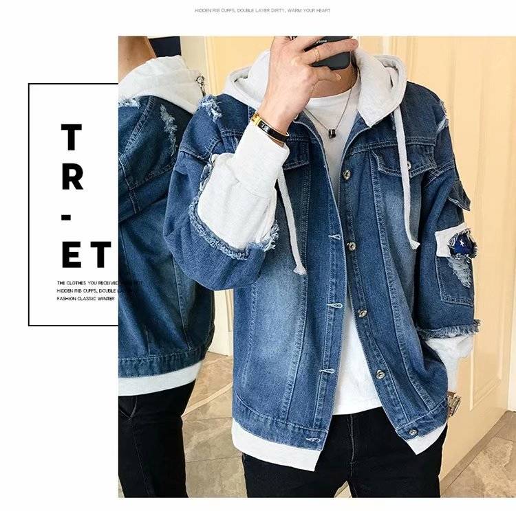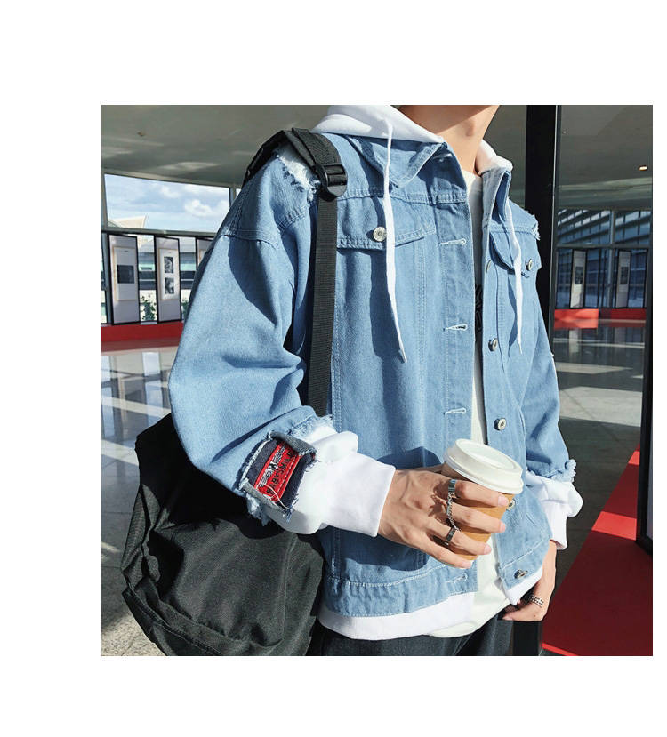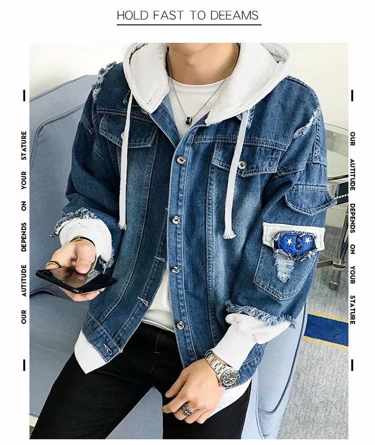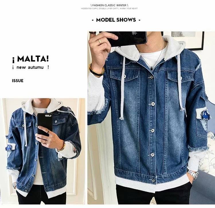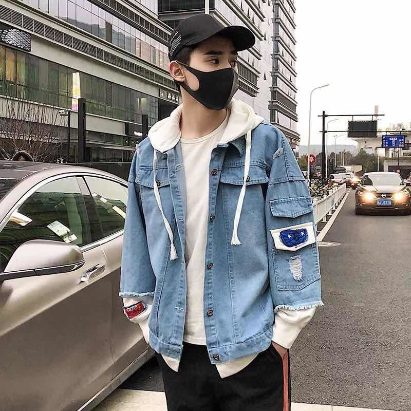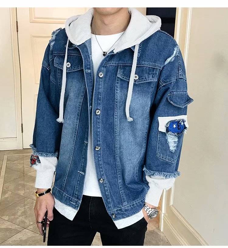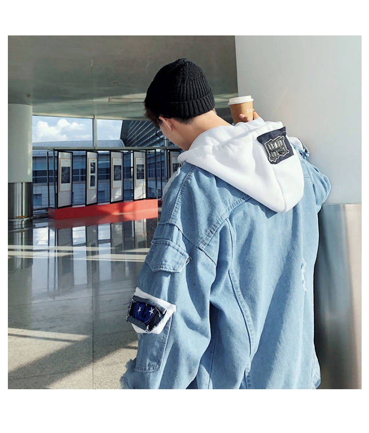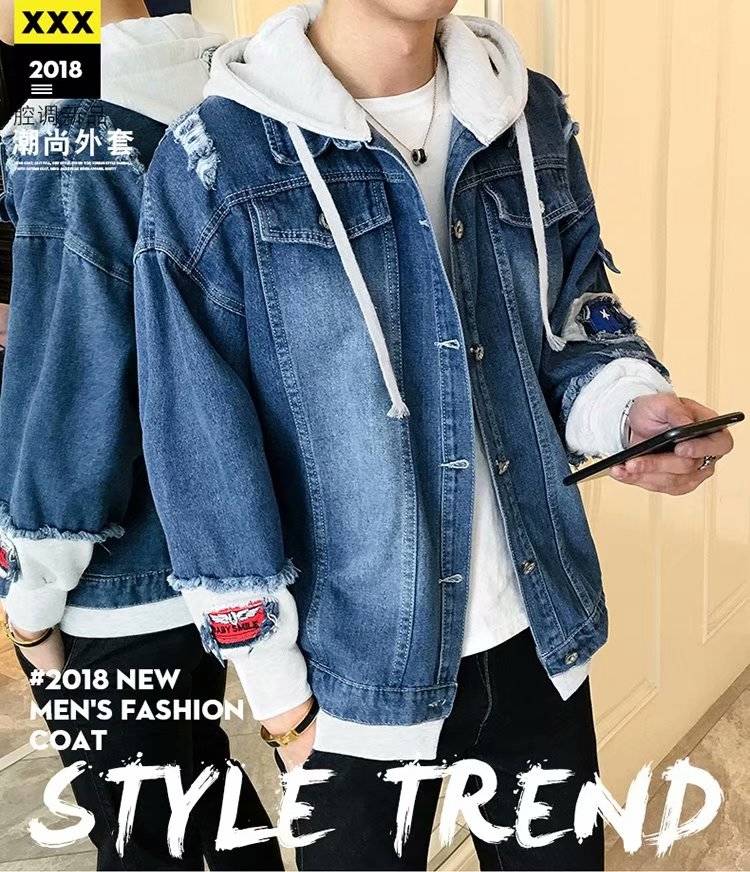 连帽牛仔外套男士韩版春秋装潮流帅气bf风情侣夹克宽松学生牛仔衣
