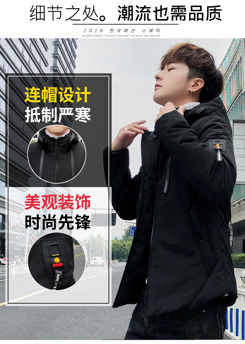 新款男士秋冬男装新款时尚休闲时尚防寒保暖宽松连帽外套