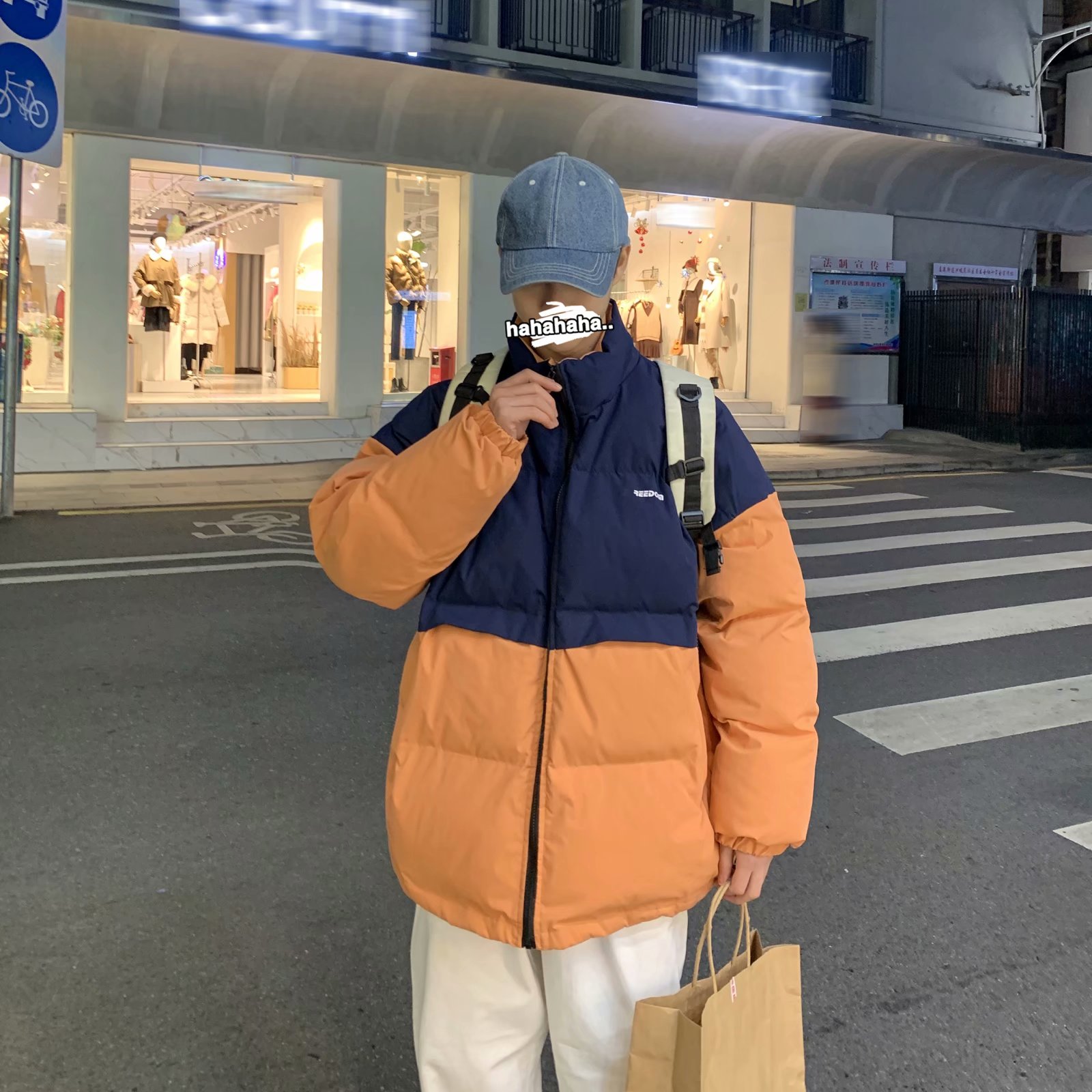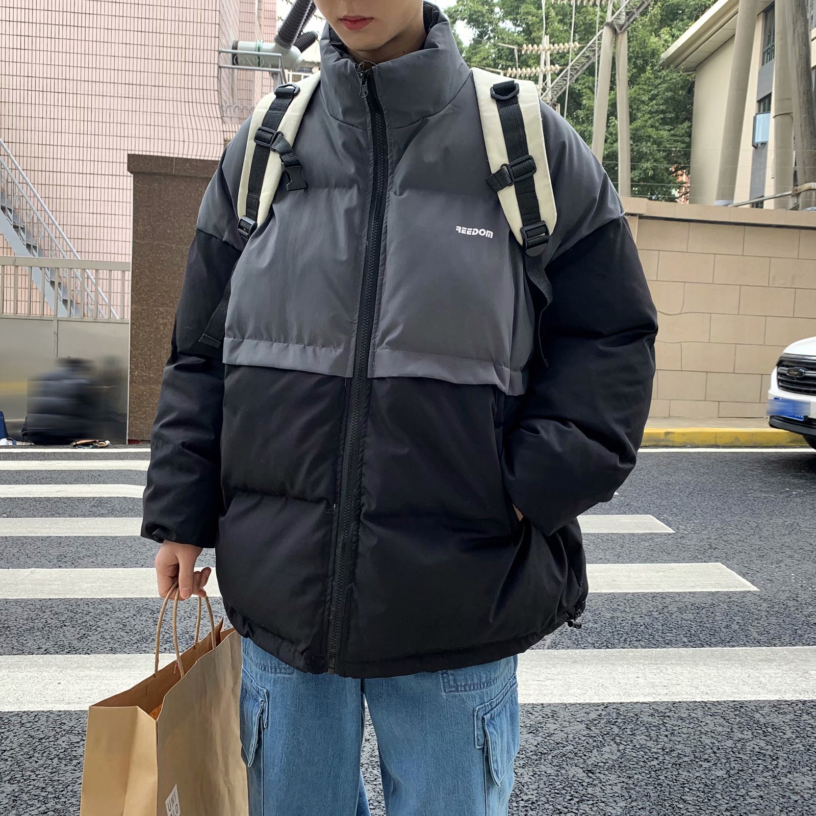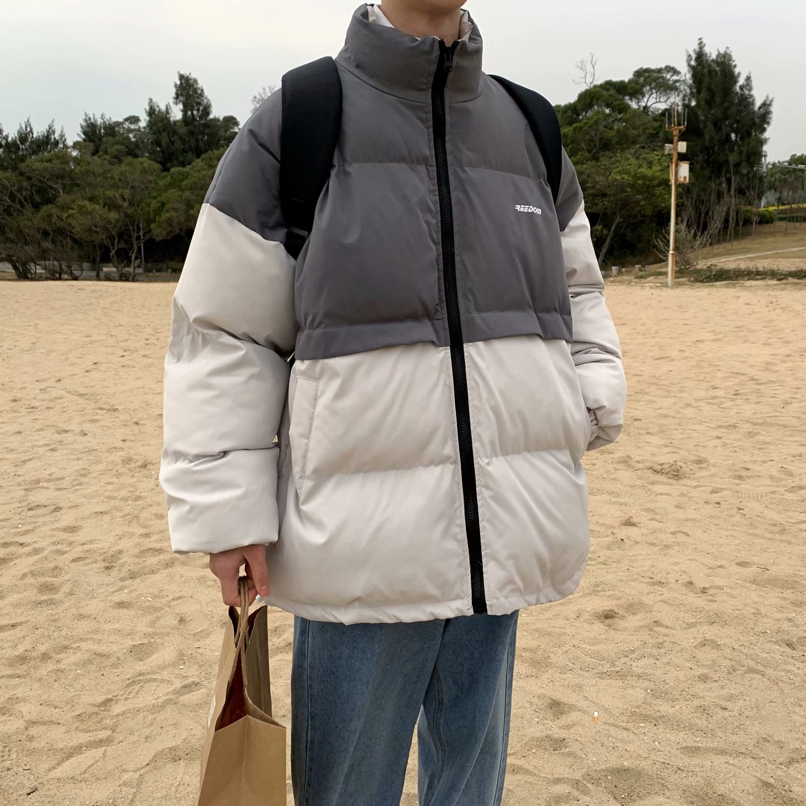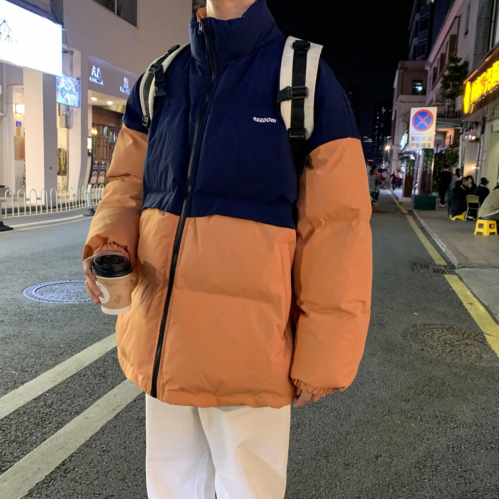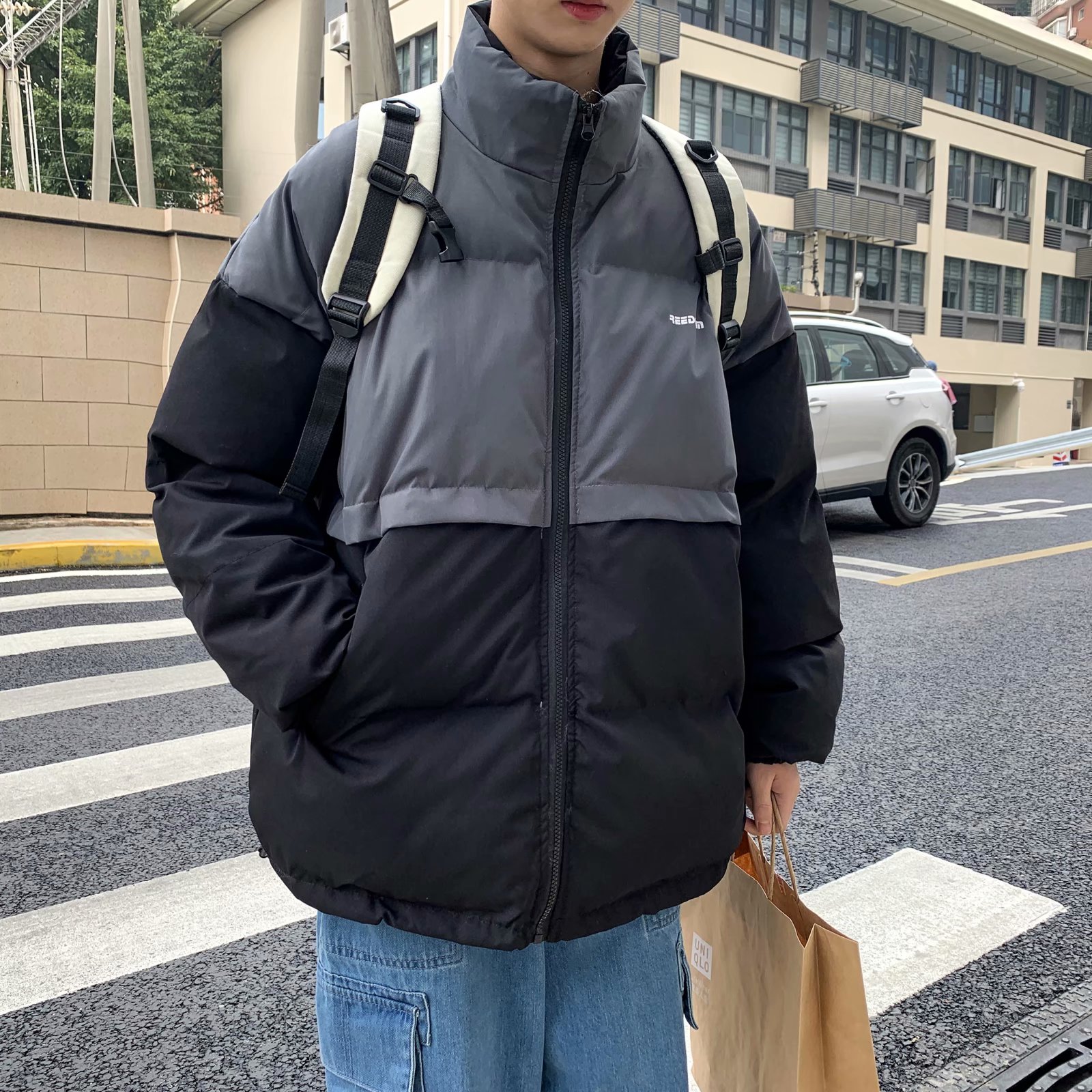 实拍网红外套棉服男学生宽松韩版潮流撞色棉衣情侣外套冬季面包服