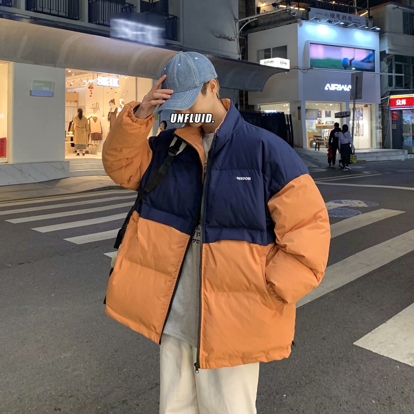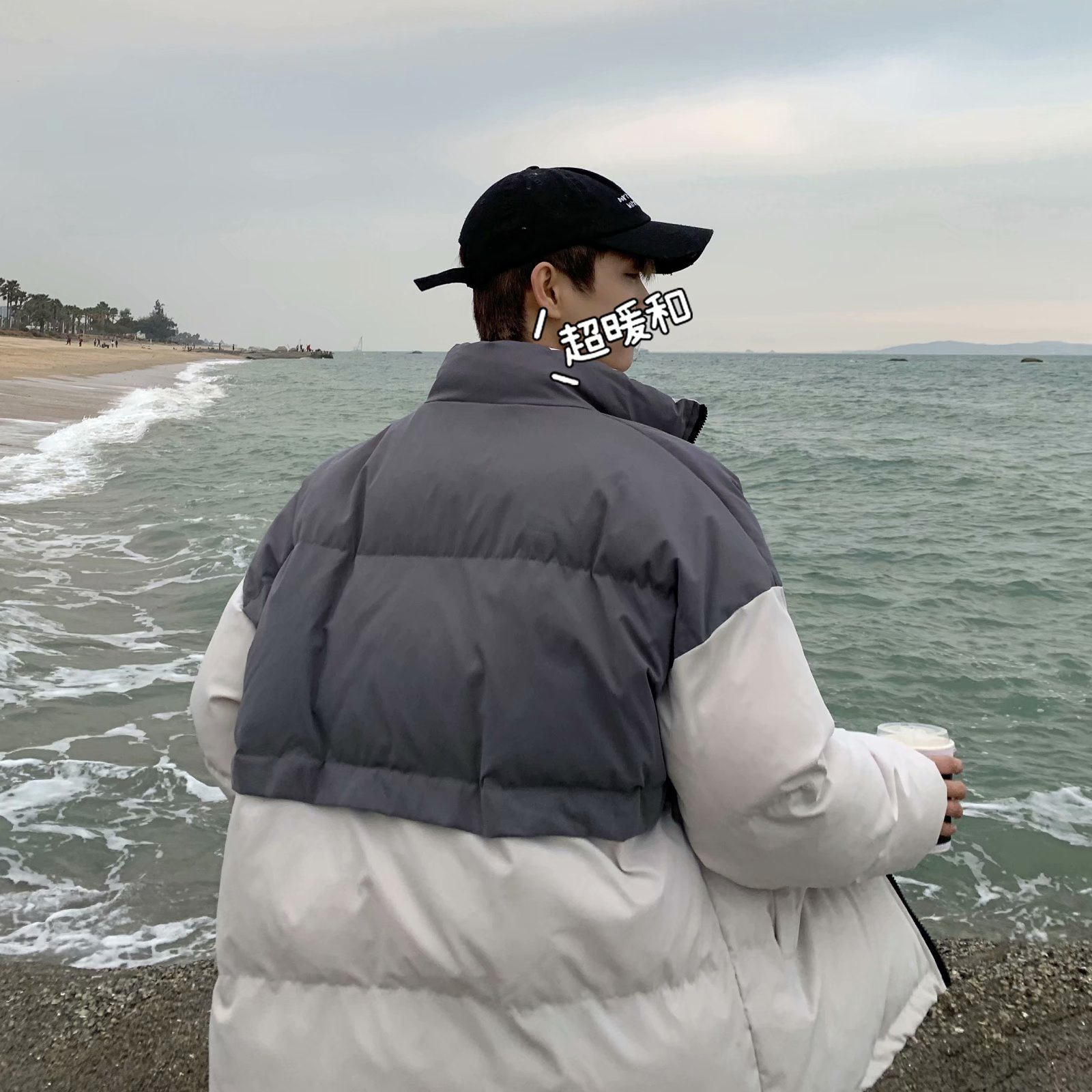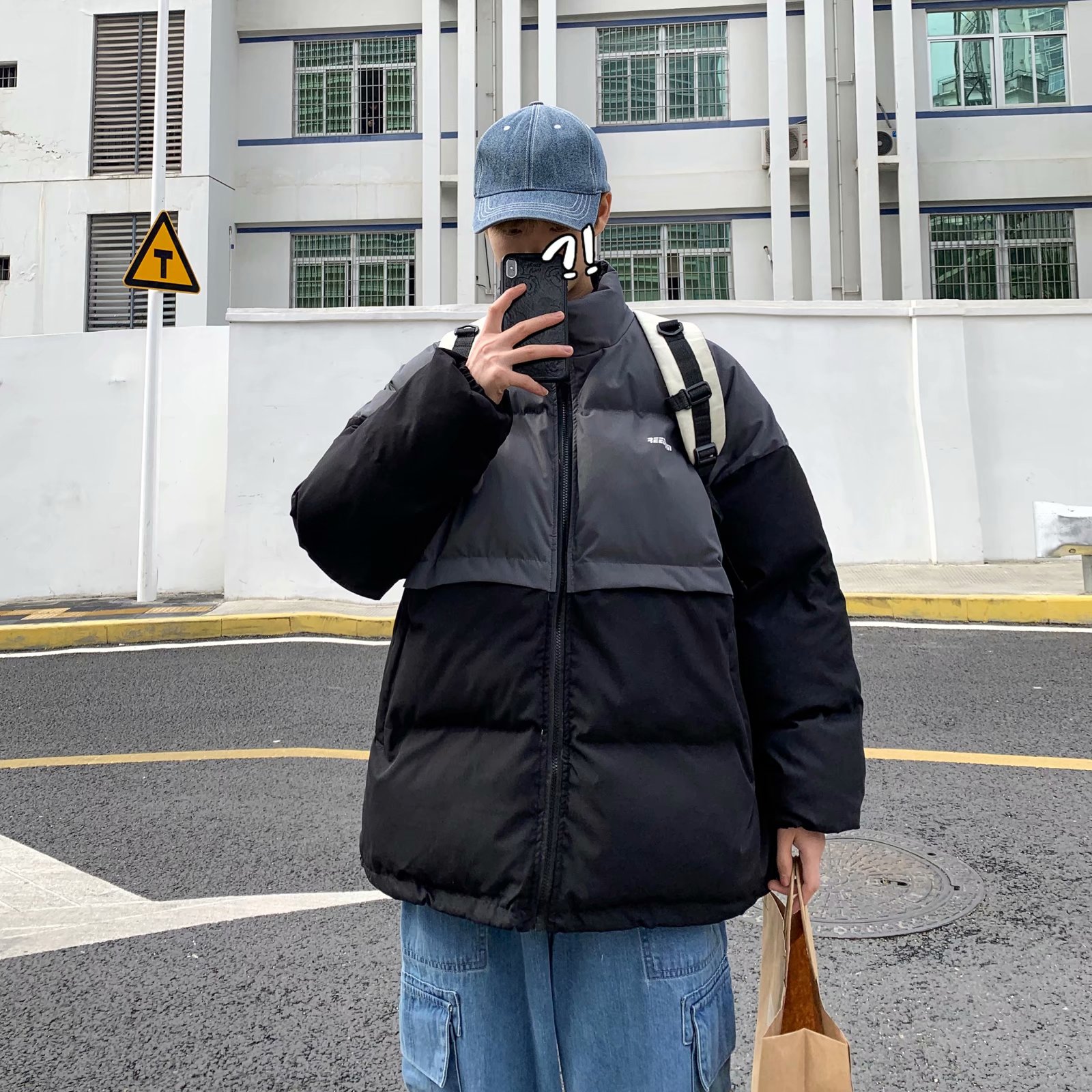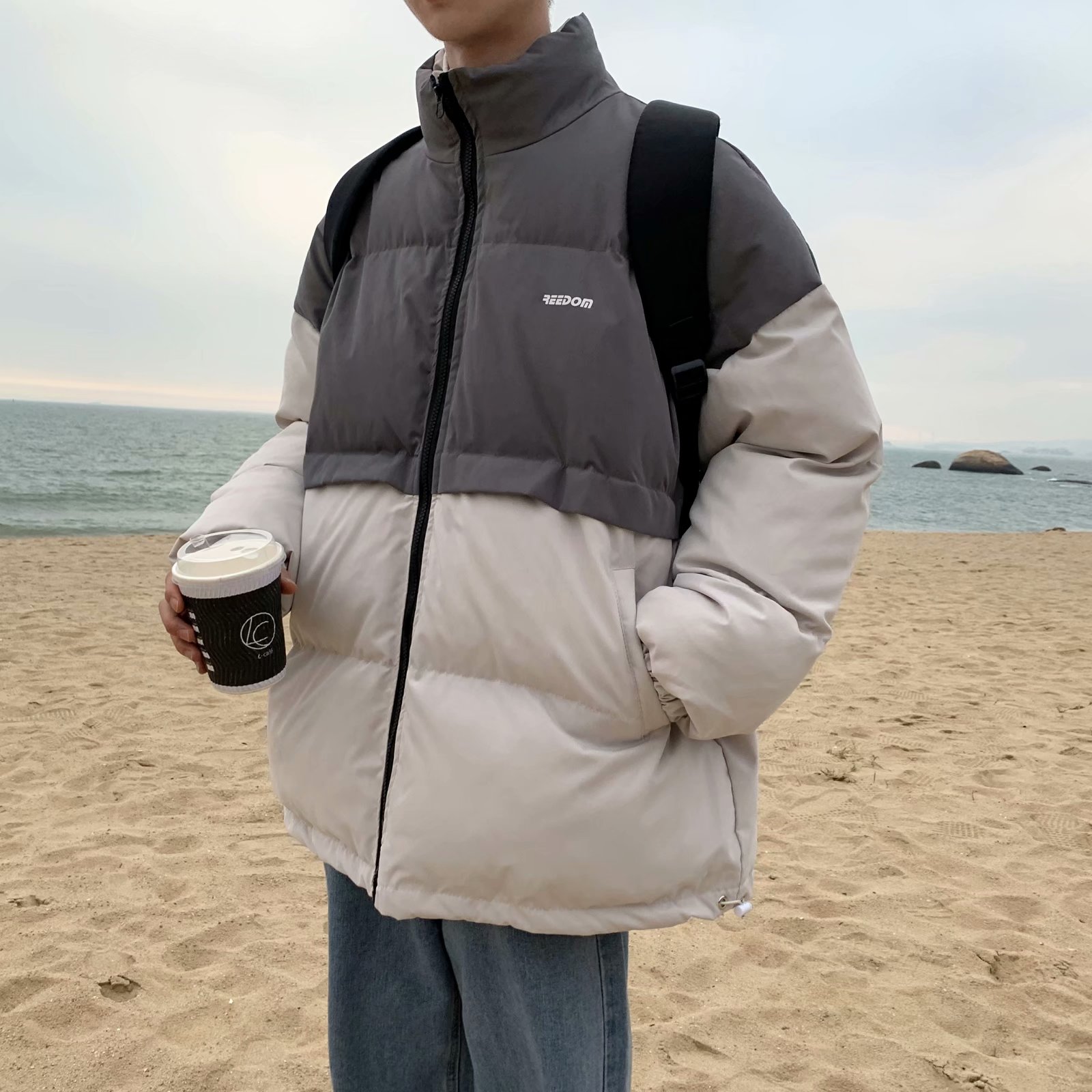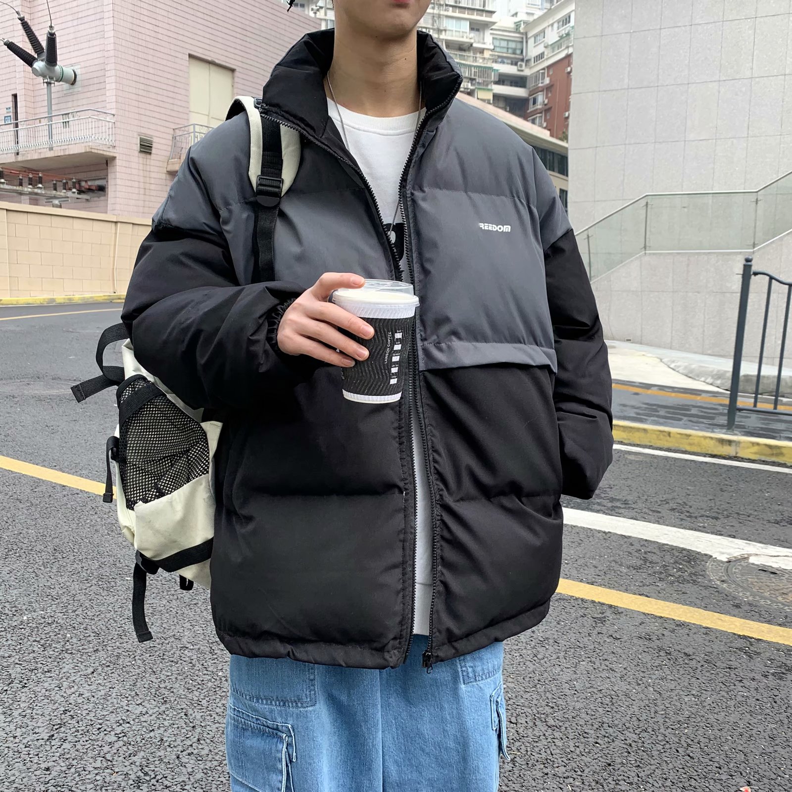 实拍网红外套棉服男学生宽松韩版潮流撞色棉衣情侣外套冬季面包服