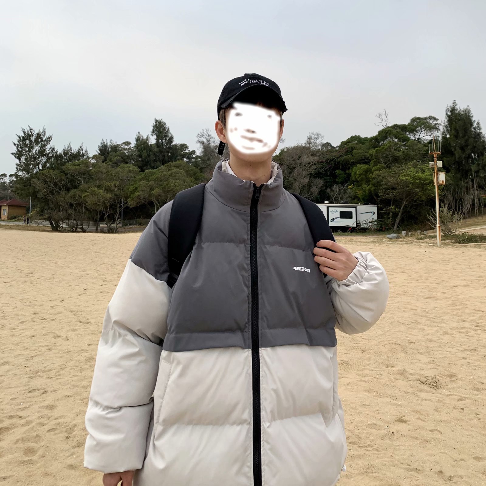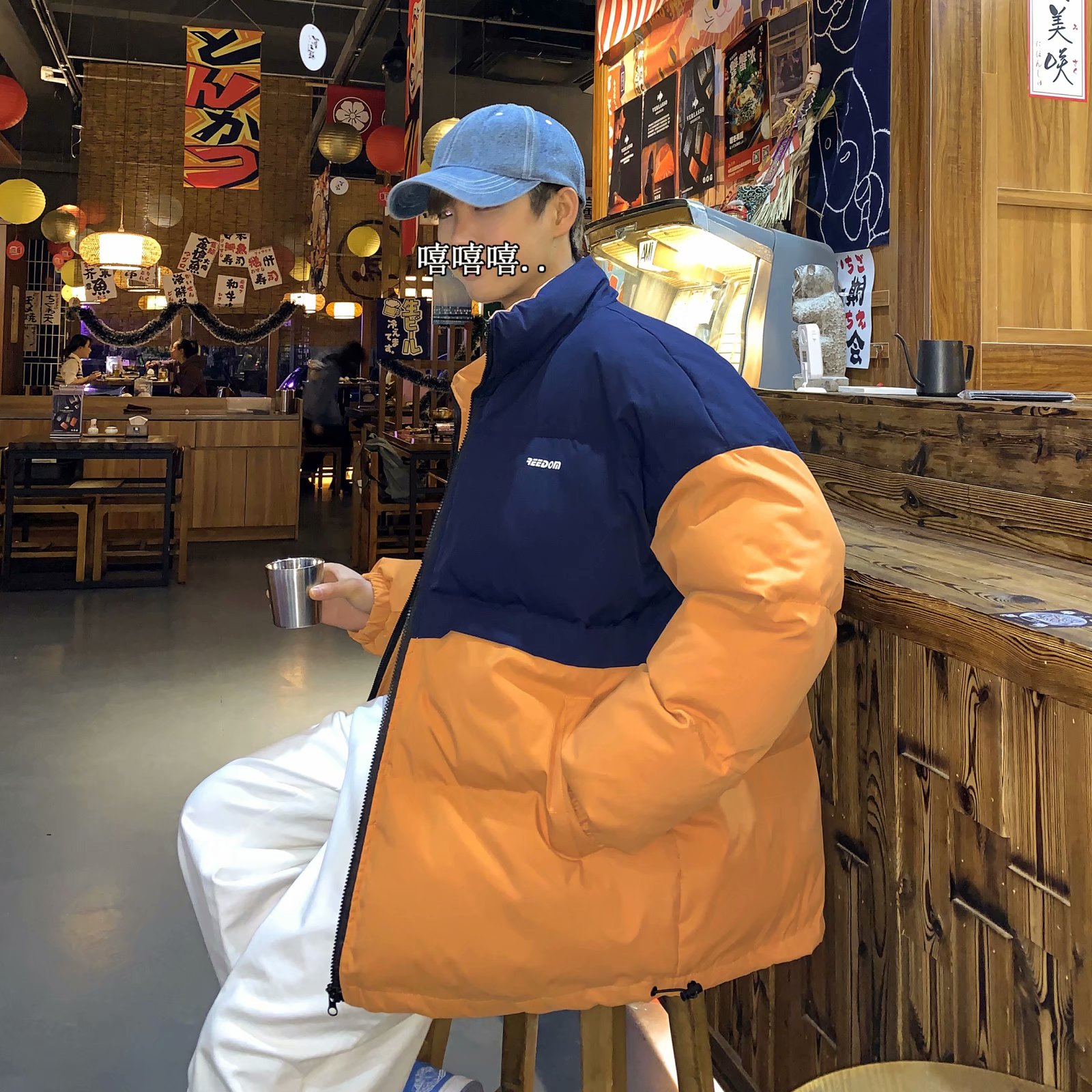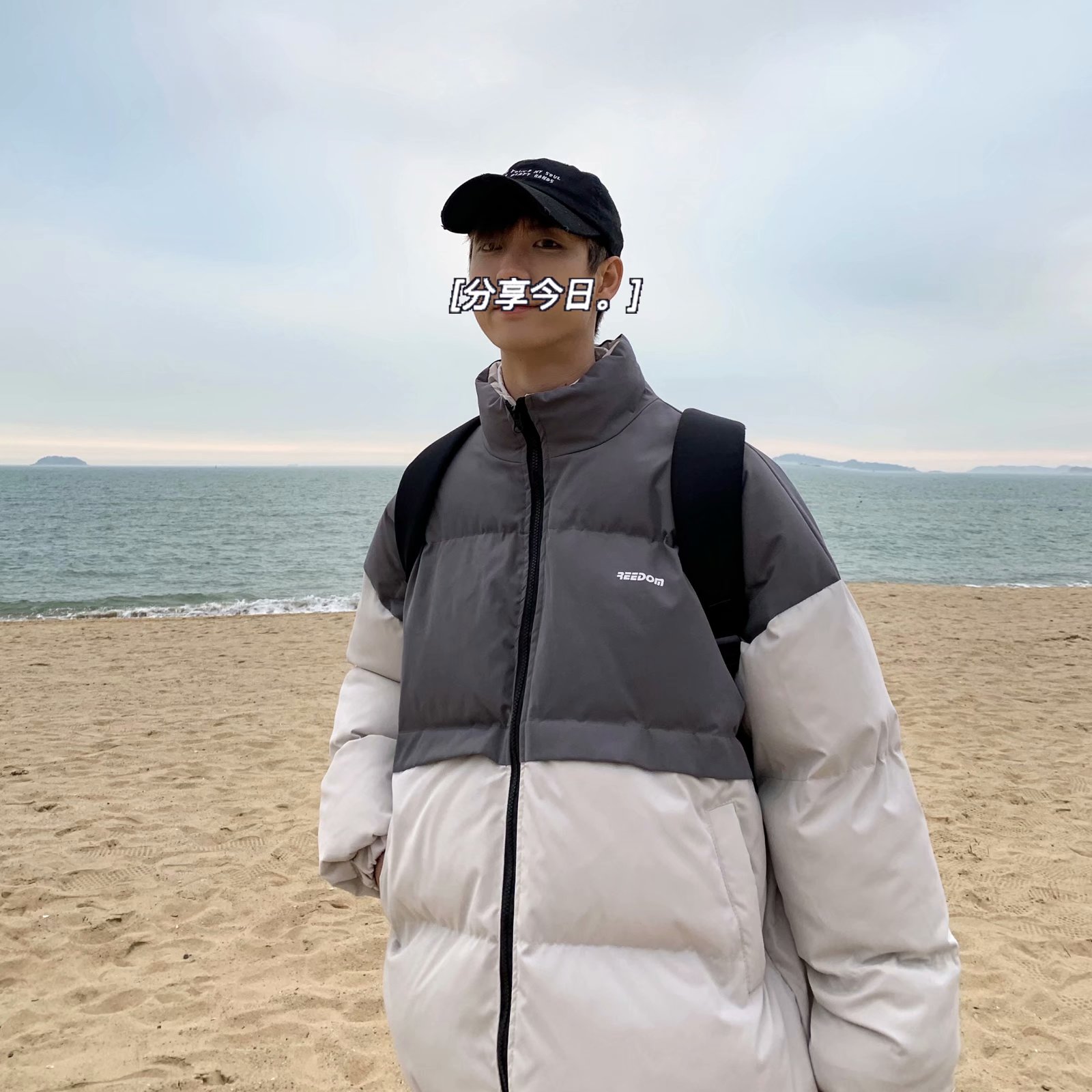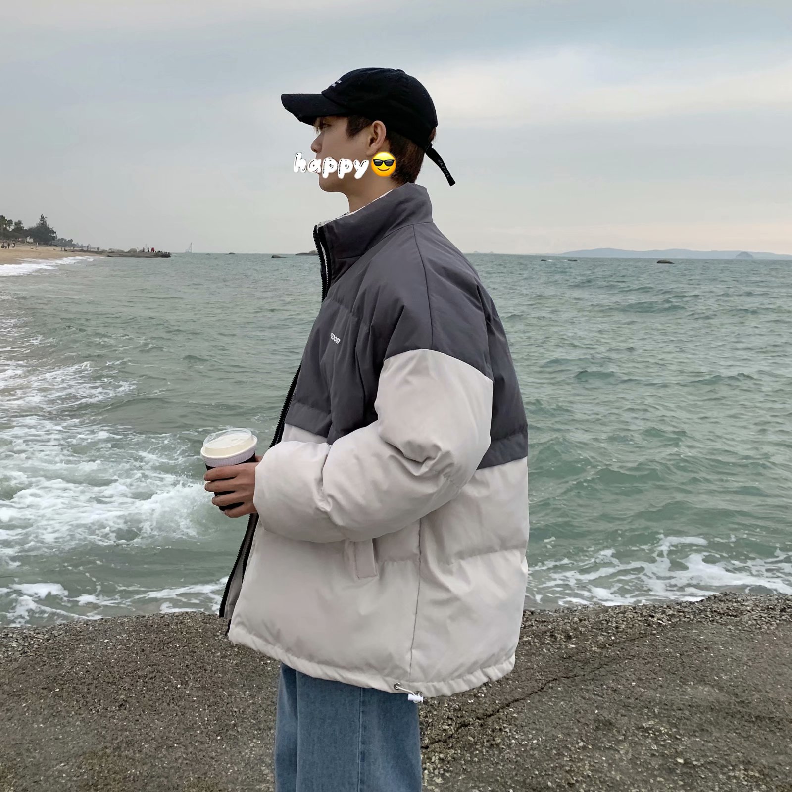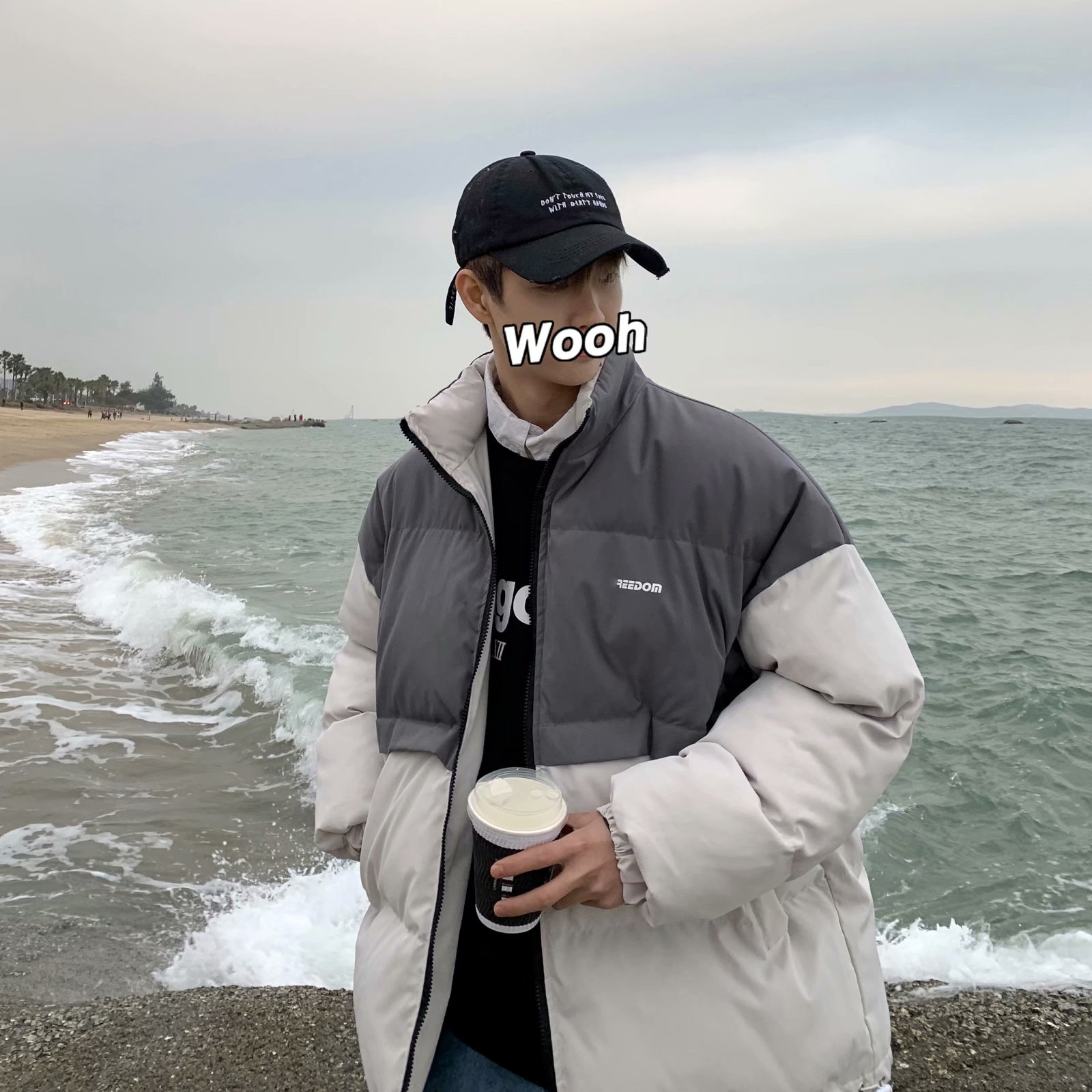 实拍网红外套棉服男学生宽松韩版潮流撞色棉衣情侣外套冬季面包服