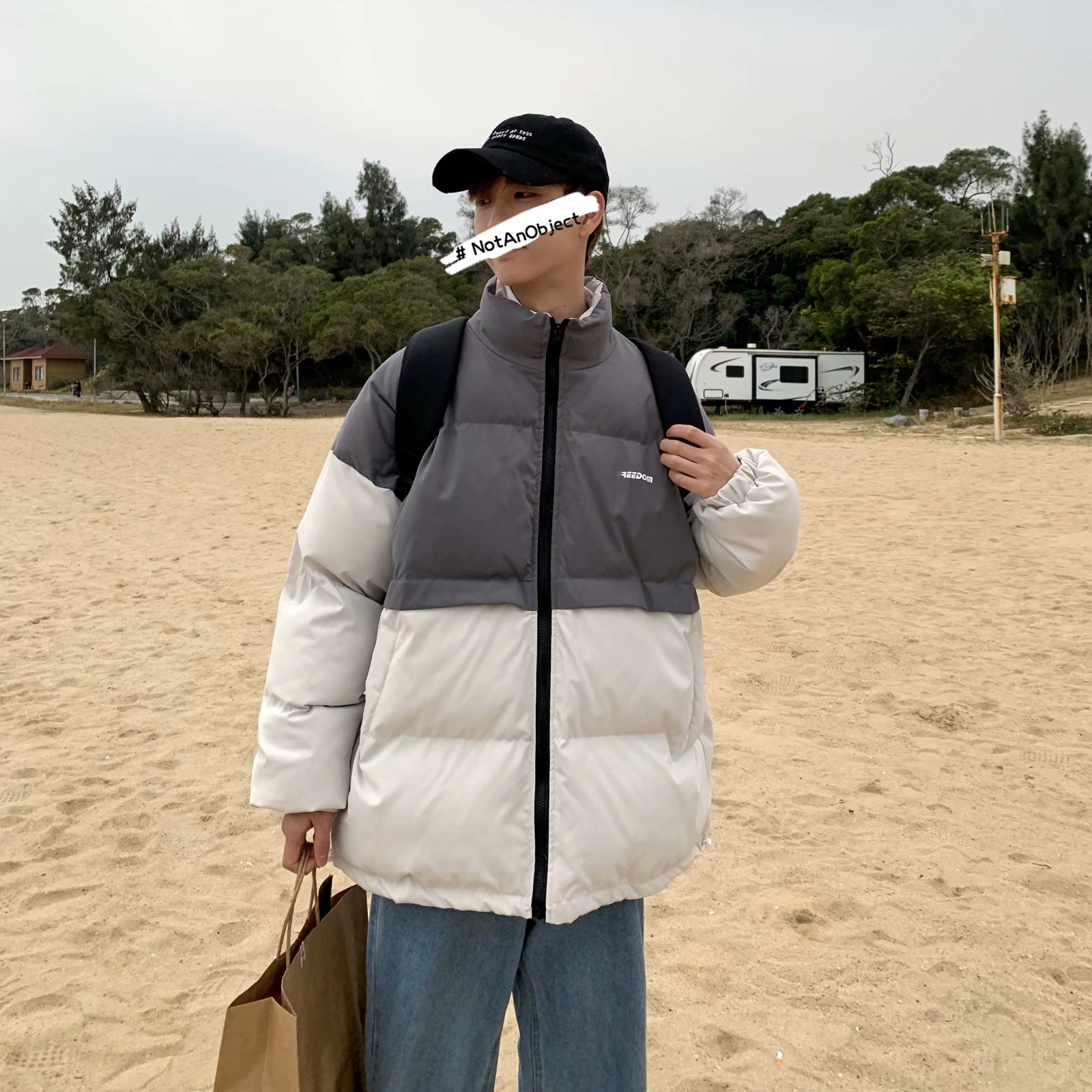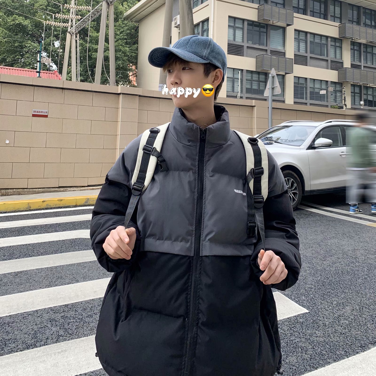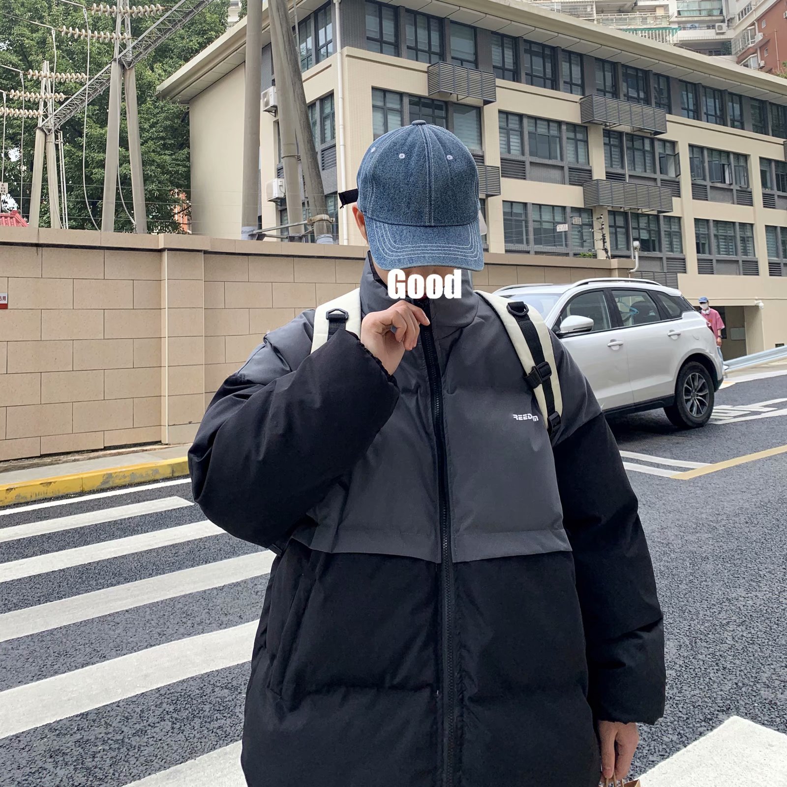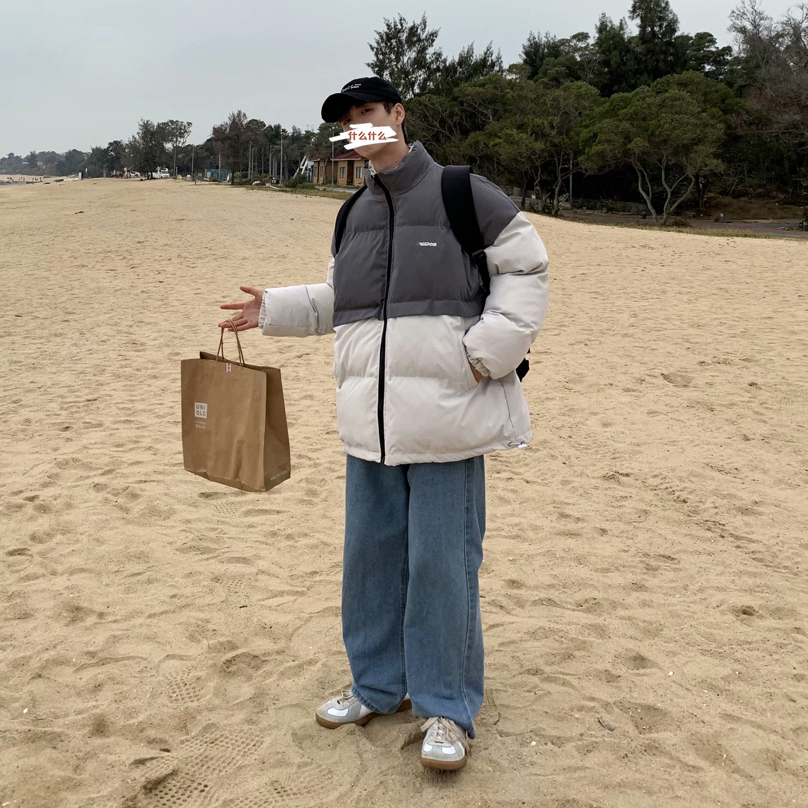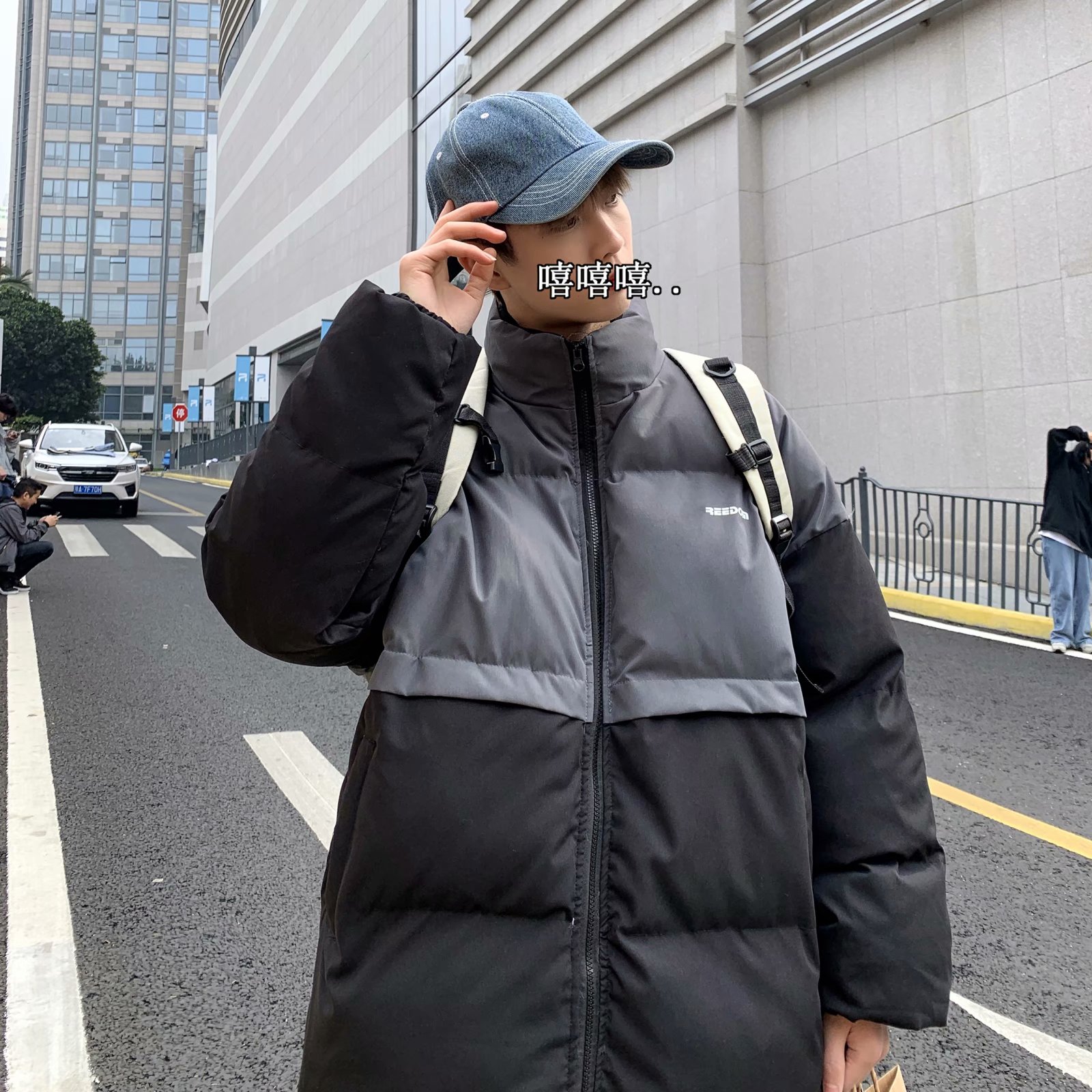 实拍网红外套棉服男学生宽松韩版潮流撞色棉衣情侣外套冬季面包服