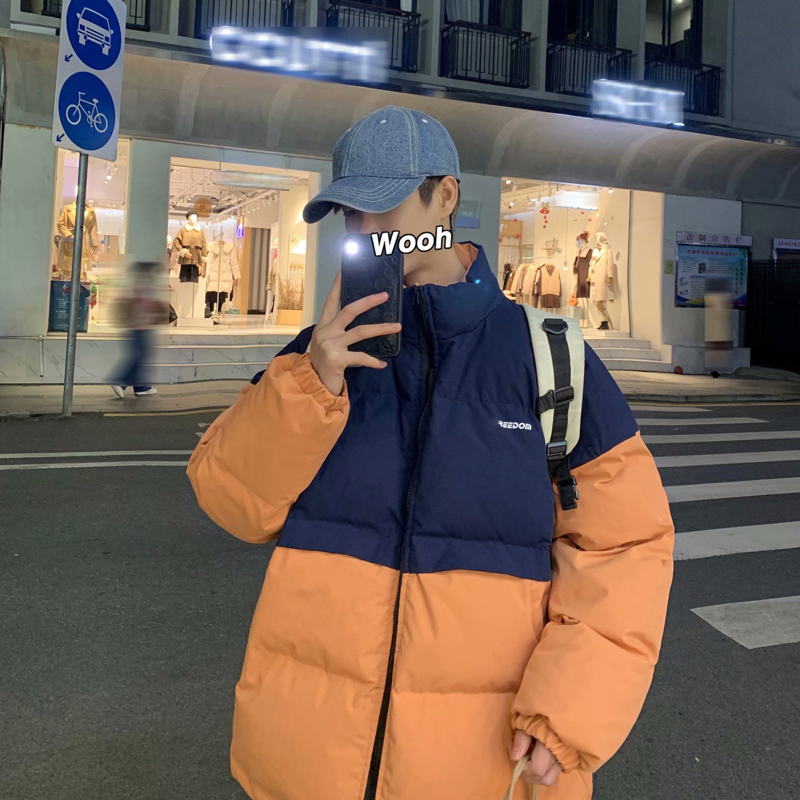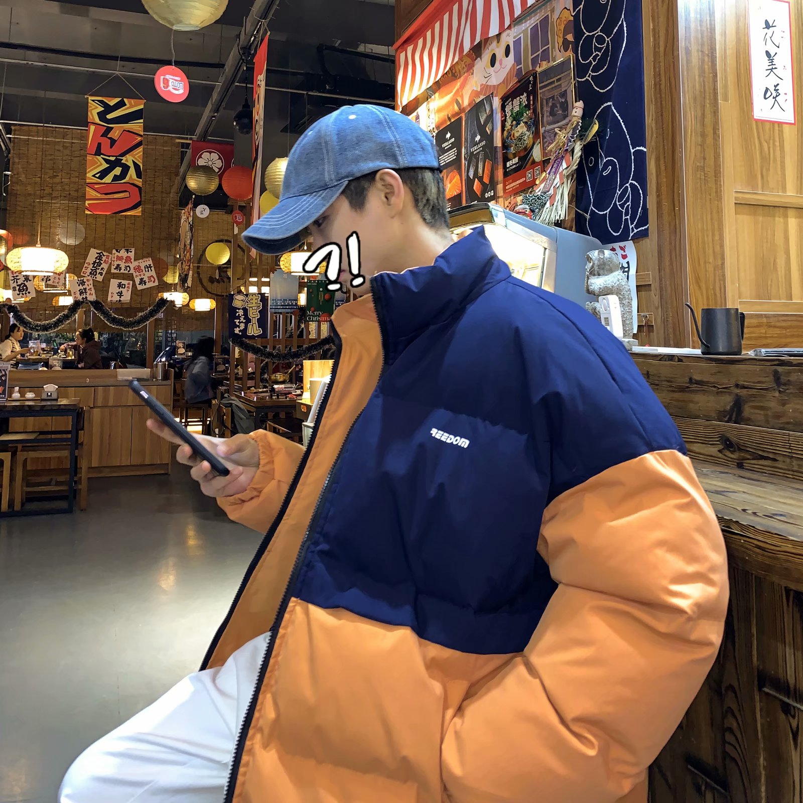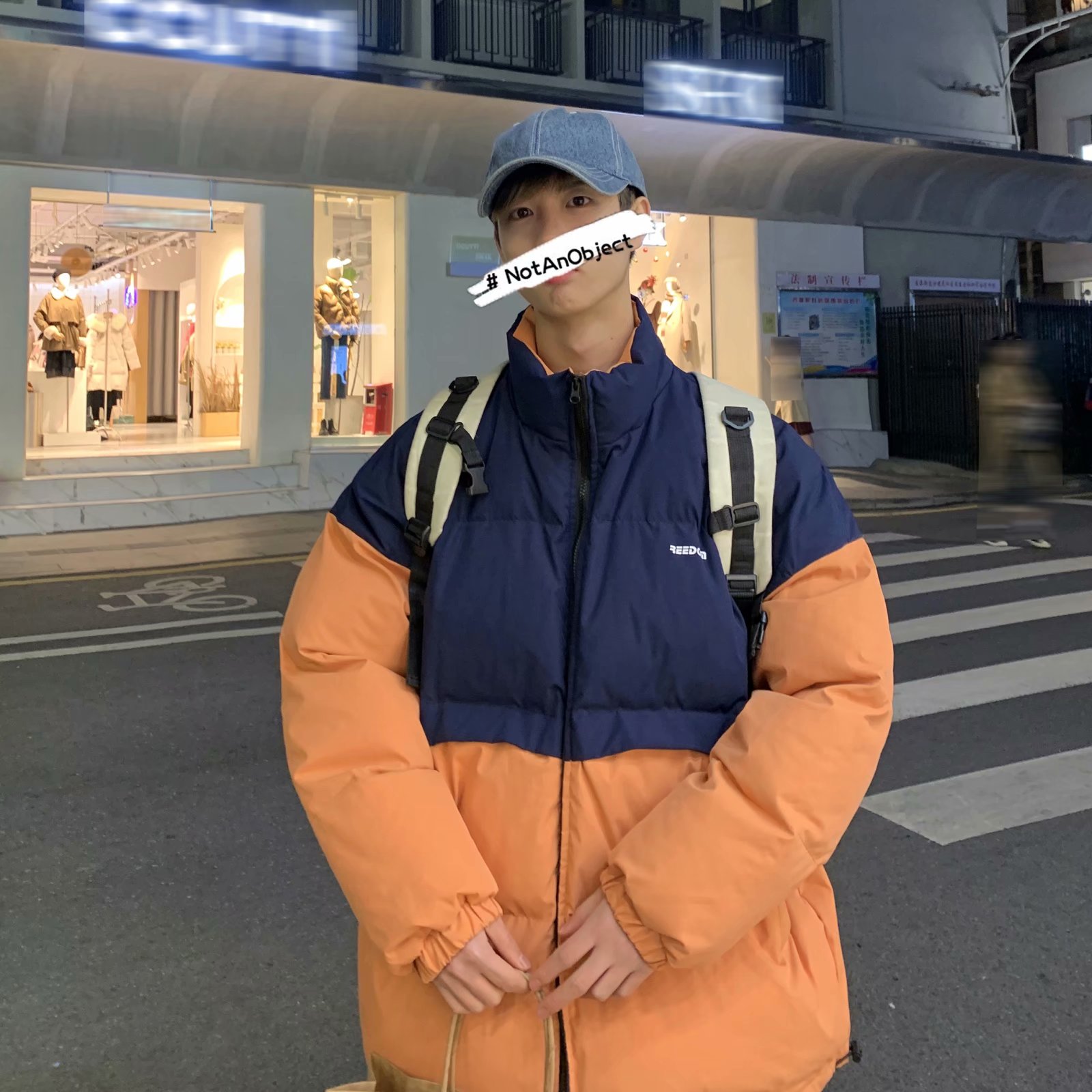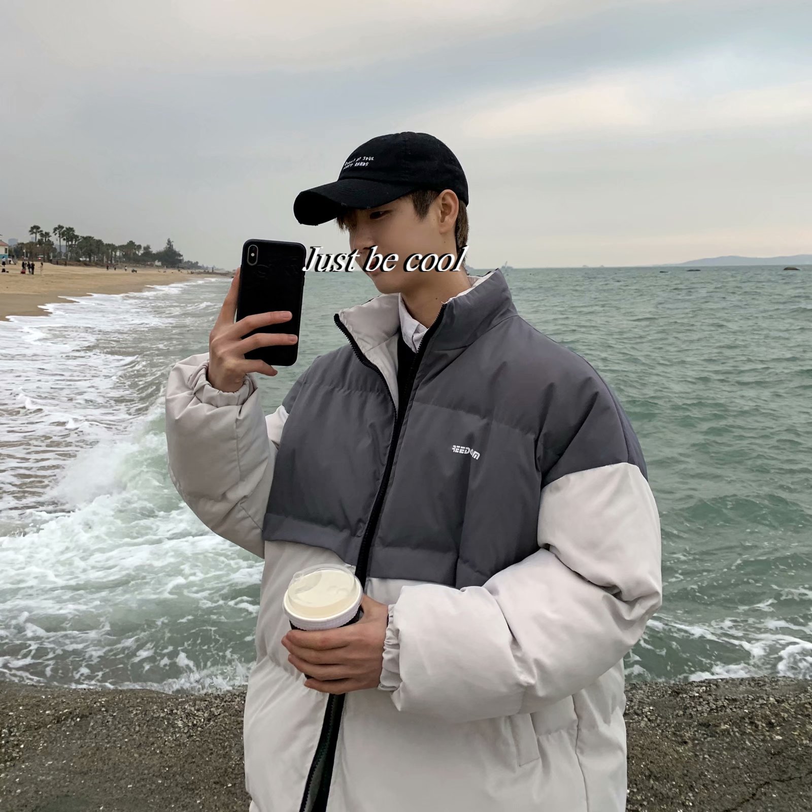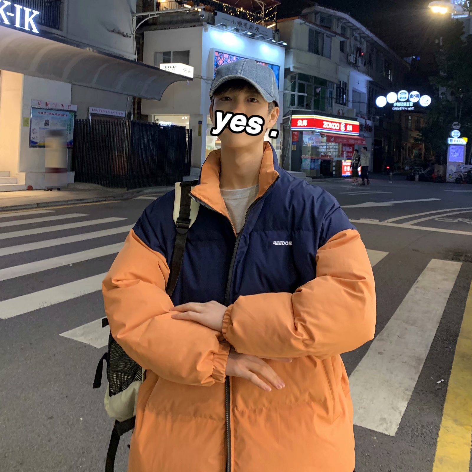 实拍网红外套棉服男学生宽松韩版潮流撞色棉衣情侣外套冬季面包服