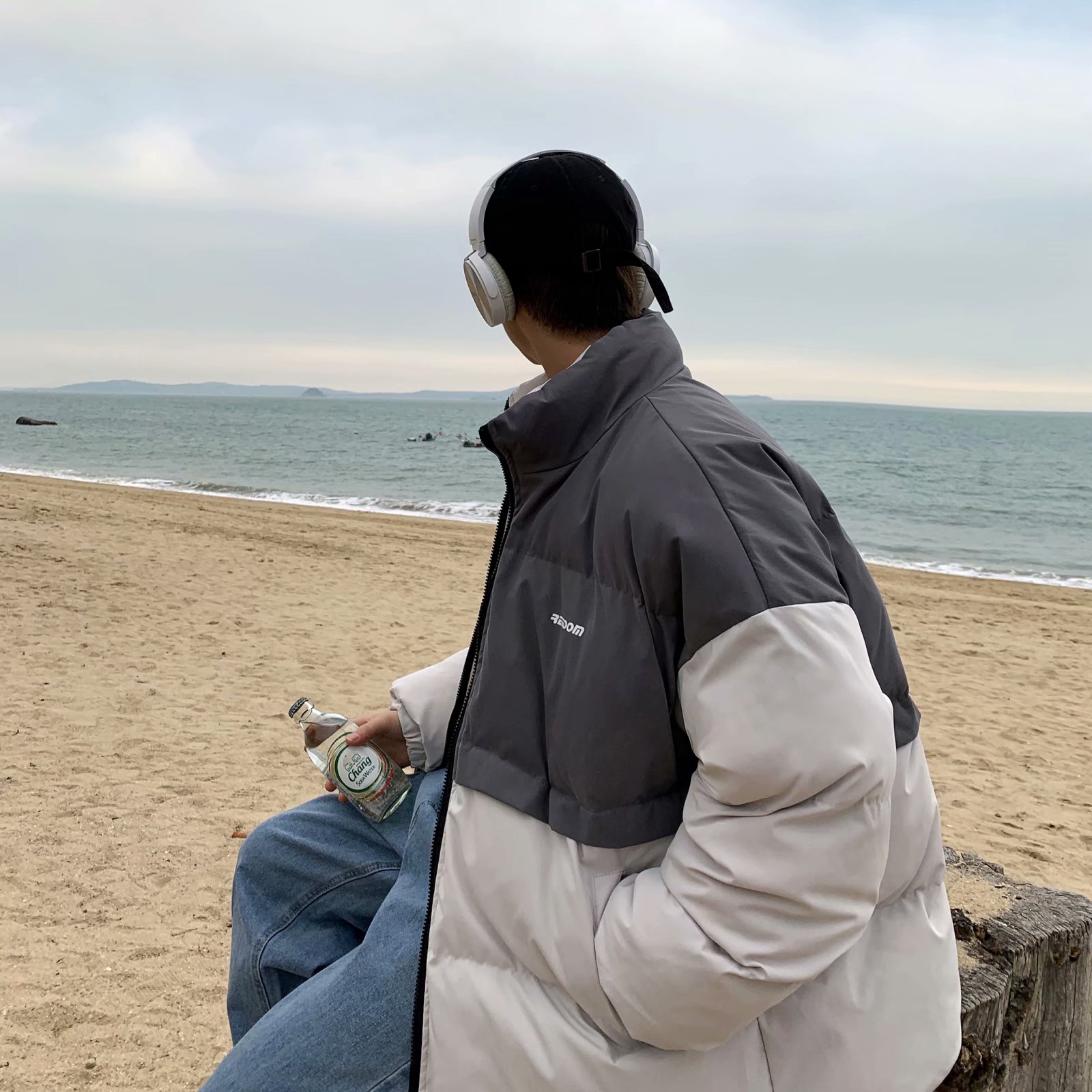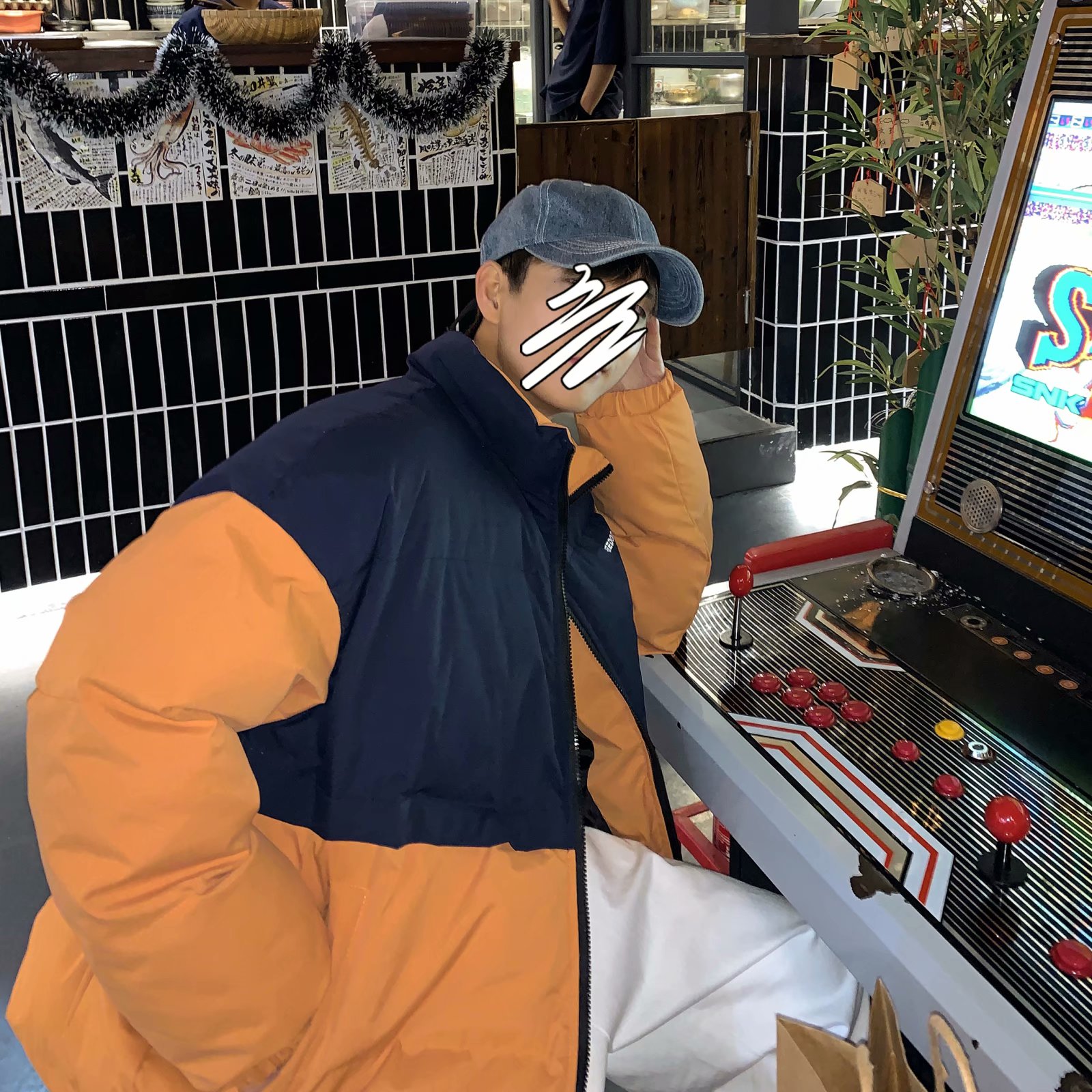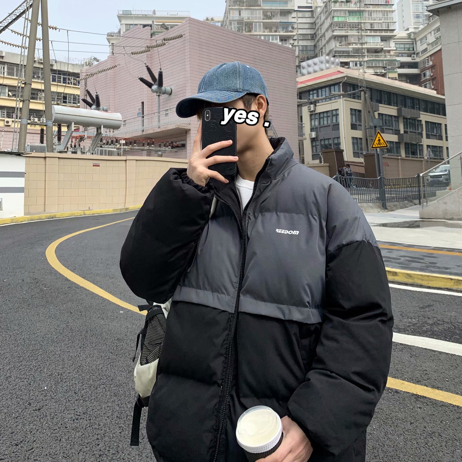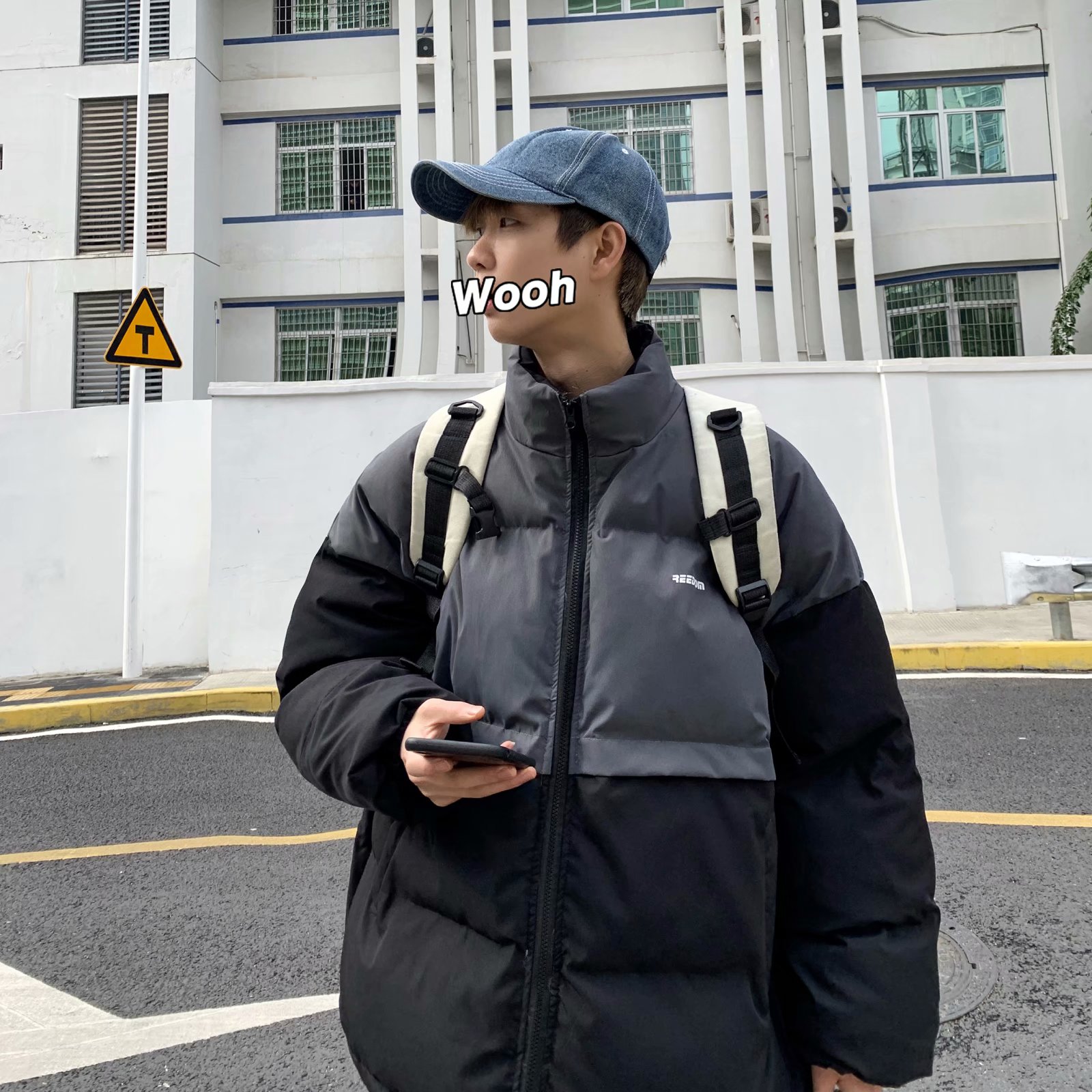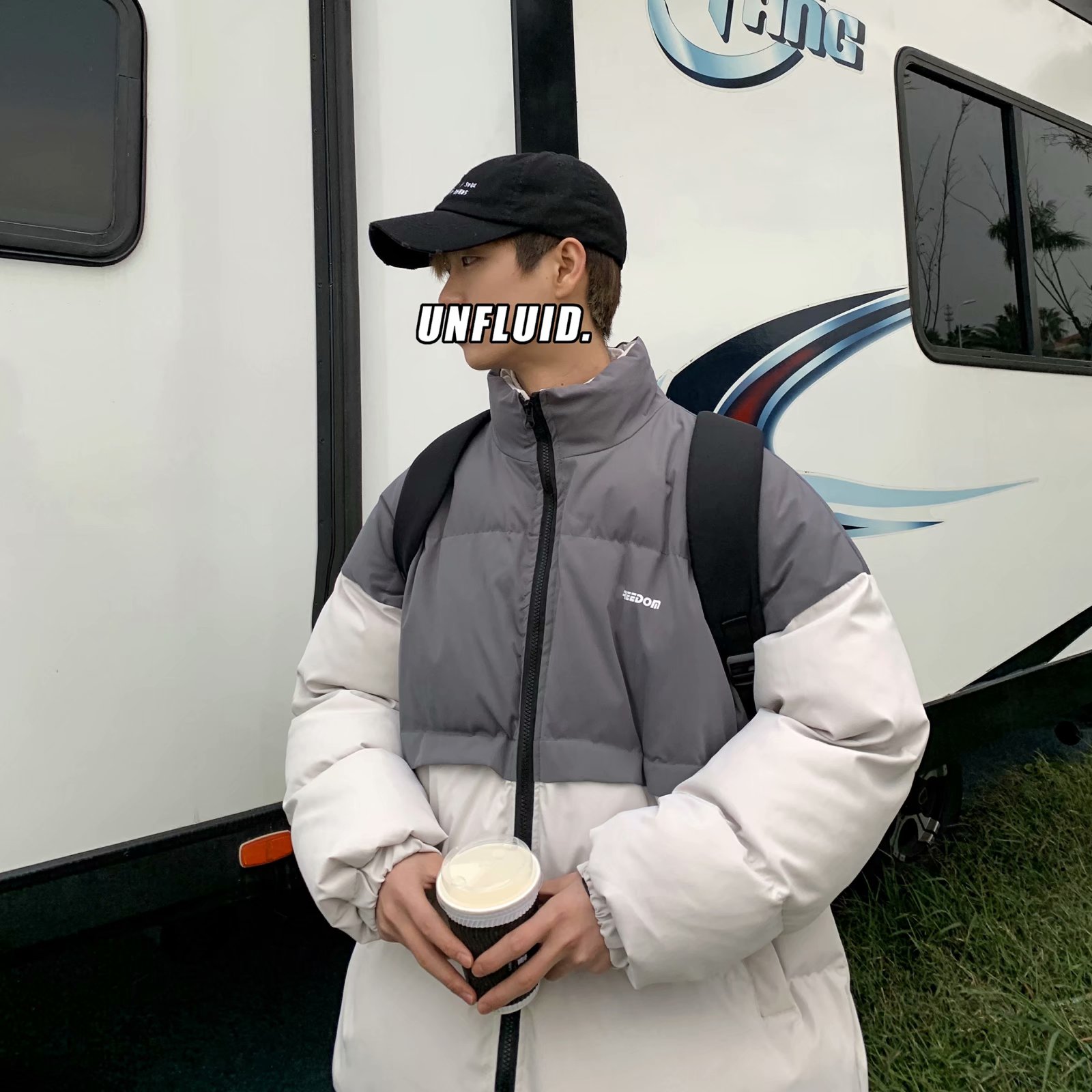 实拍网红外套棉服男学生宽松韩版潮流撞色棉衣情侣外套冬季面包服