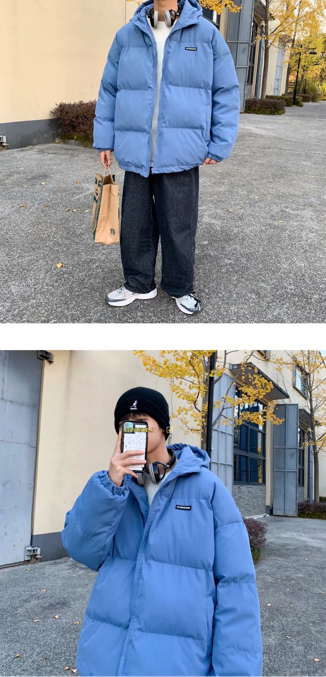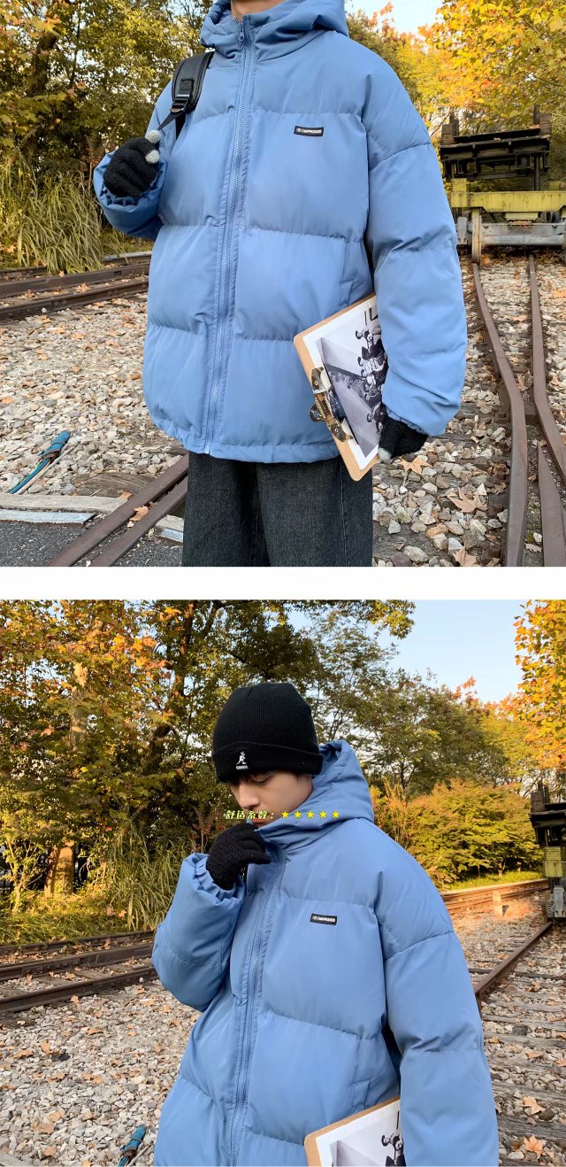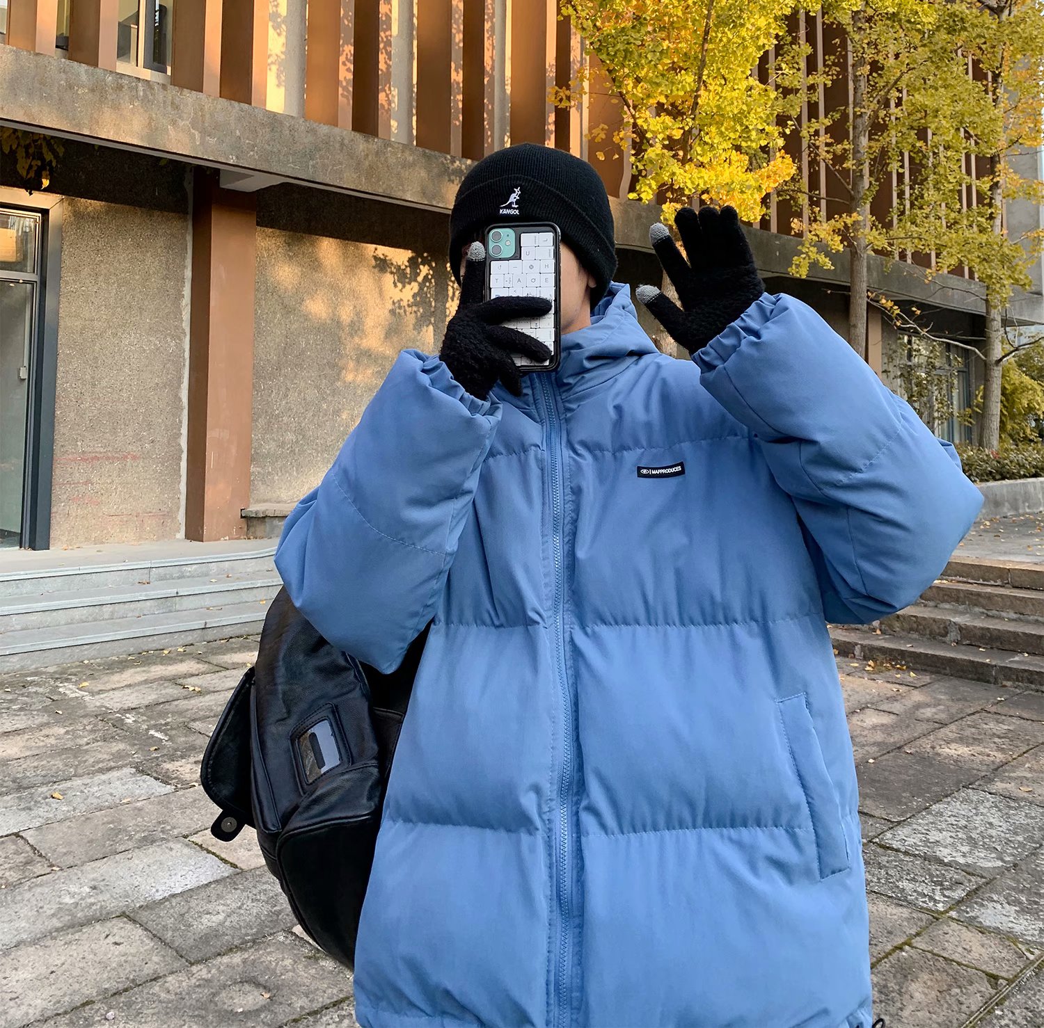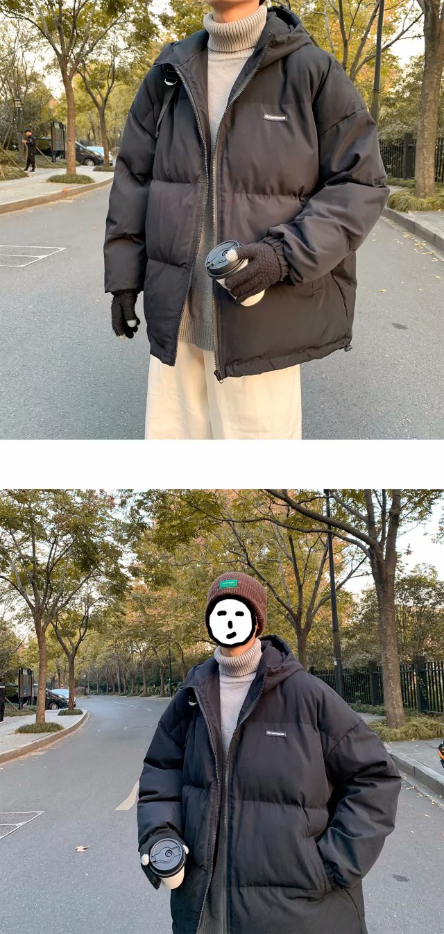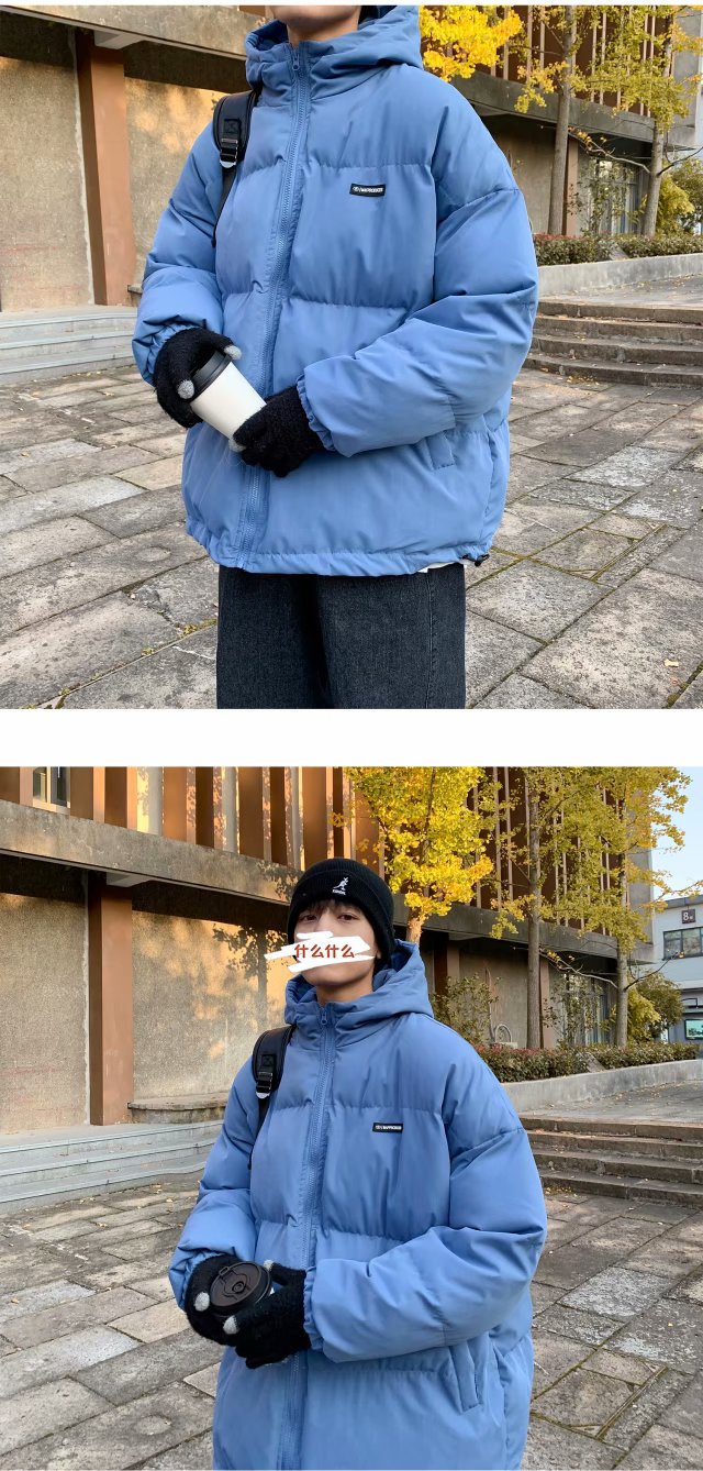 实拍冬季港风连帽工装棉衣男韩版潮流青少年百搭宽松加厚棉服外套