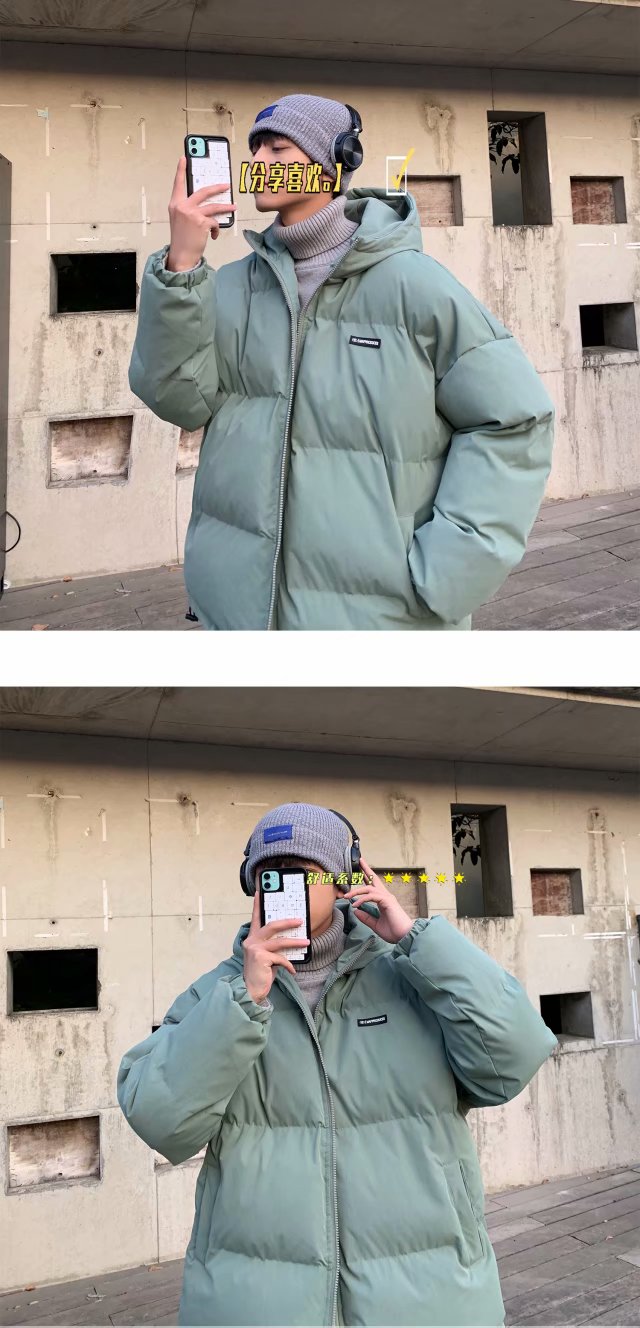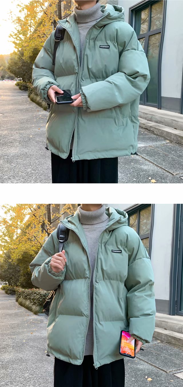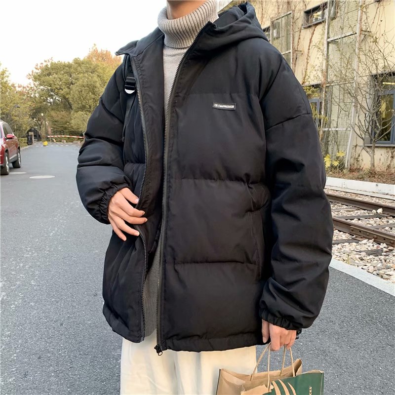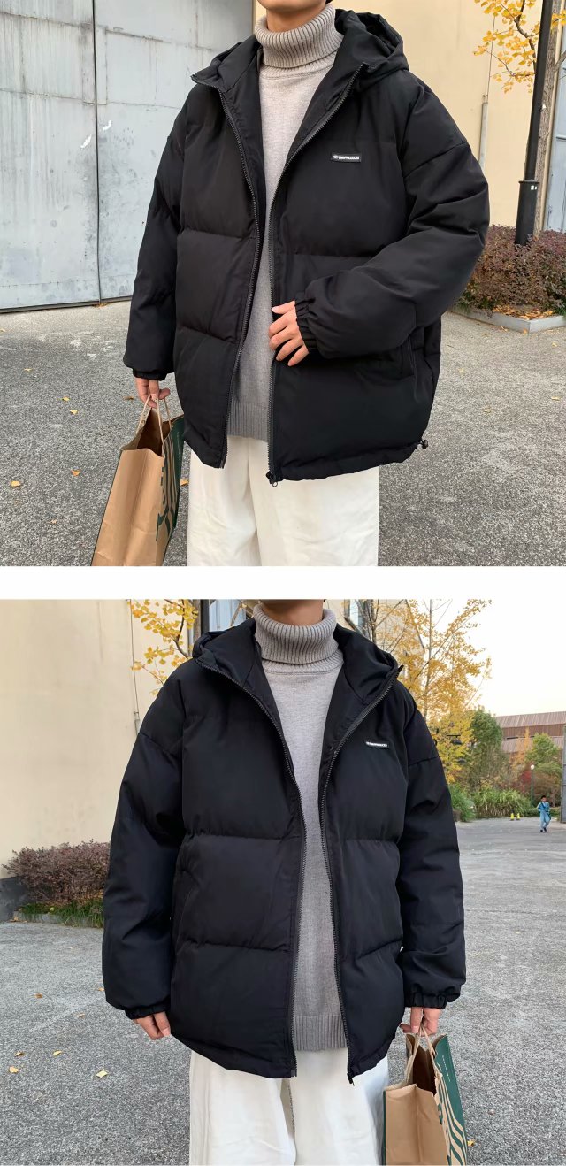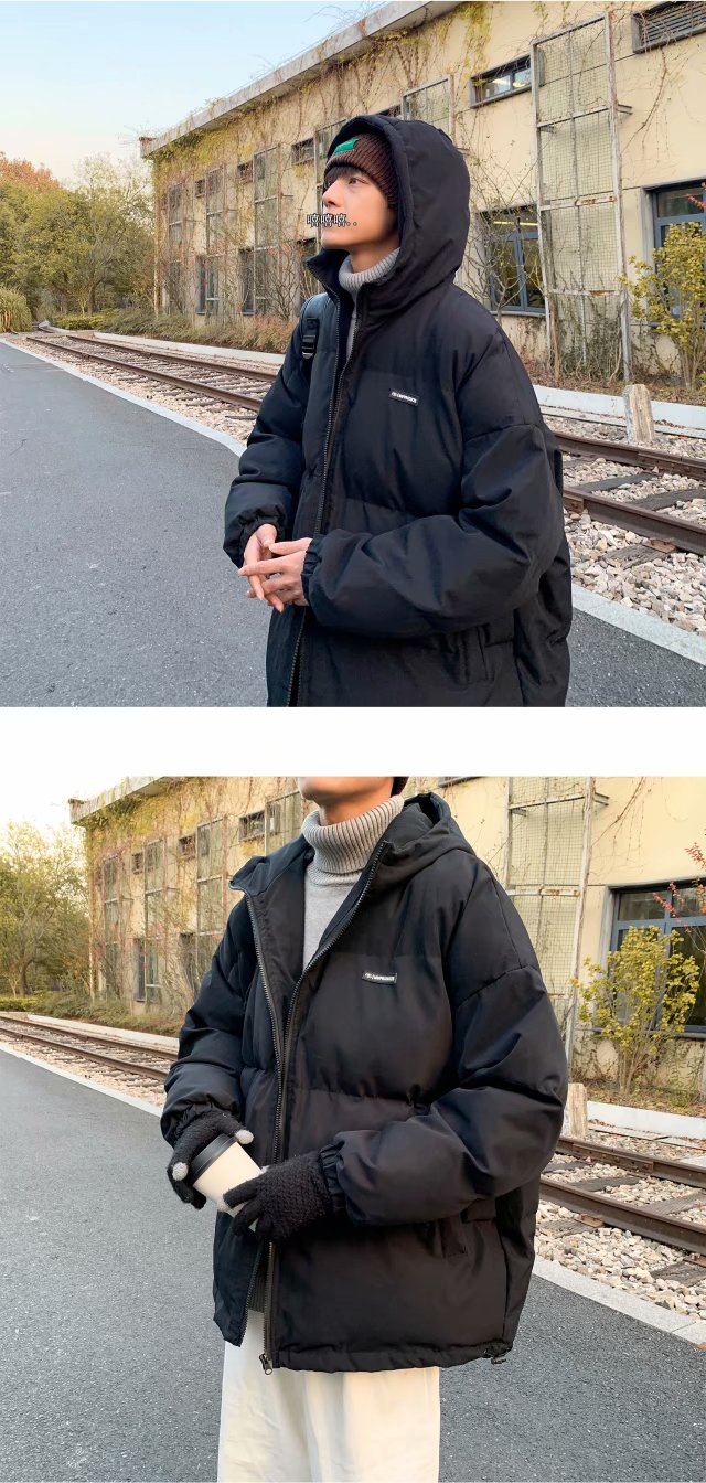 实拍冬季港风连帽工装棉衣男韩版潮流青少年百搭宽松加厚棉服外套