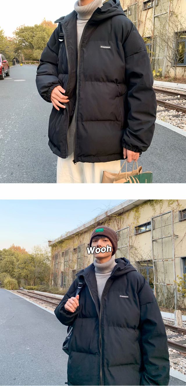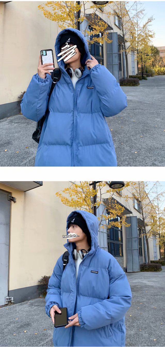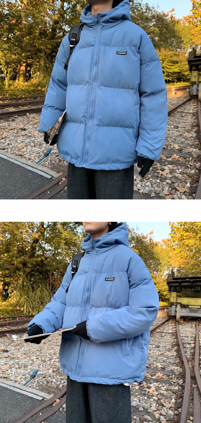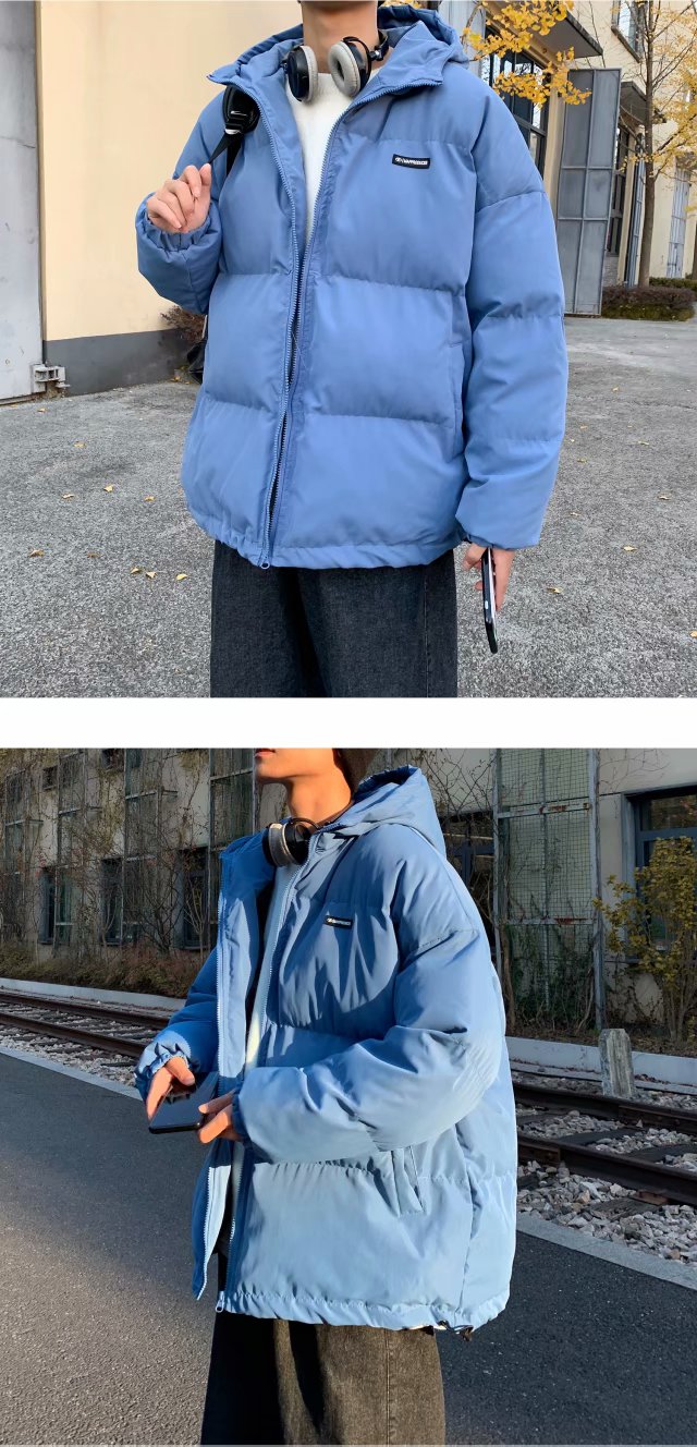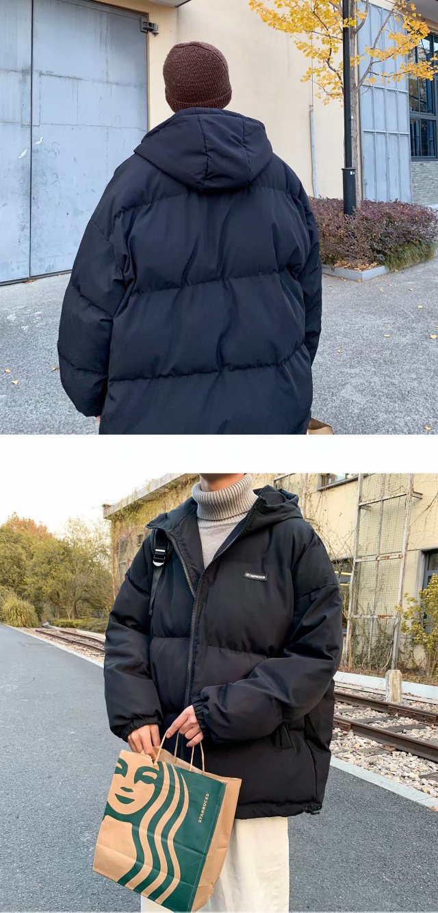 实拍冬季港风连帽工装棉衣男韩版潮流青少年百搭宽松加厚棉服外套