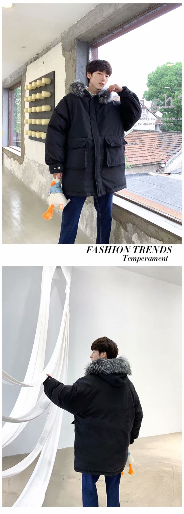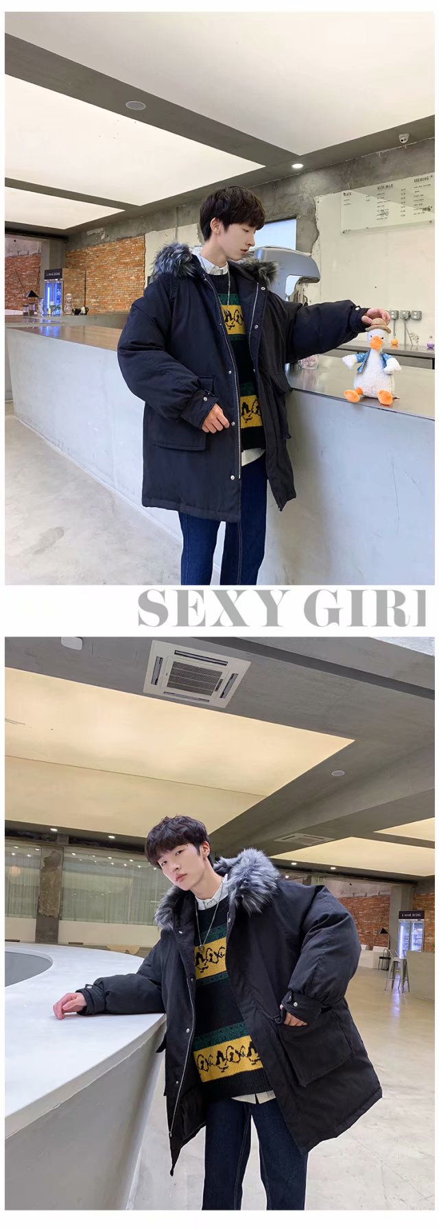 时尚新款棉衣男冬季外套新款韩版中长款羽绒棉服帅气大毛领棉袄潮