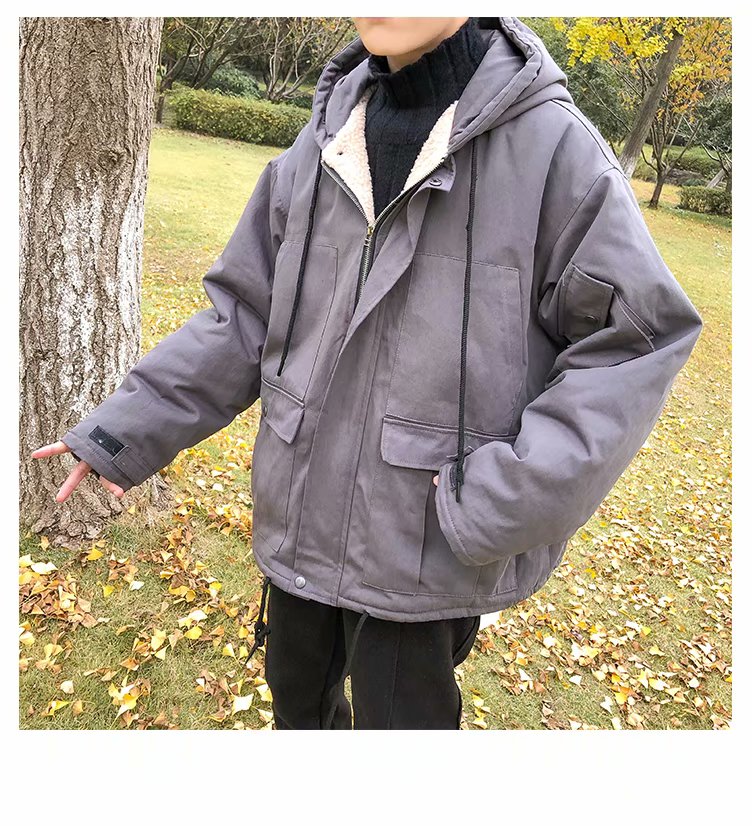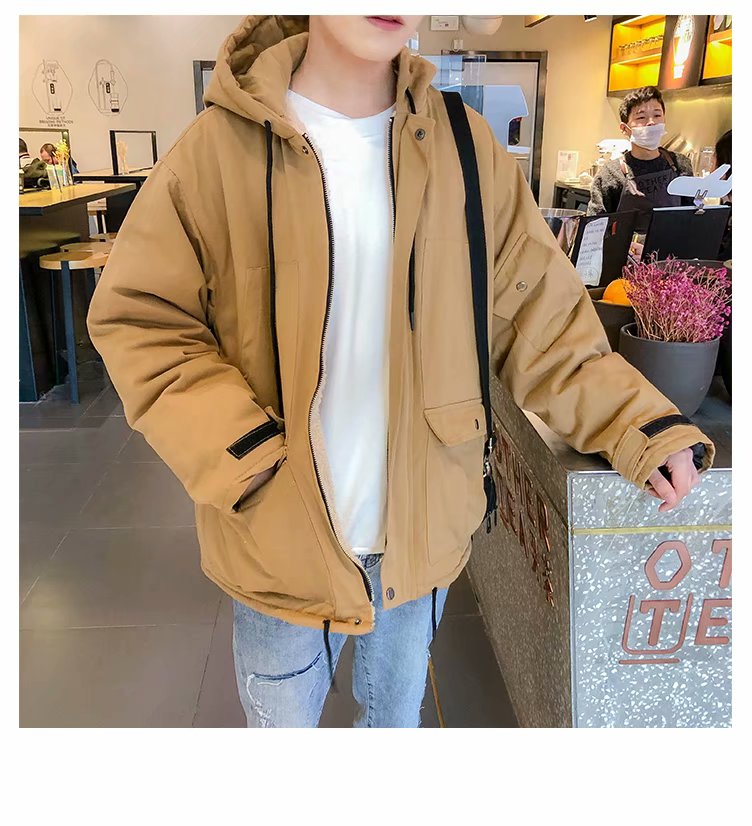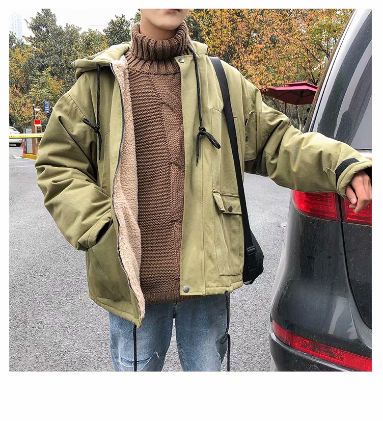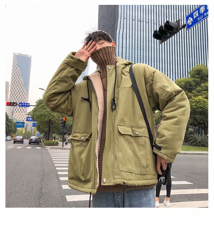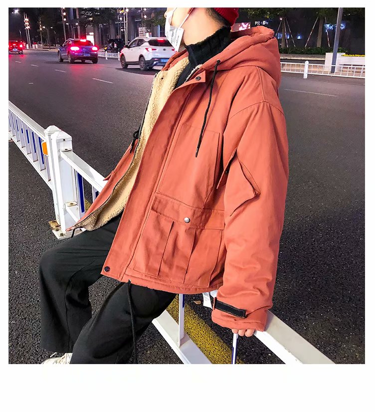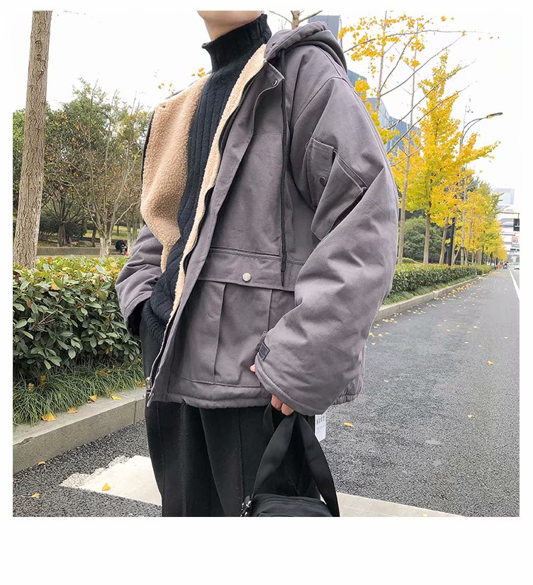 冬季羊羔毛棉衣外套男加绒连帽棉服休闲潮流加厚百搭工装上衣棉服