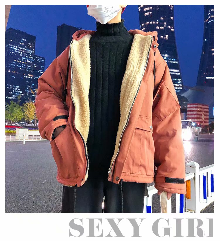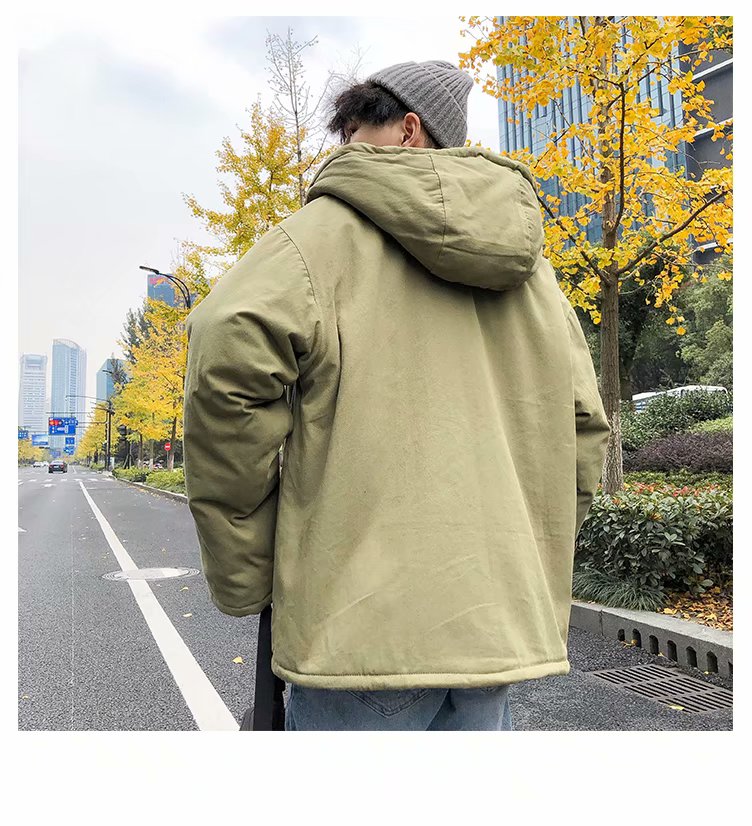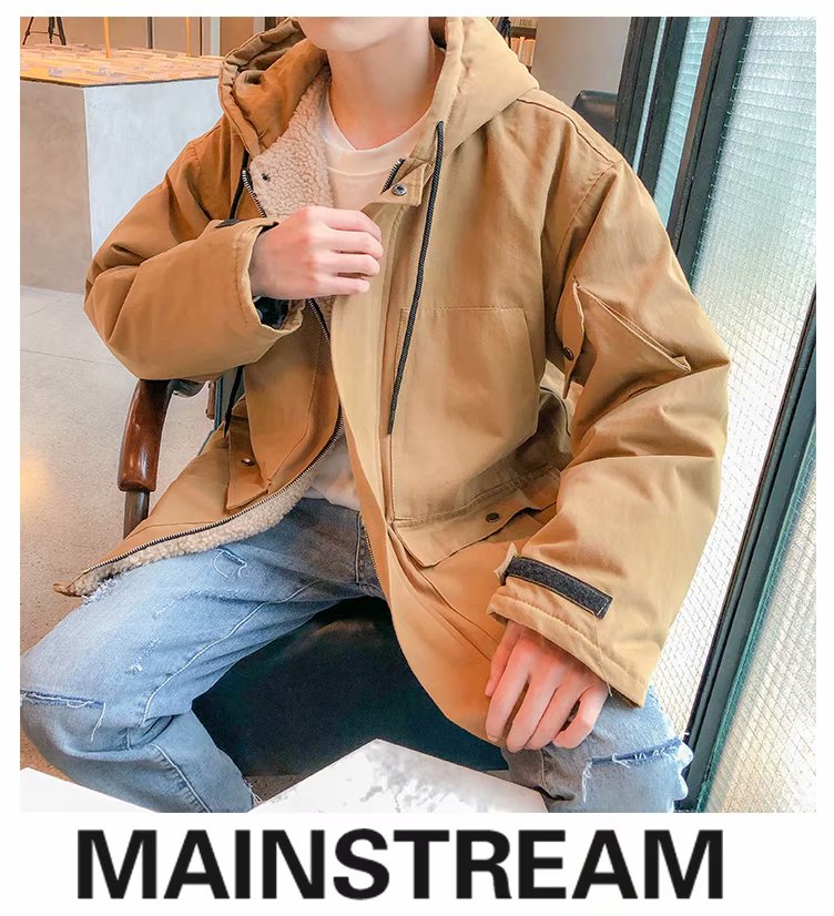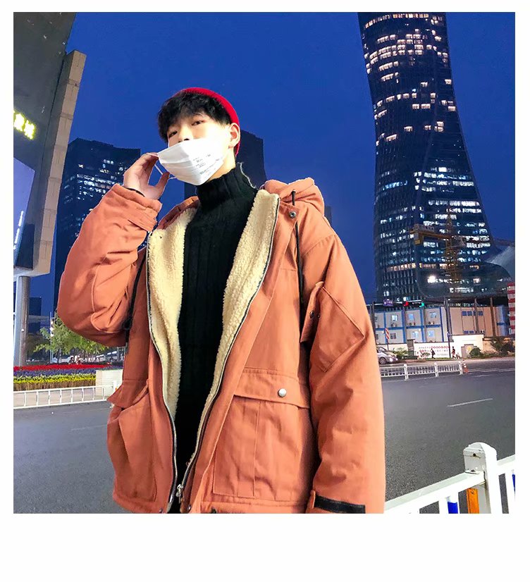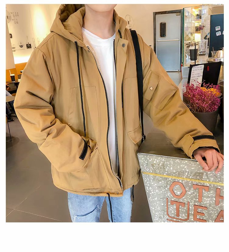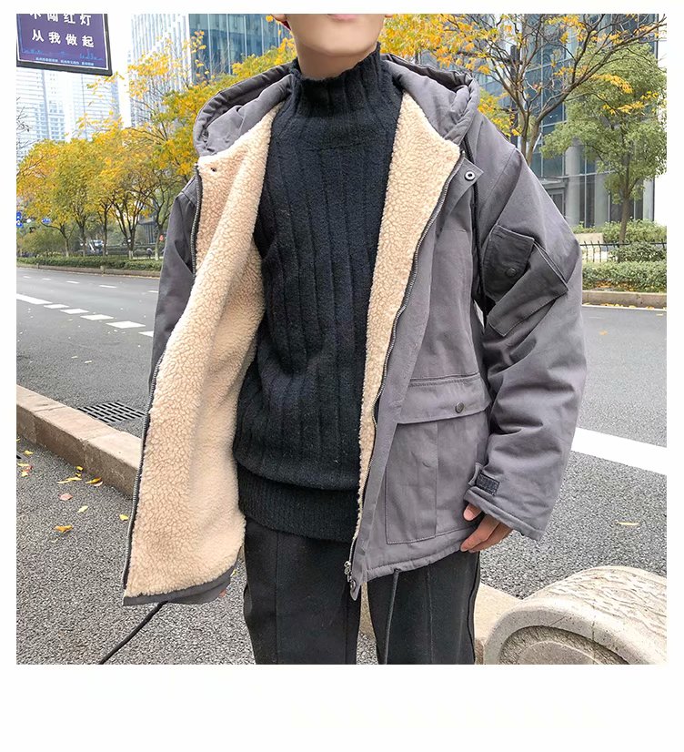 冬季羊羔毛棉衣外套男加绒连帽棉服休闲潮流加厚百搭工装上衣棉服