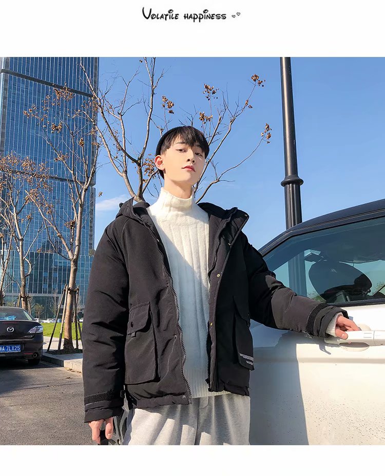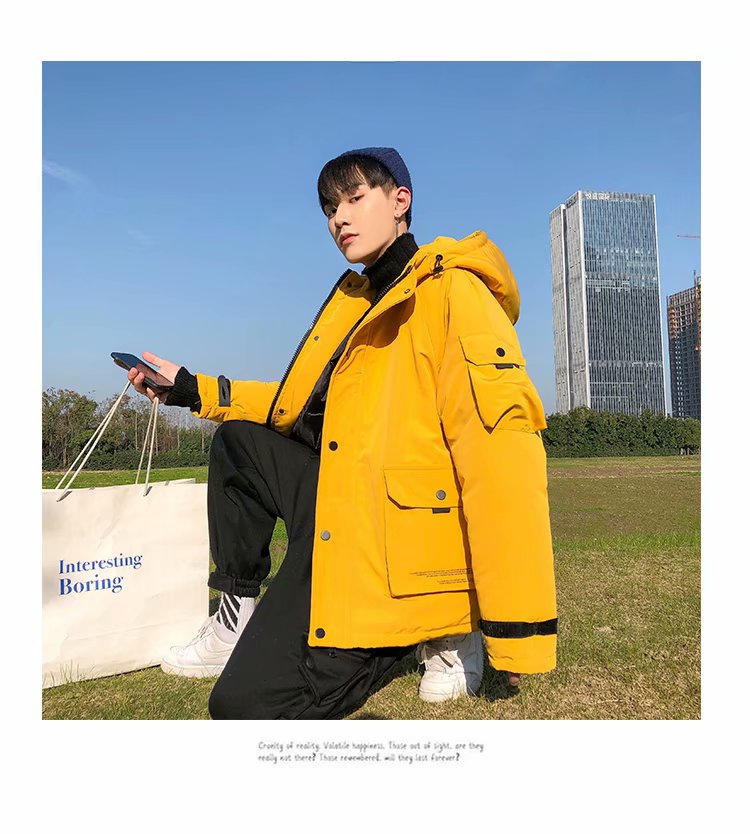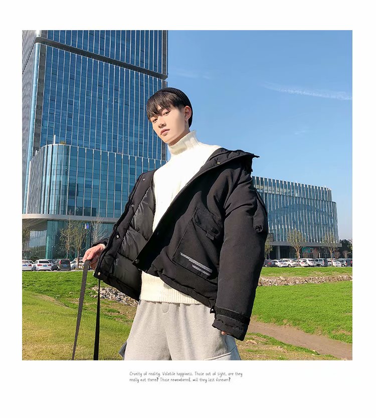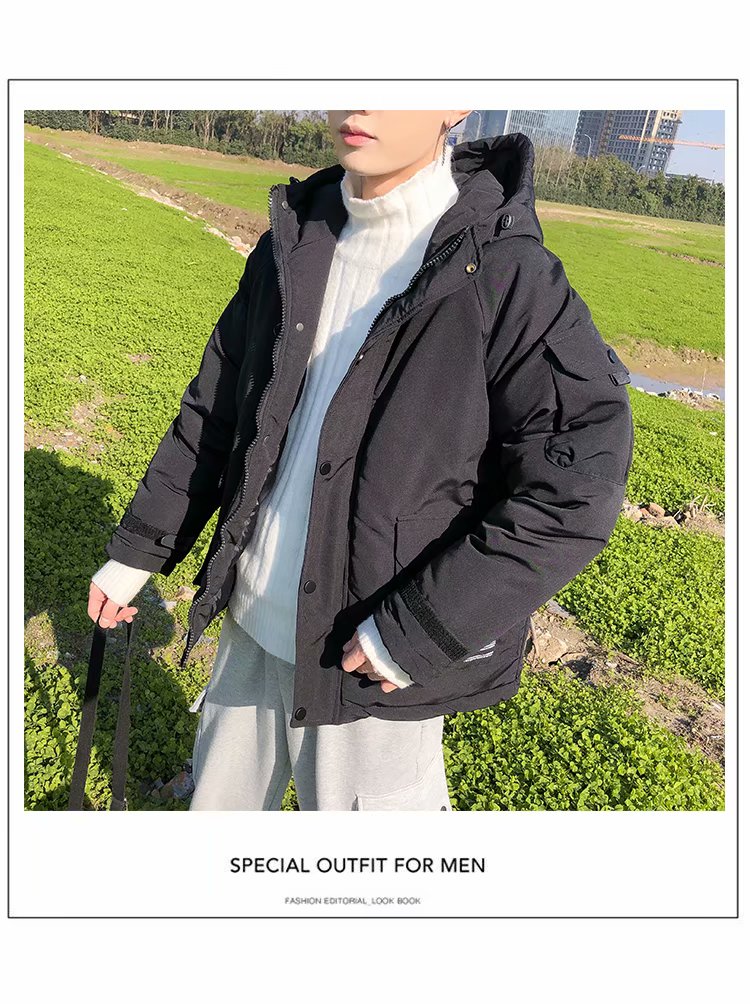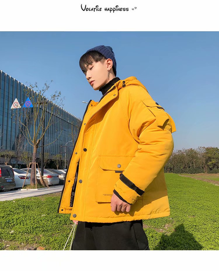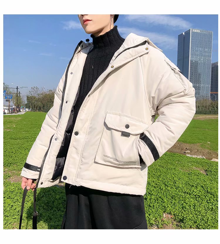 连帽棉衣男士外套冬季新款加绒加厚青年学生棉袄潮牌工装羽绒棉服