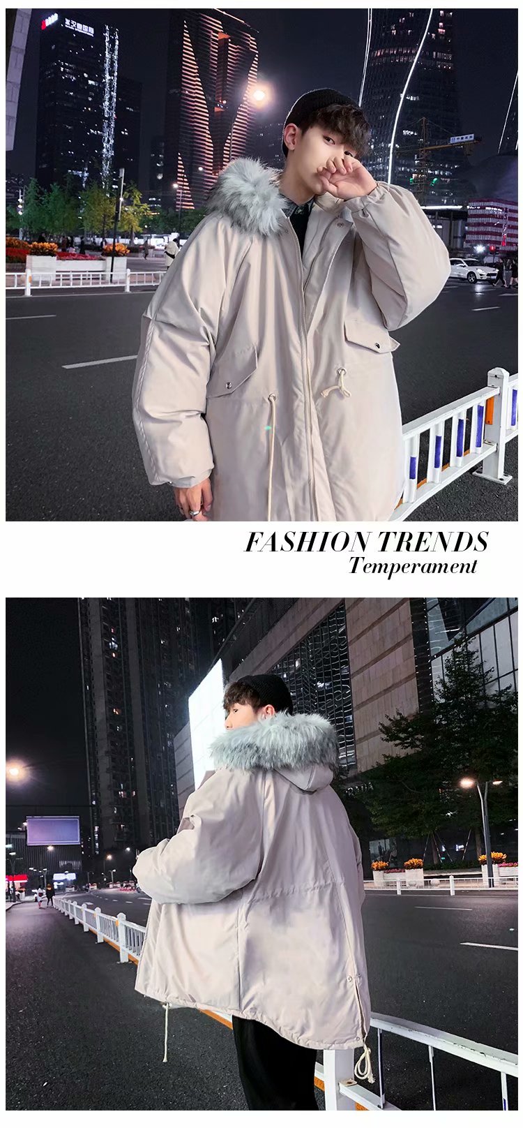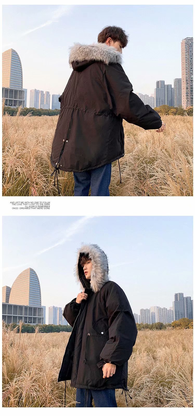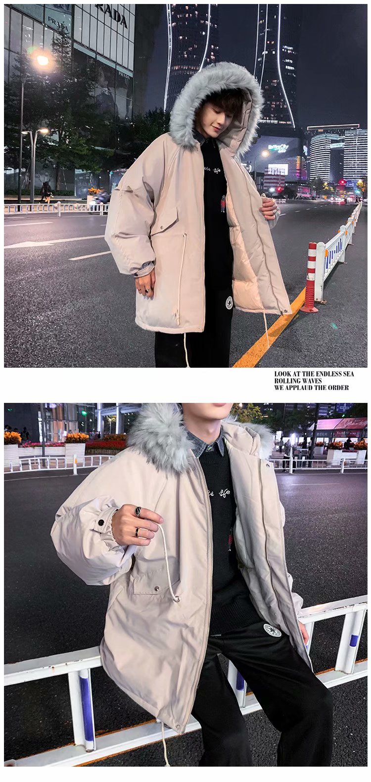 时尚毛领棉服男秋冬新款韩版学生宽松棉袄加绒加厚中长款棉衣外套