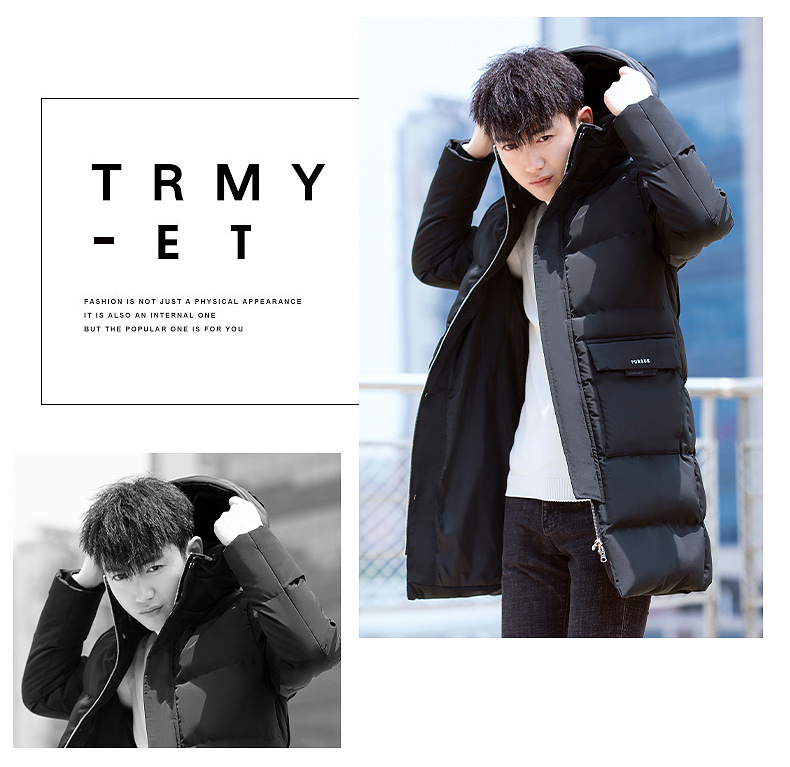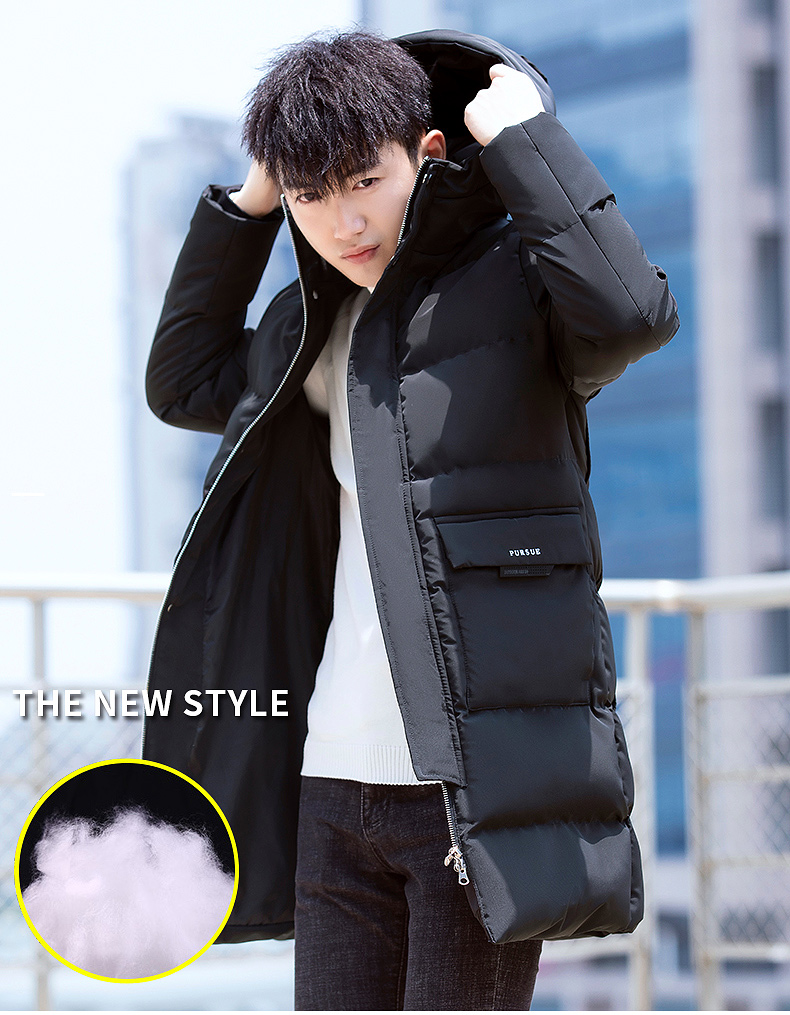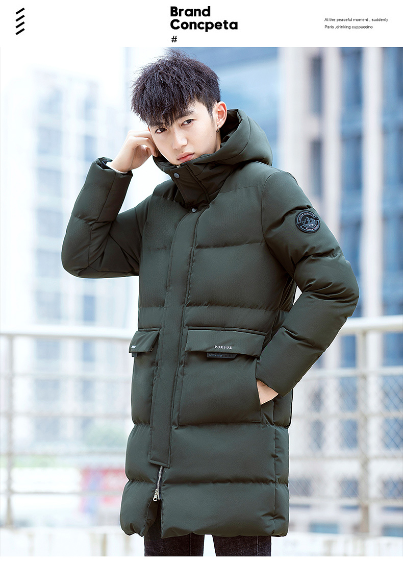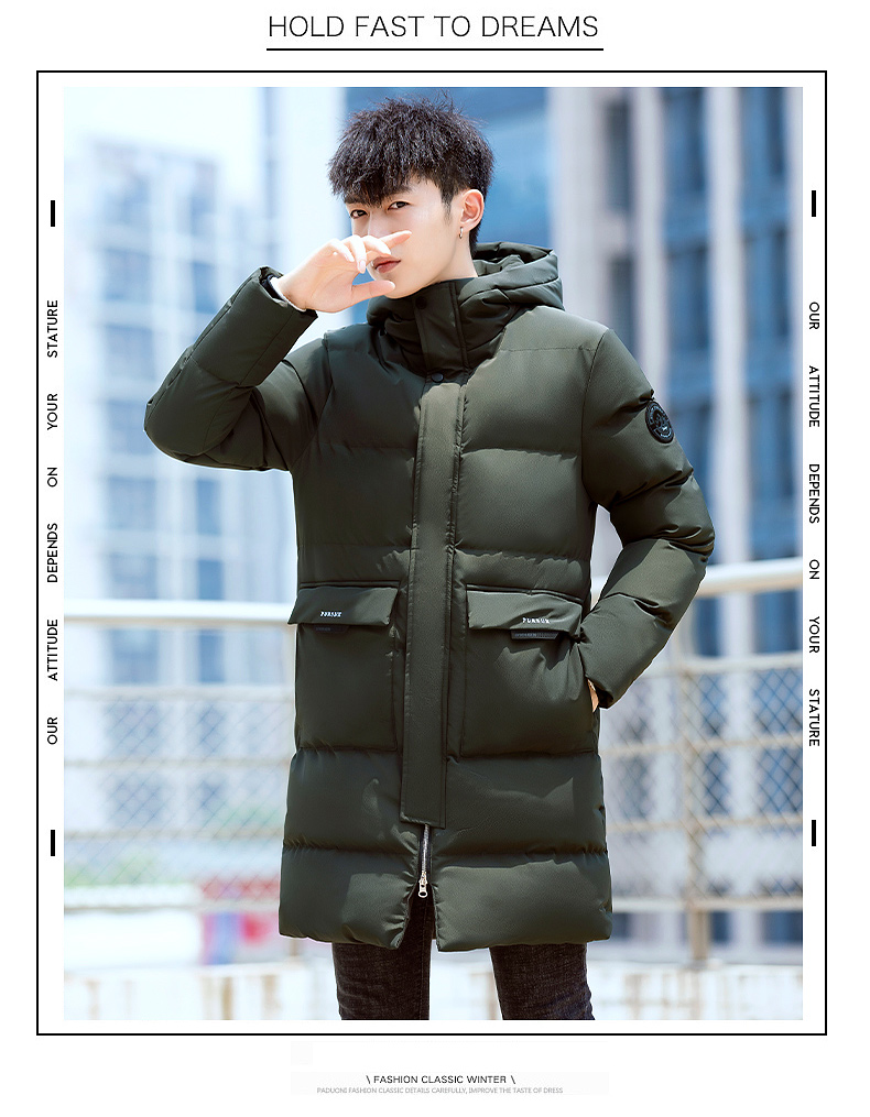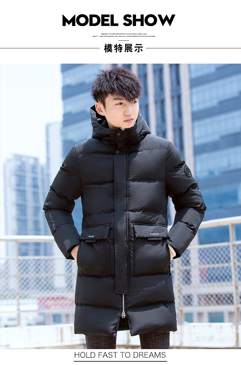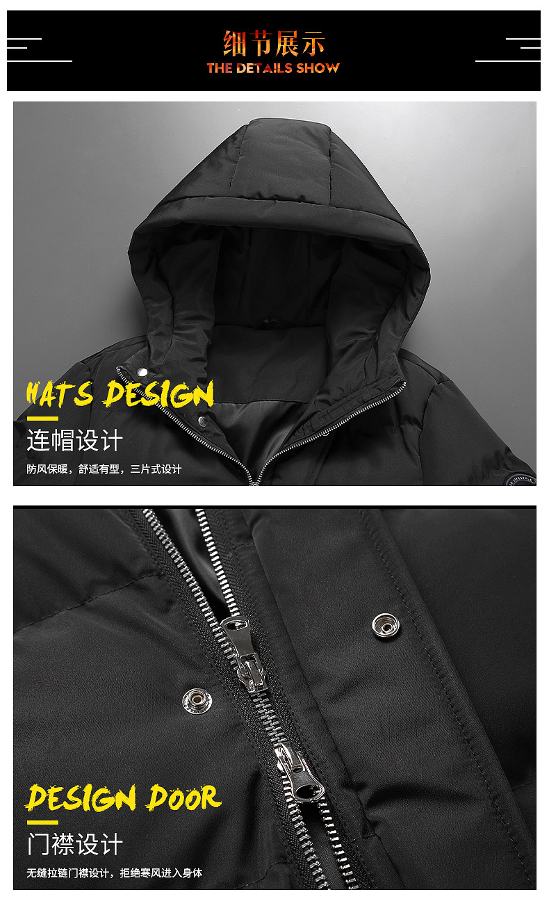 新款秋冬男装时尚休闲时尚防寒保暖宽松连帽棉衣中长款外套