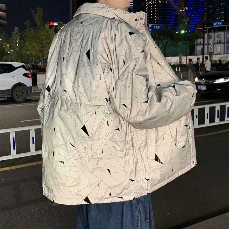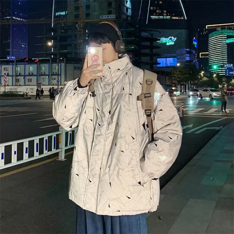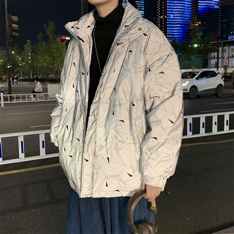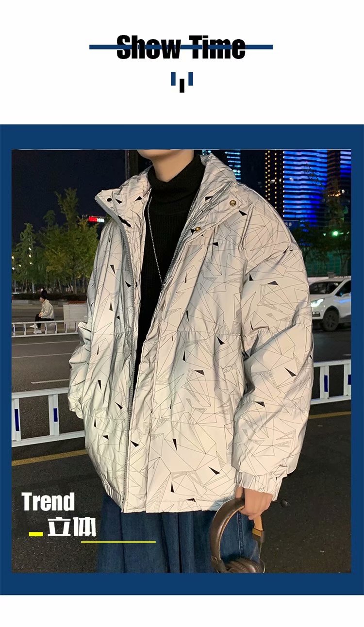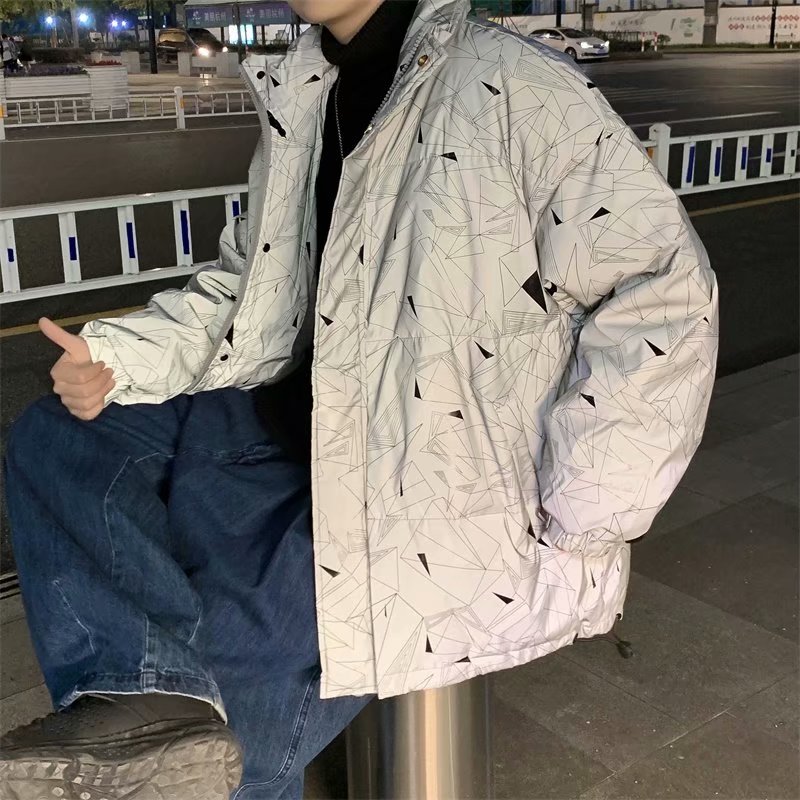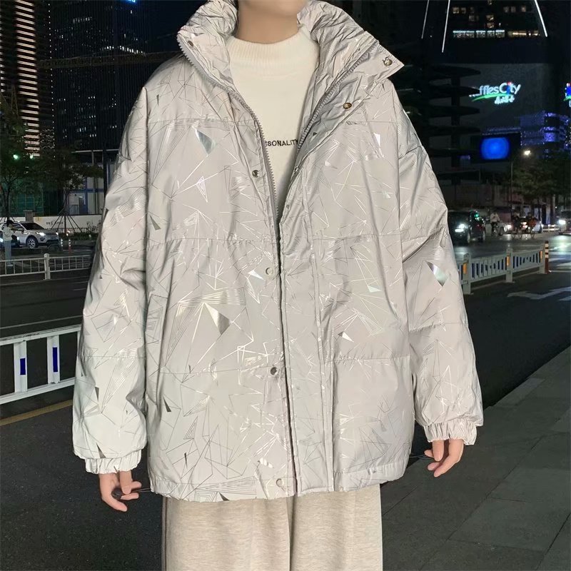 实拍立领时尚宽松青年慵懒潮流气质帅气棉衣潮牌港风新款流行外套