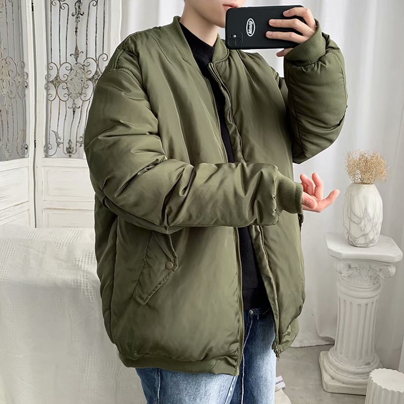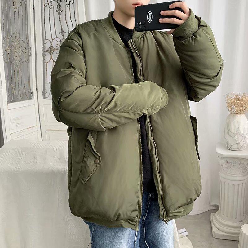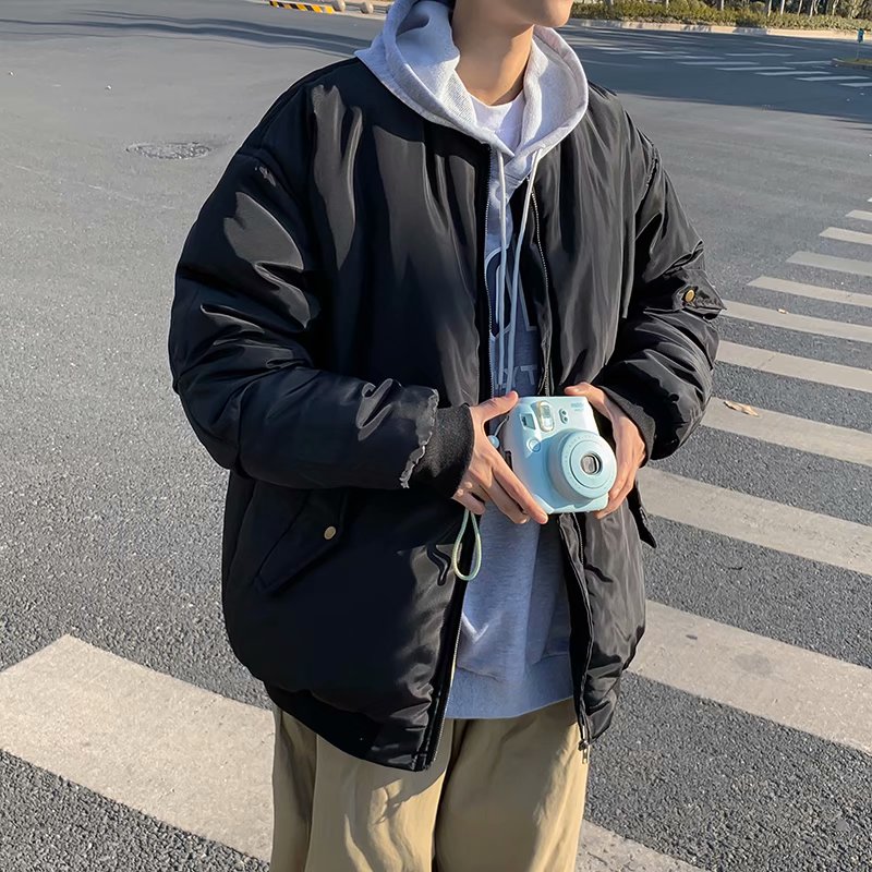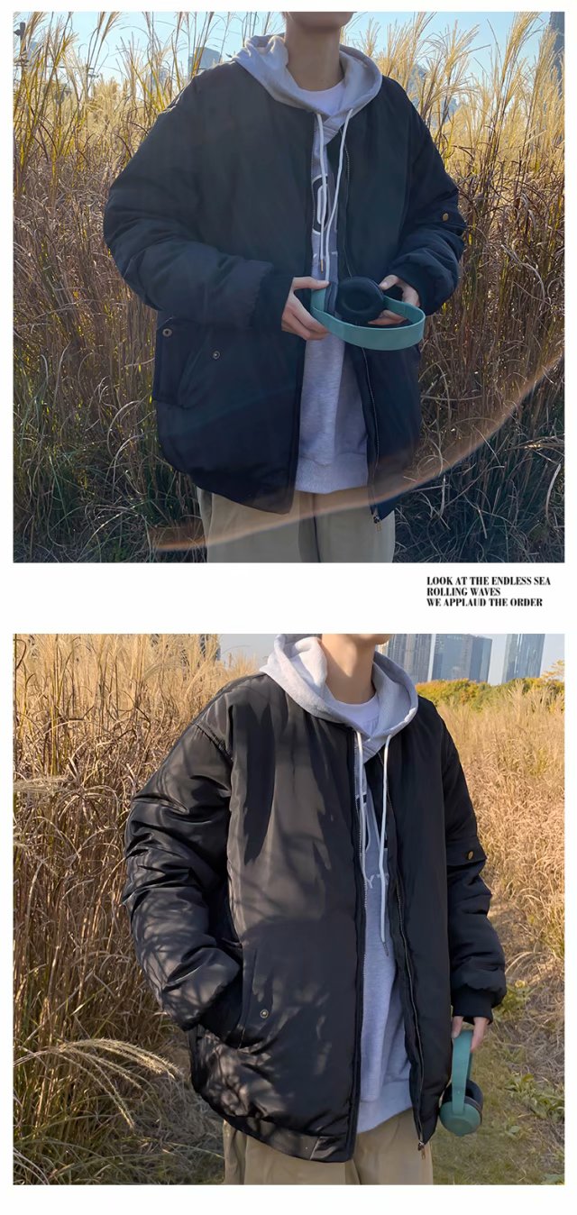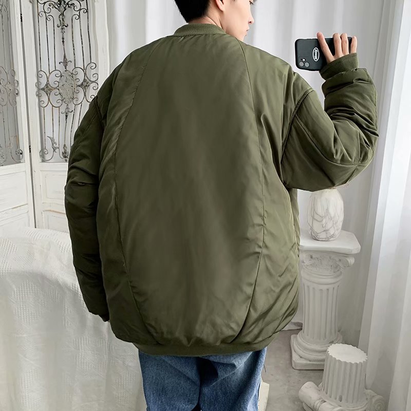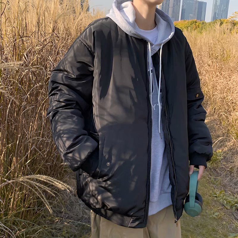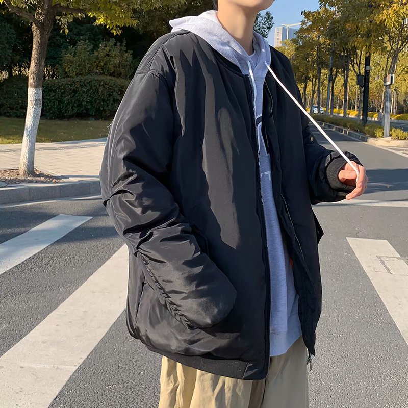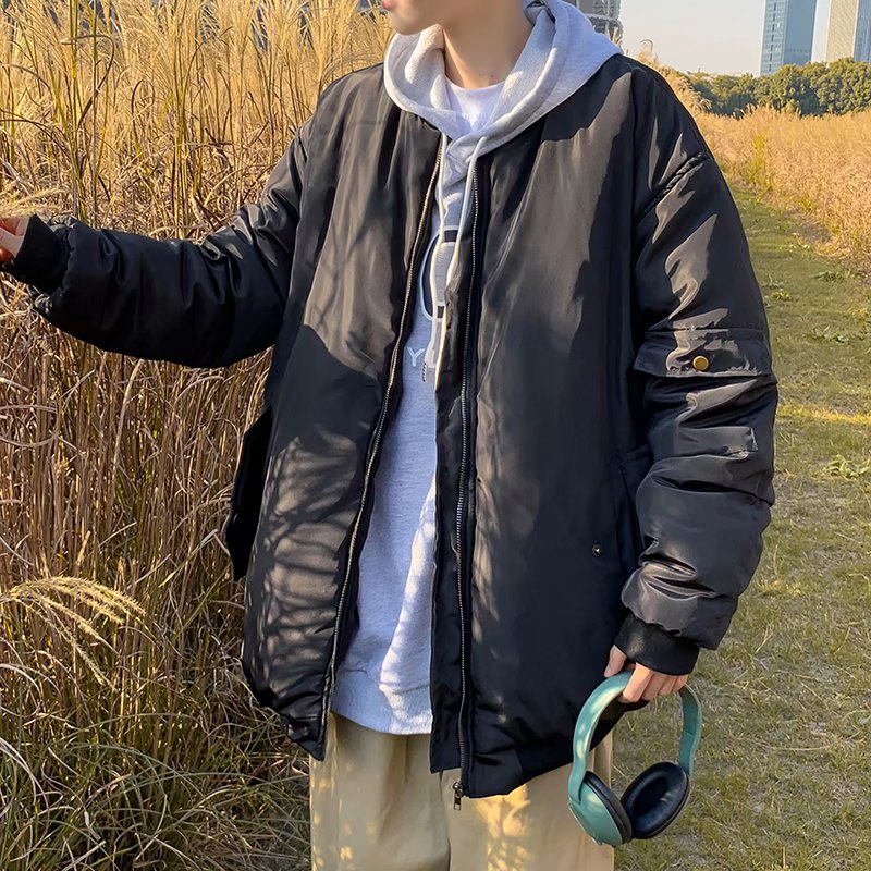实拍潮牌青年棉衣修身韩版无领休闲常规款帅气慵懒流行时尚新款男
