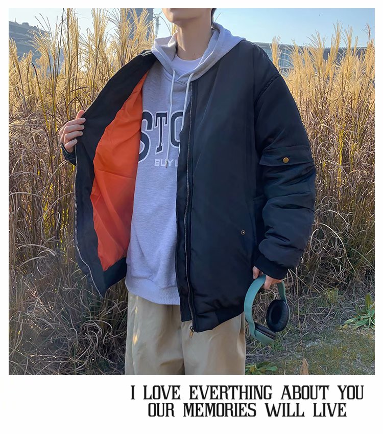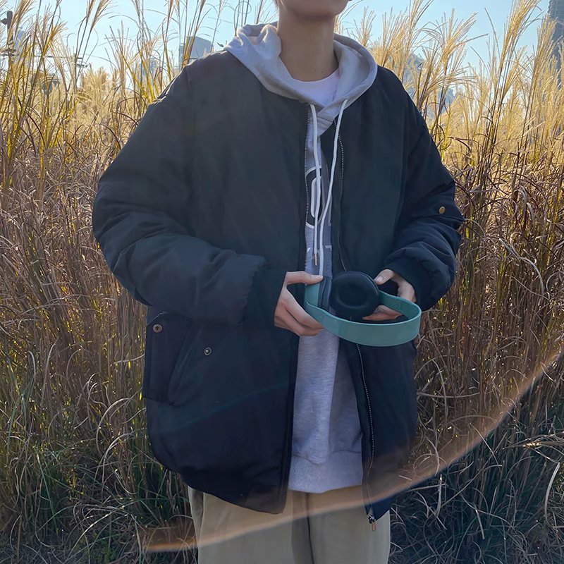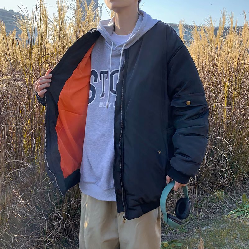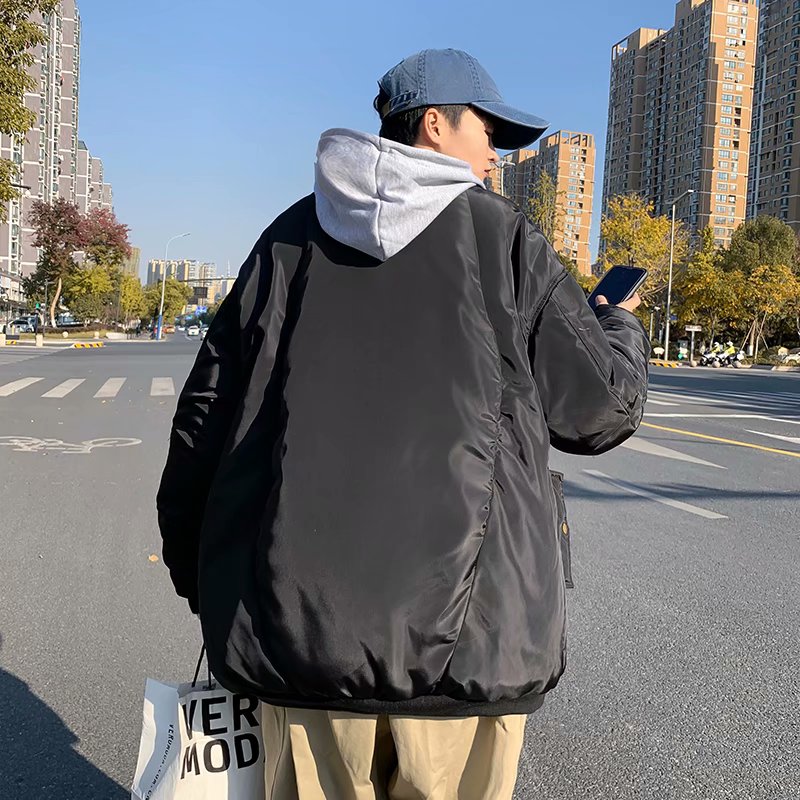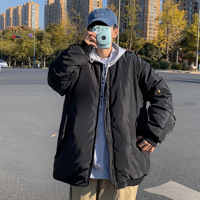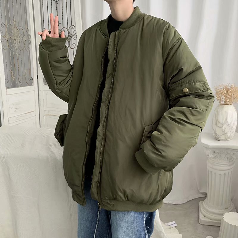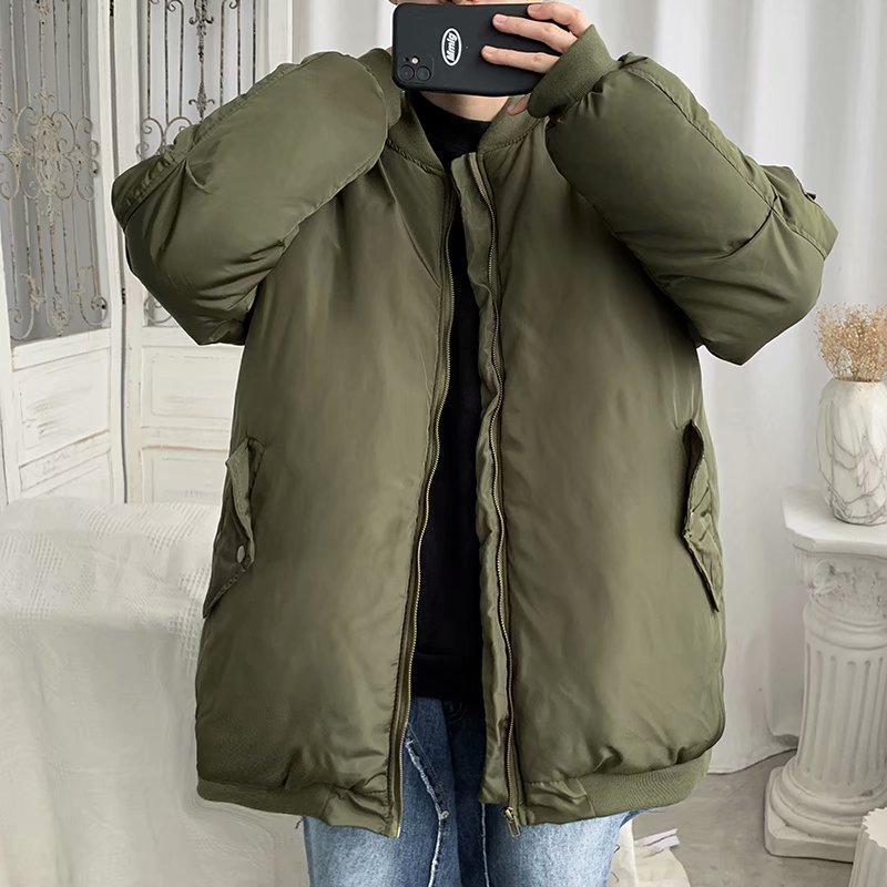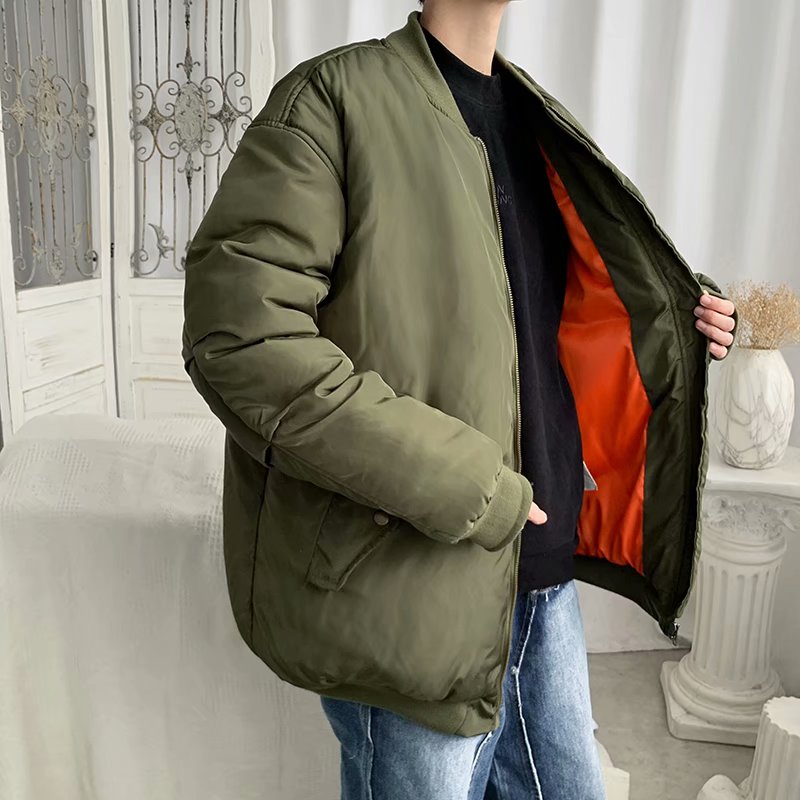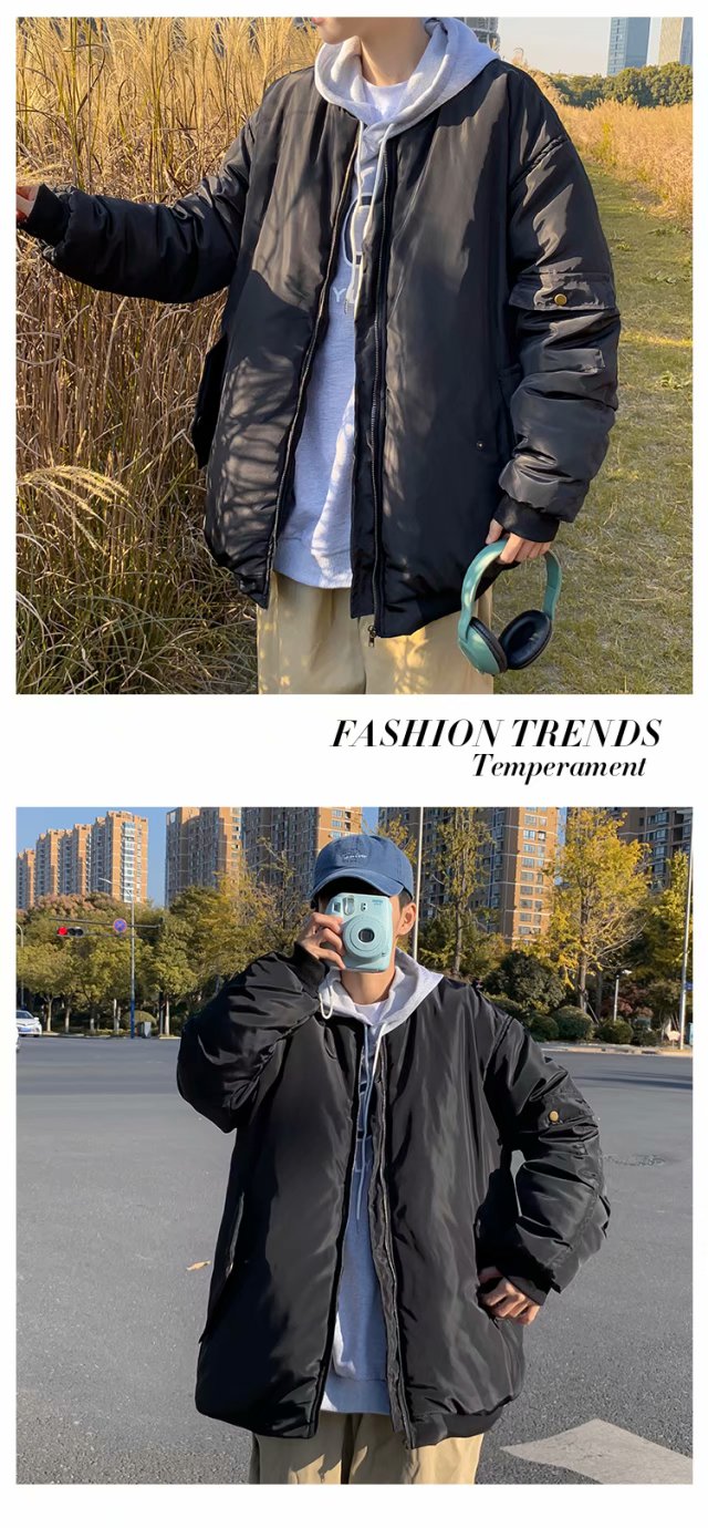 实拍潮牌青年棉衣修身韩版无领休闲常规款帅气慵懒流行时尚新款男