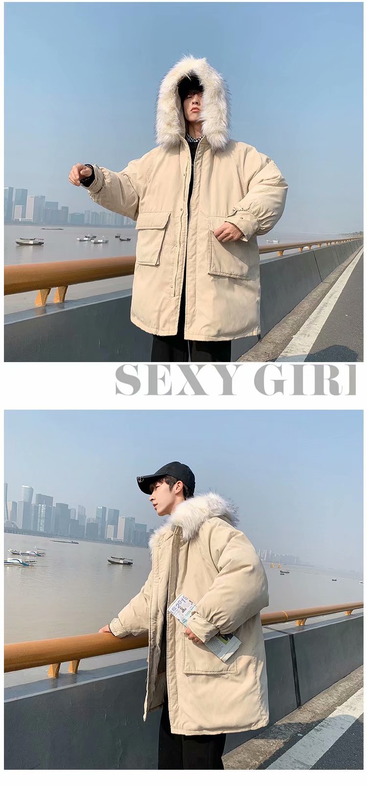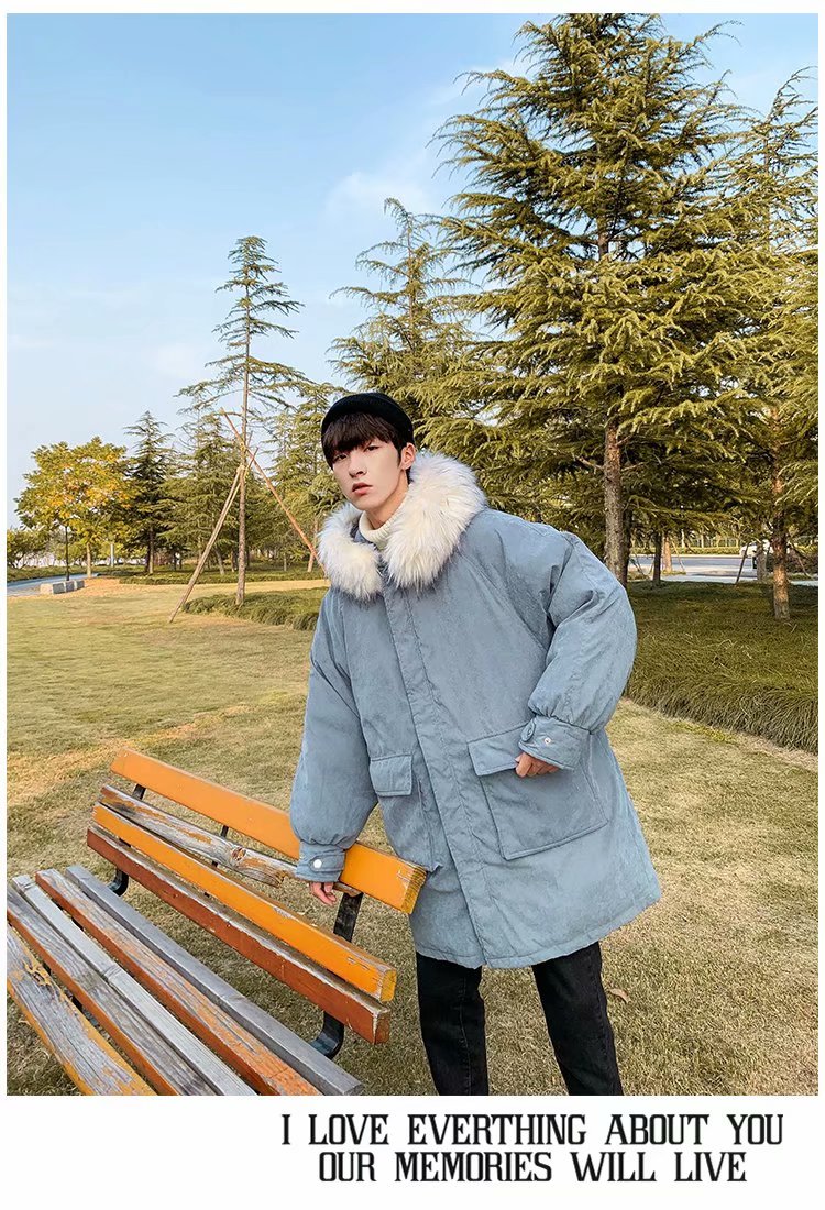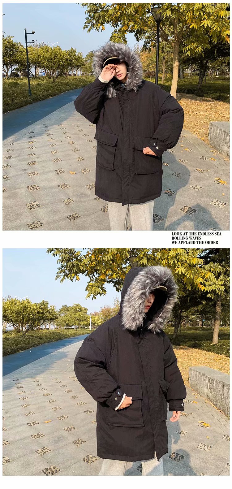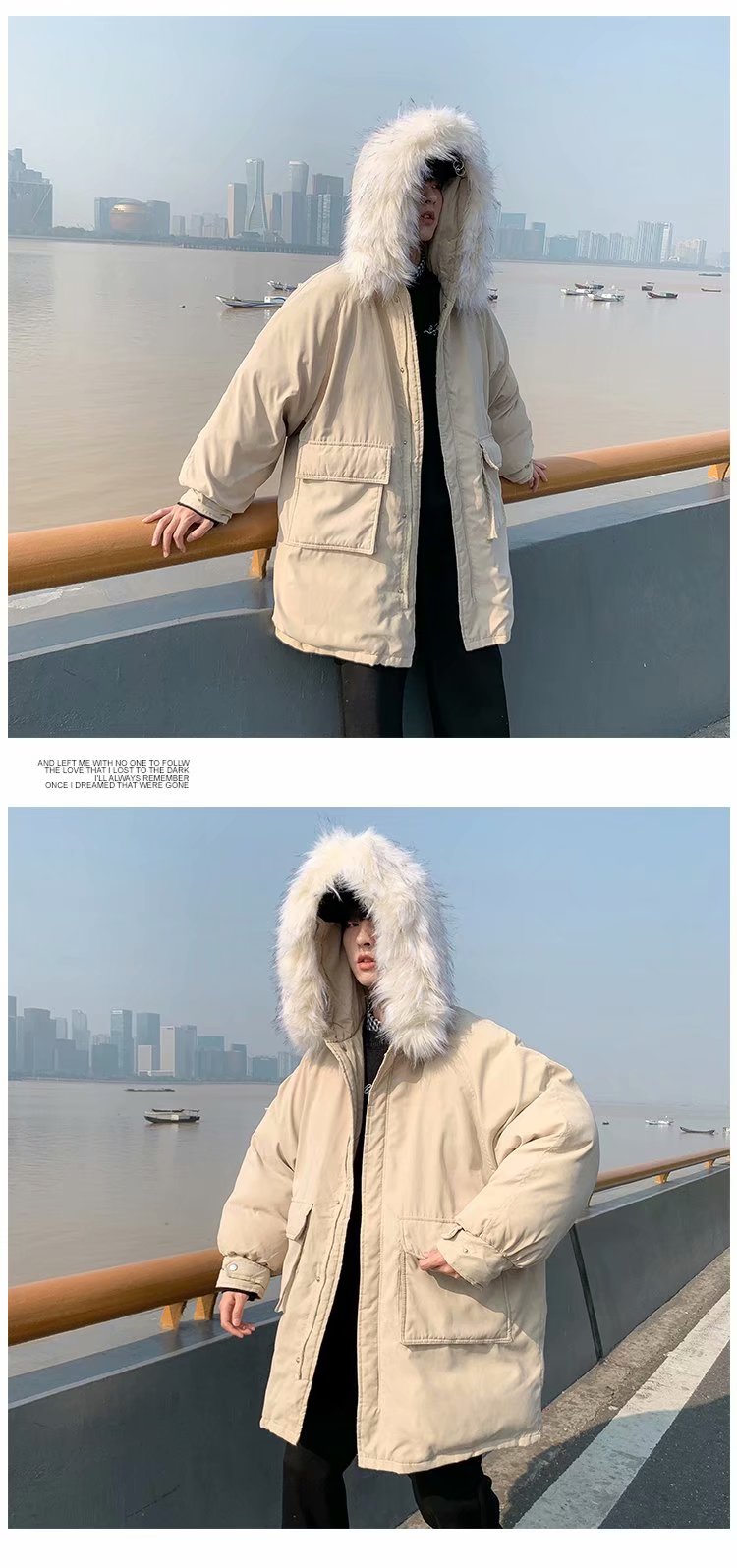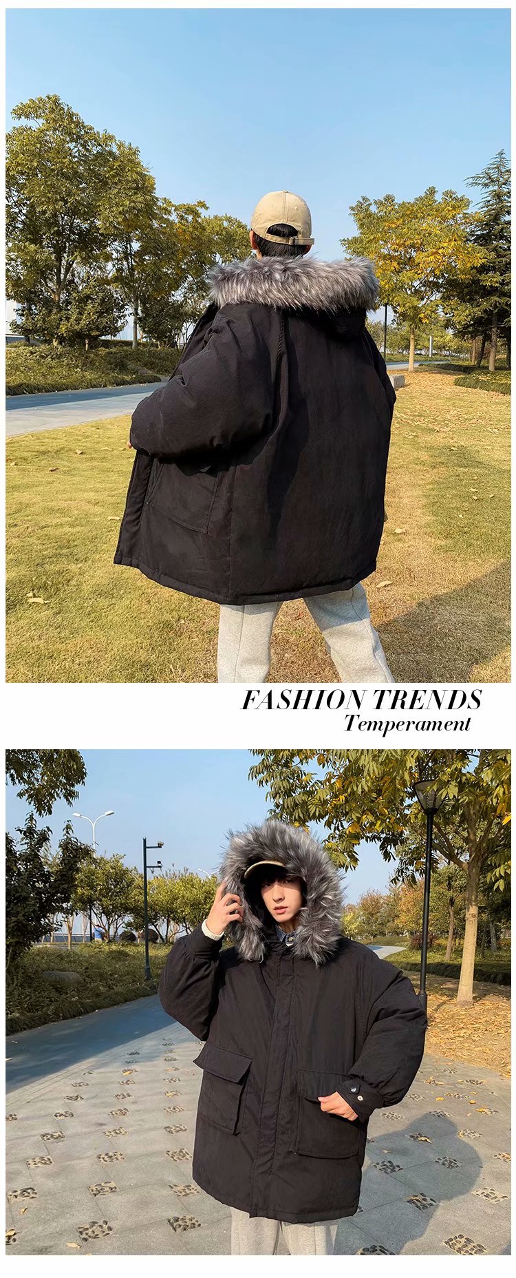 时尚毛领棉服男秋冬新款韩版学生宽松棉袄加绒加厚中长款棉衣外套
