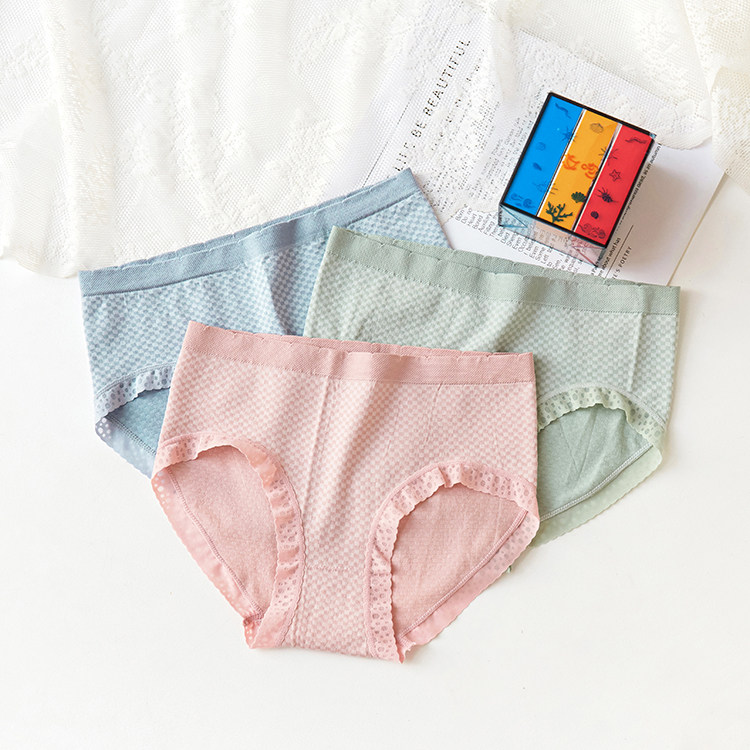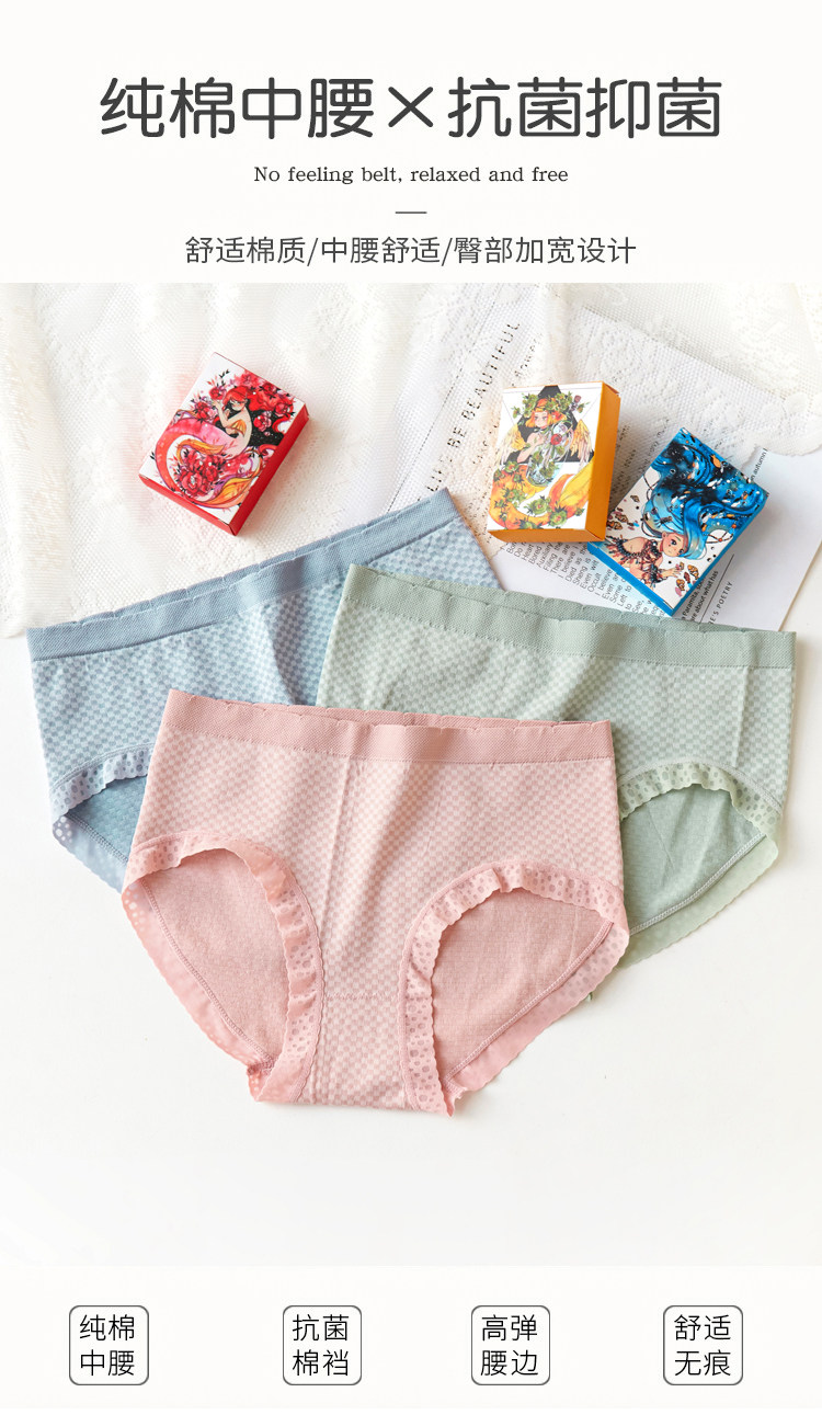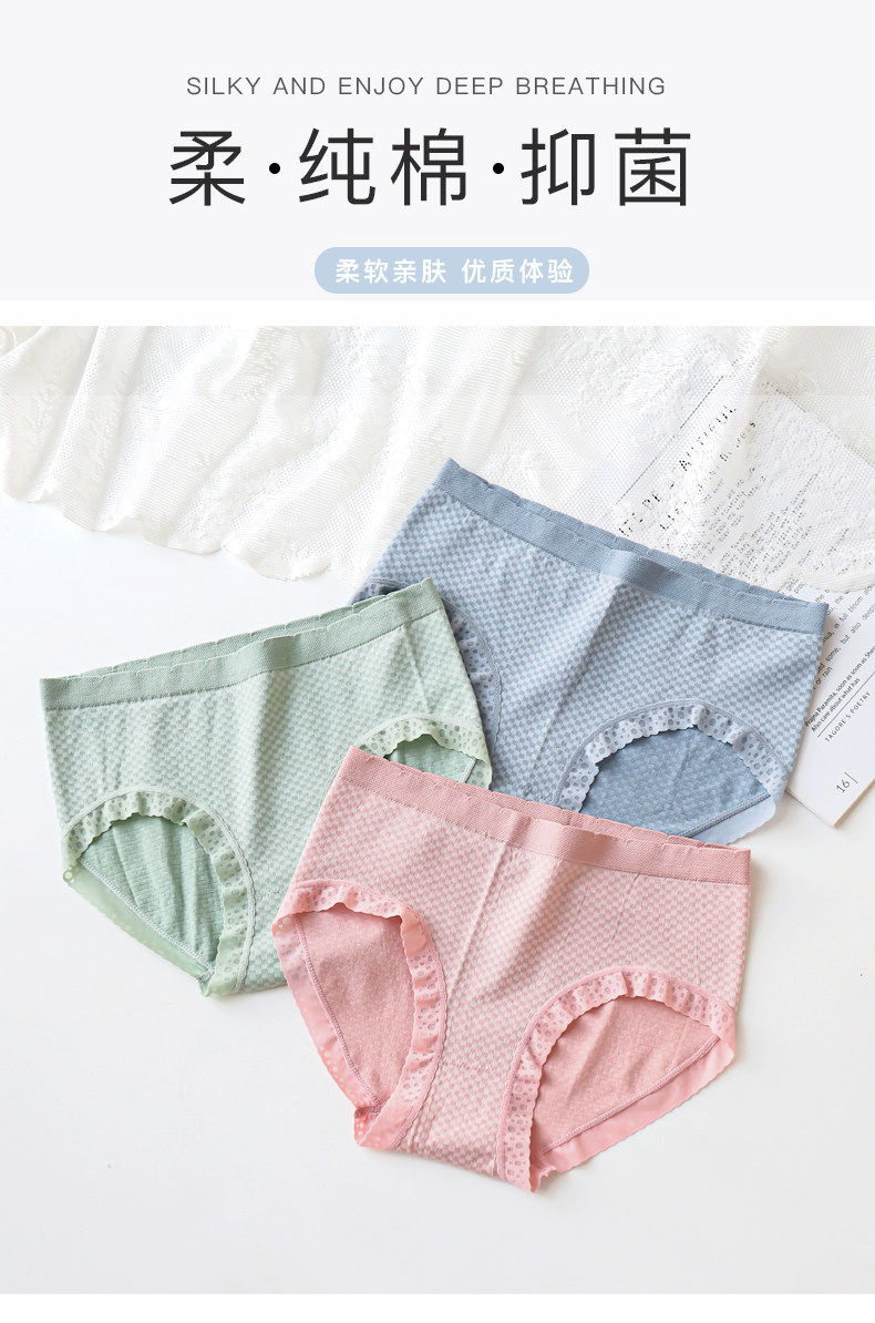 3条装 女士内裤抗菌纯棉裆少女性感无痕日系中腰透气三角短裤头