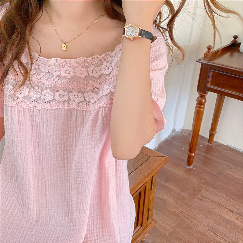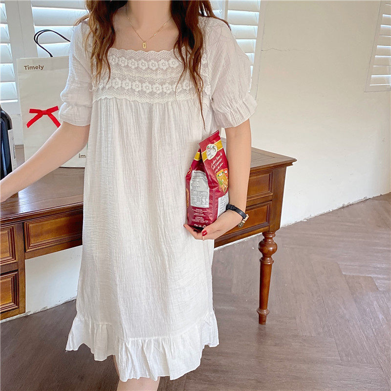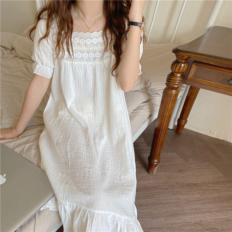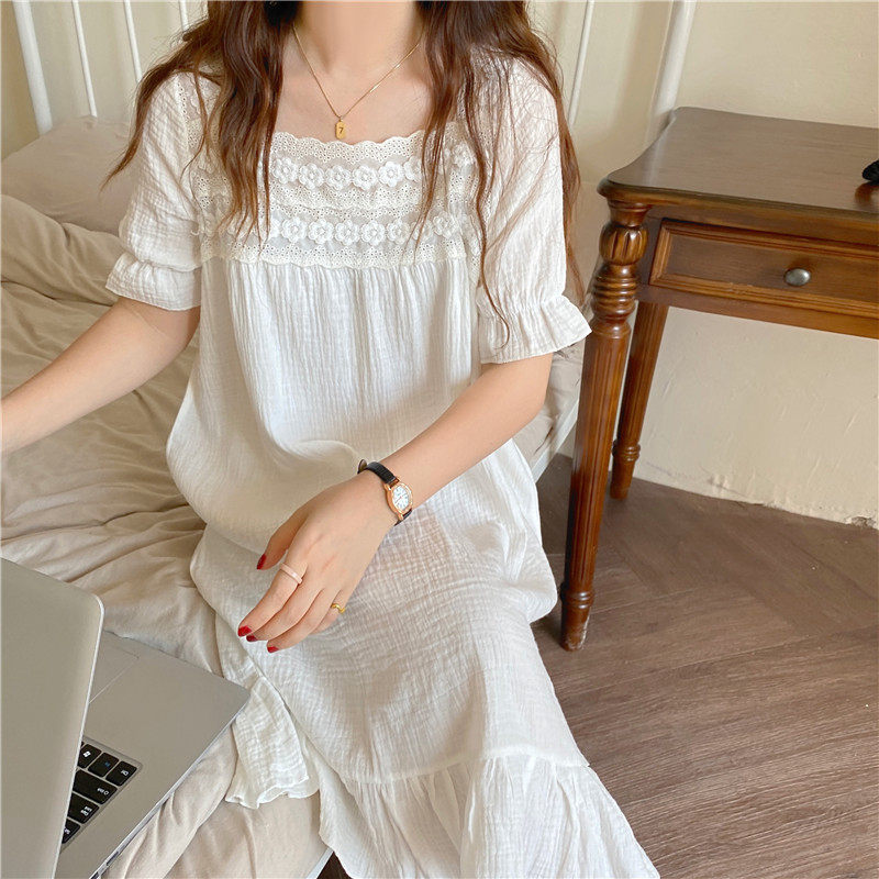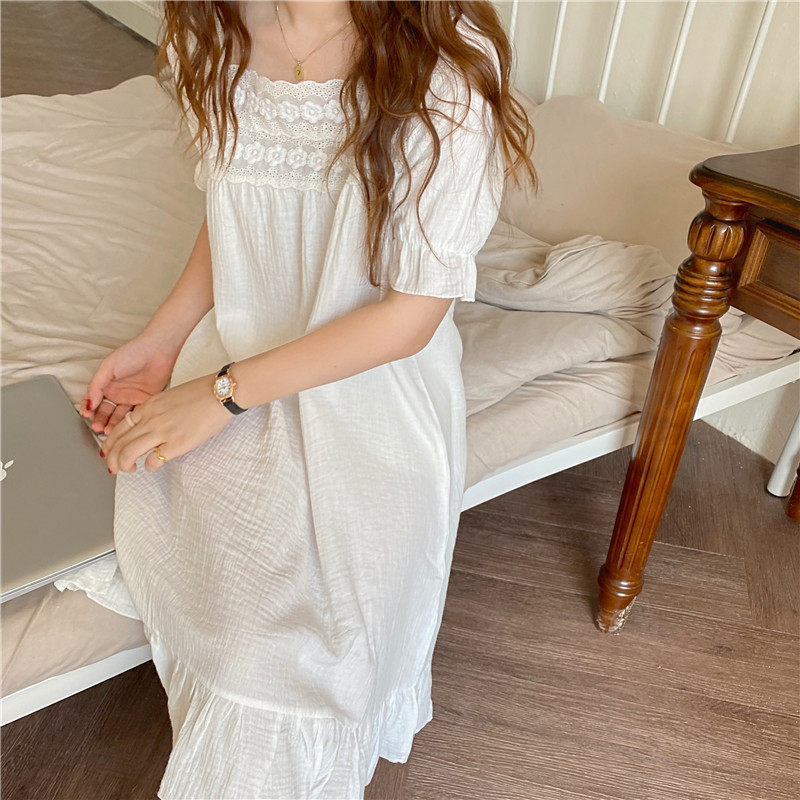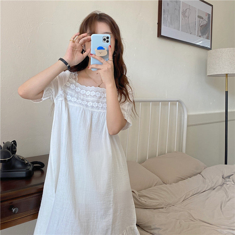 实拍睡裙短袖夏季全棉薄款甜美花边公主风可爱宫廷风睡衣