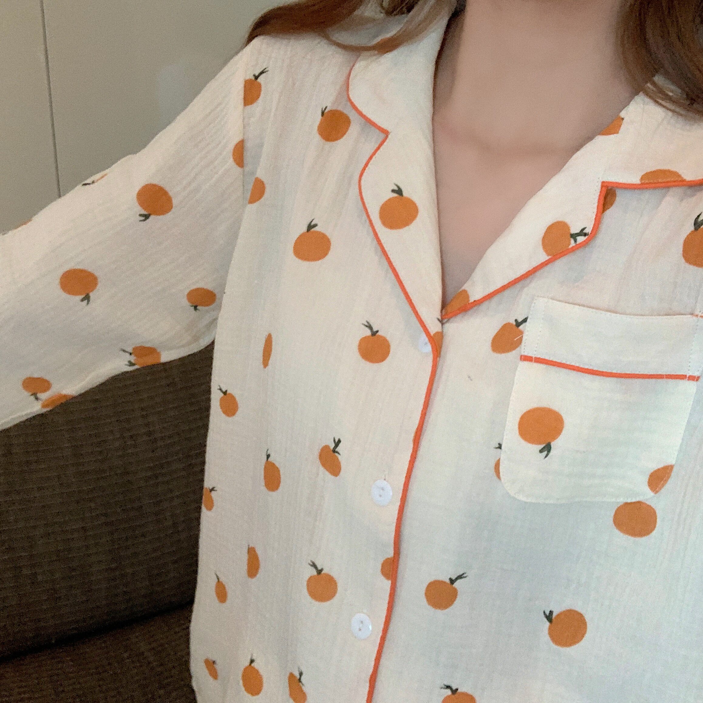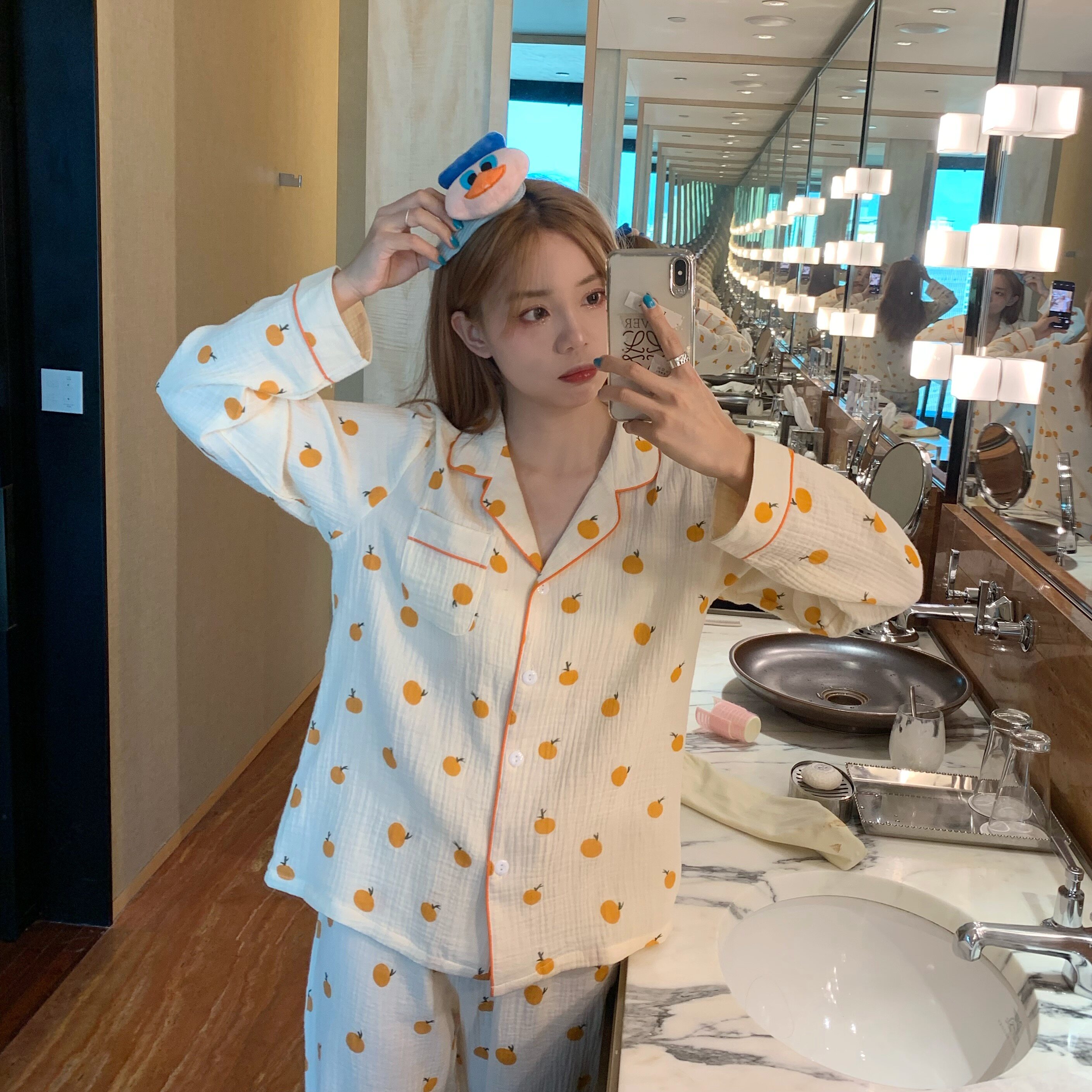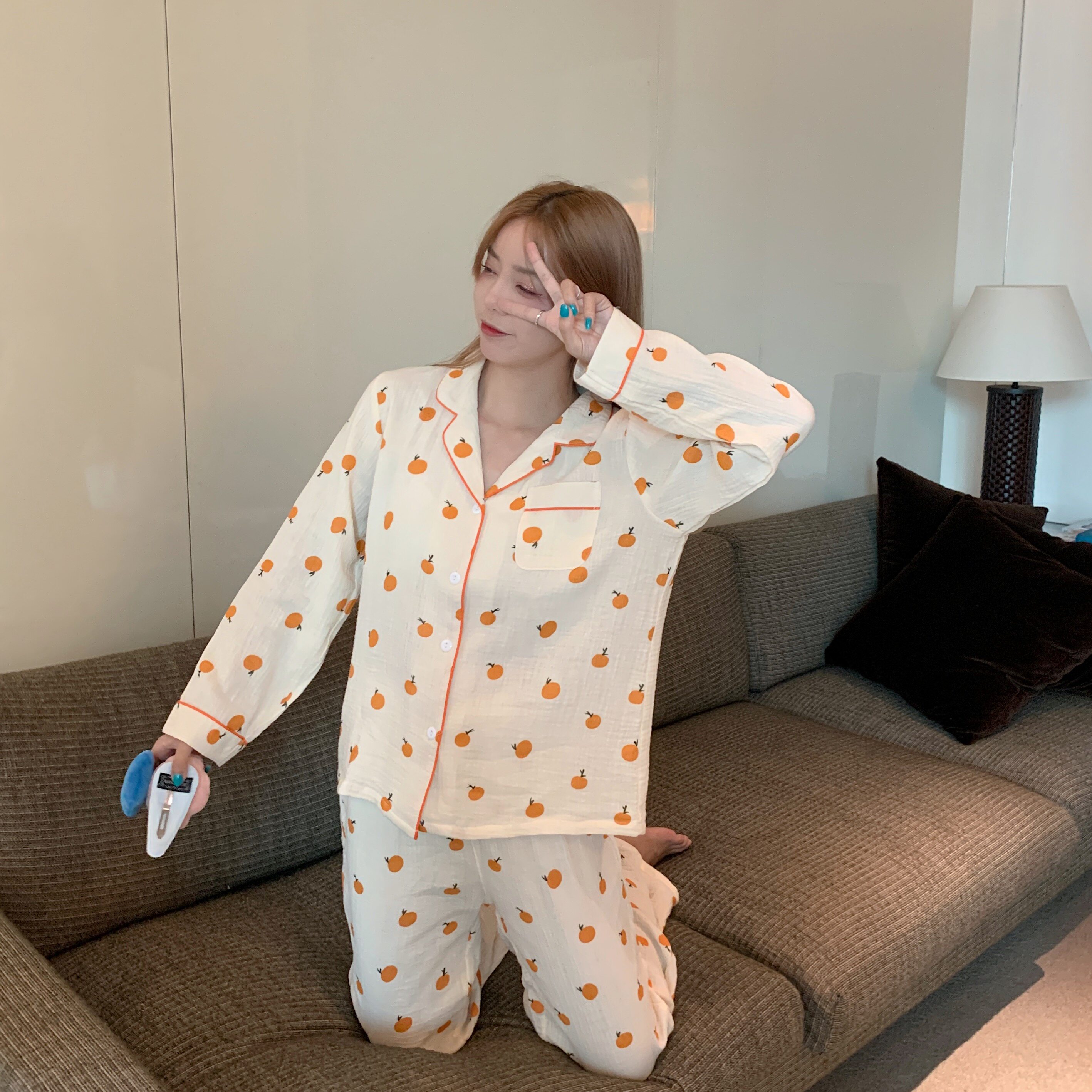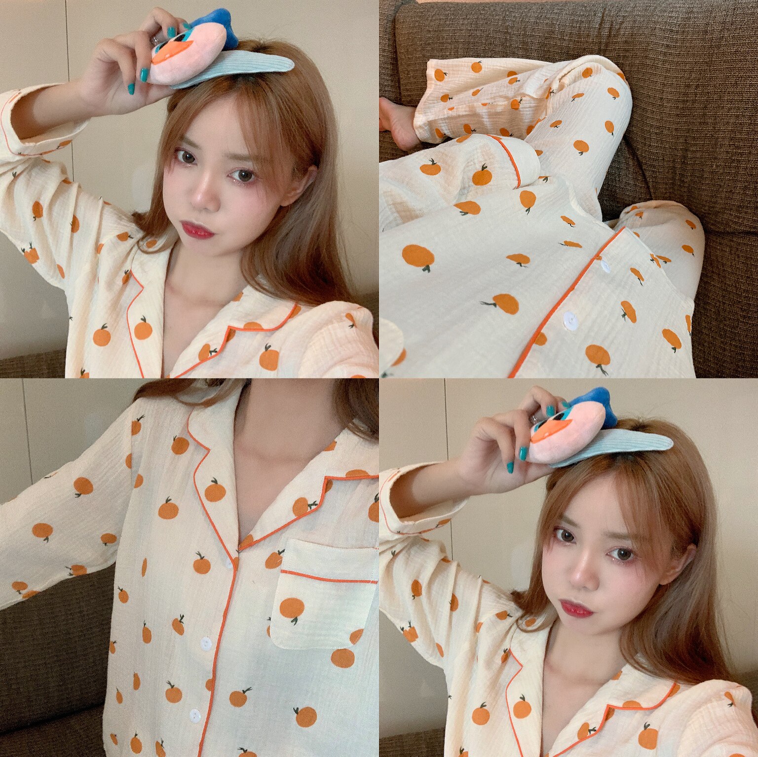 实拍控3 甜美水果泡泡印花秋睡衣家居服套装