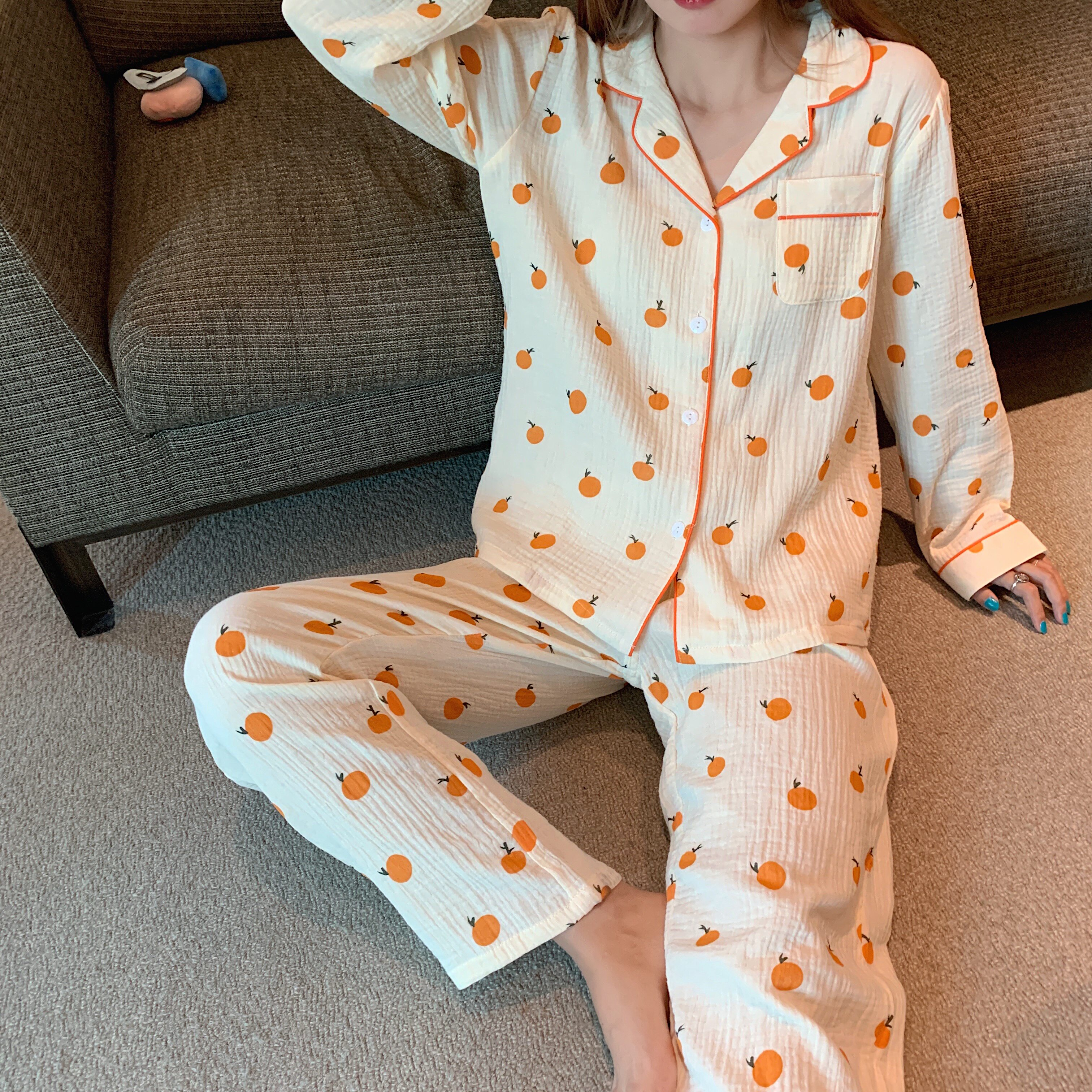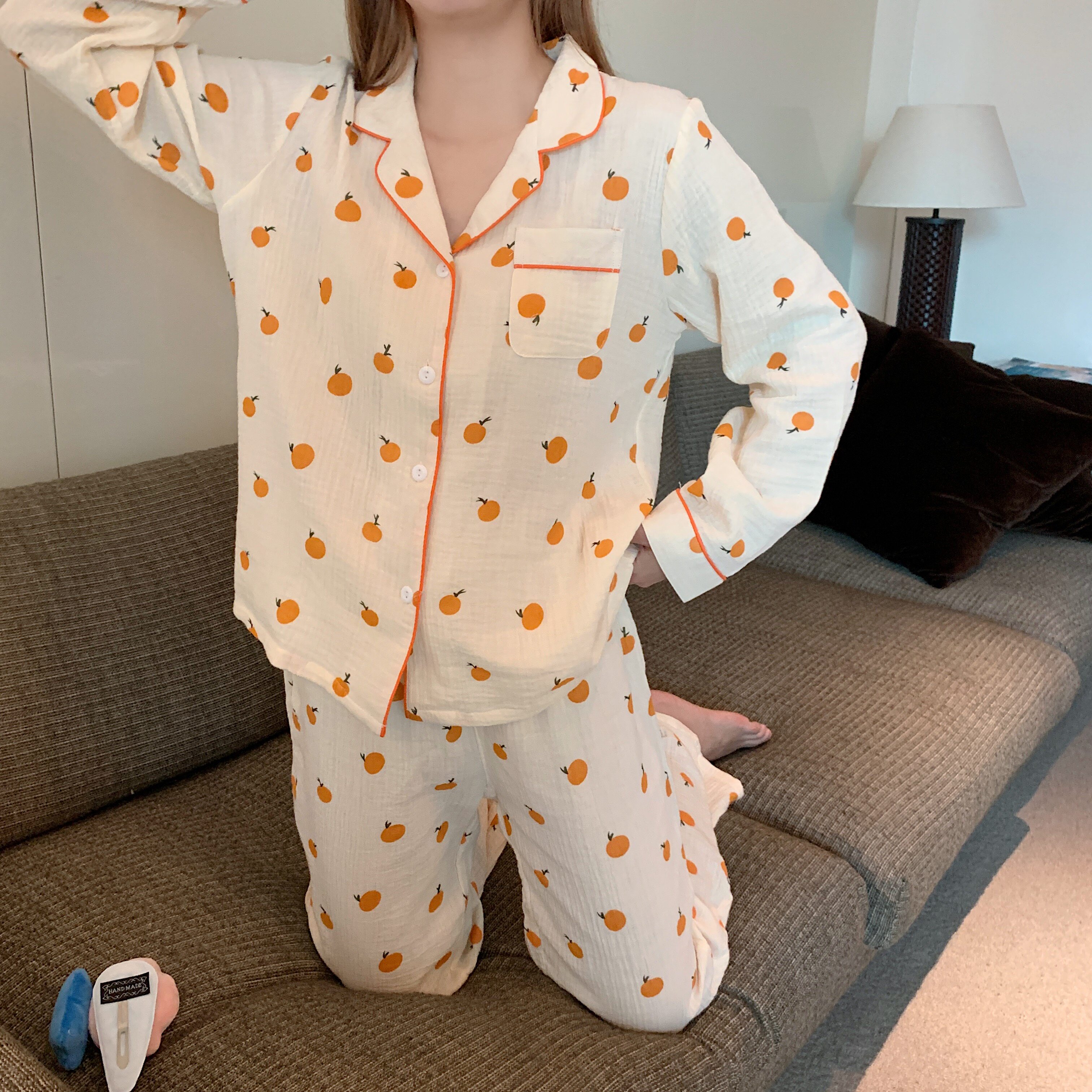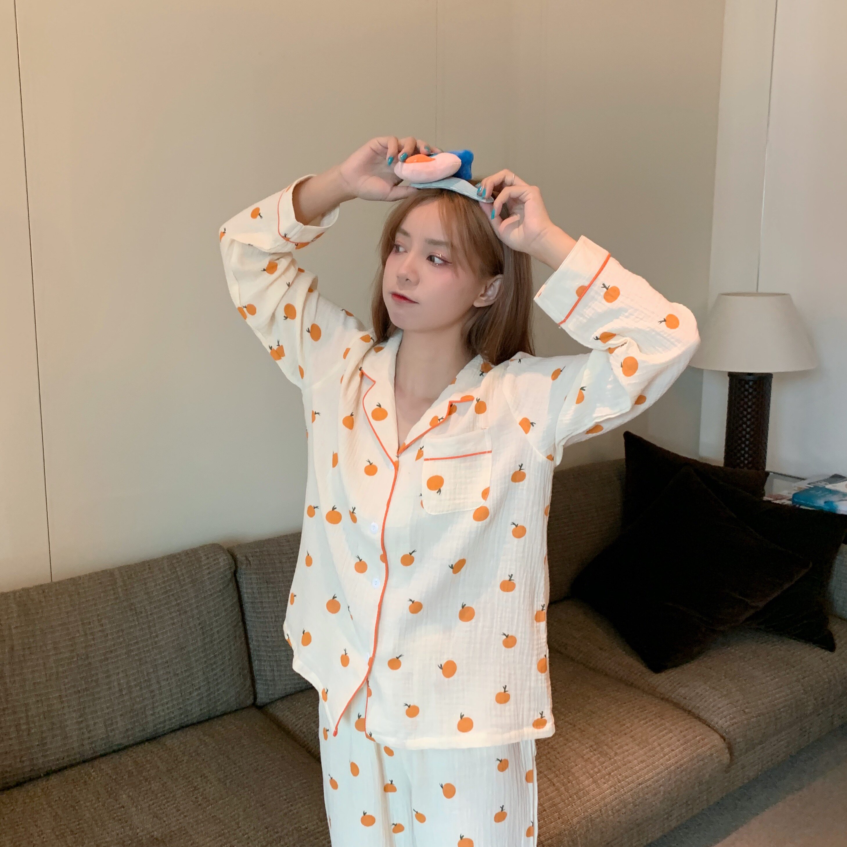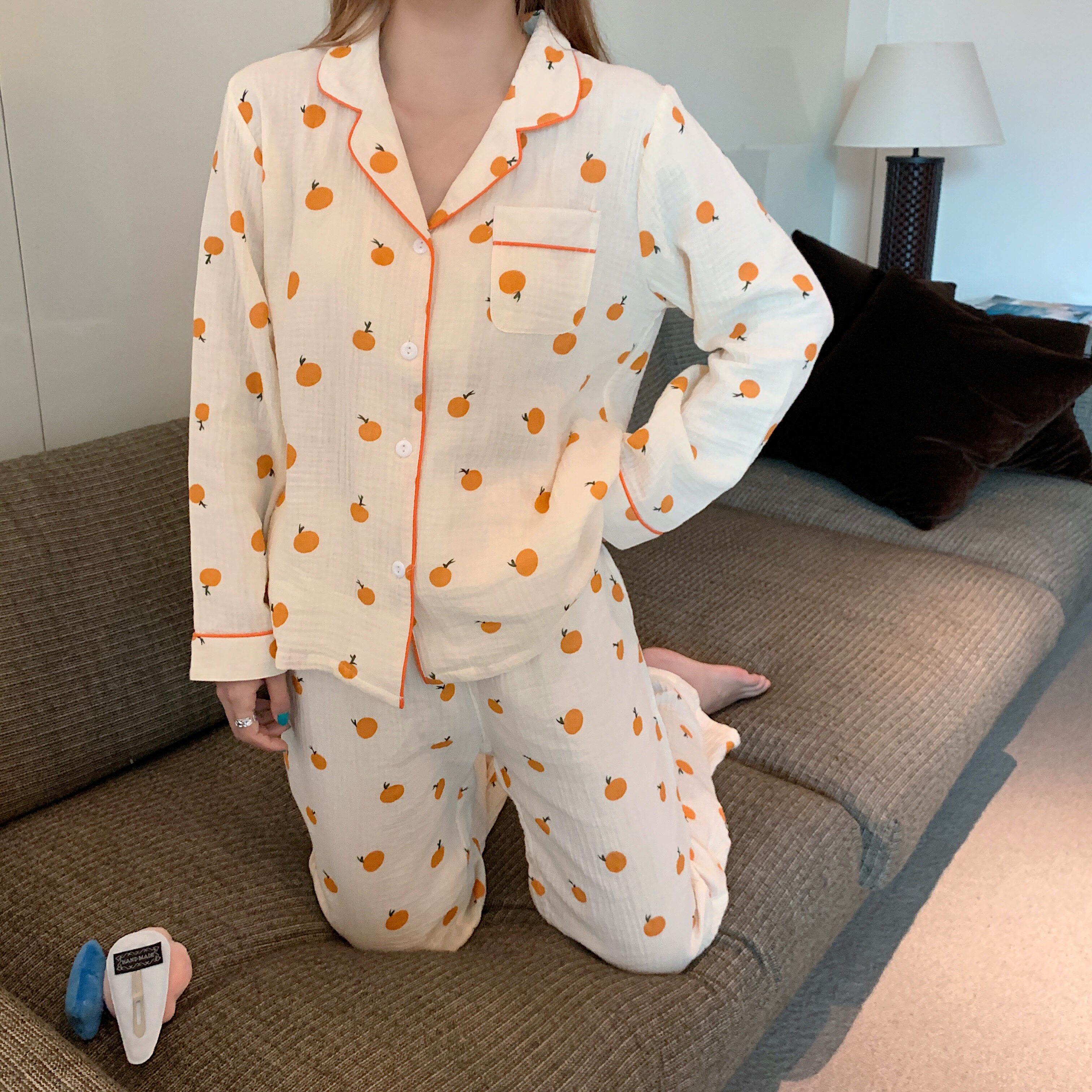 实拍控3 甜美水果泡泡印花秋睡衣家居服套装