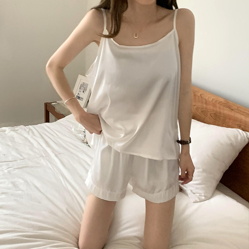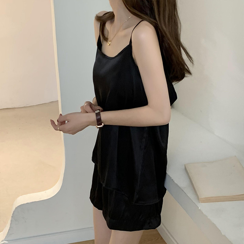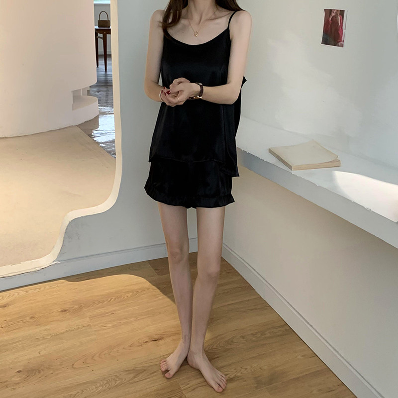 实拍实价2021夏季性感真丝吊带短裤两件套家居休闲慵懒睡衣