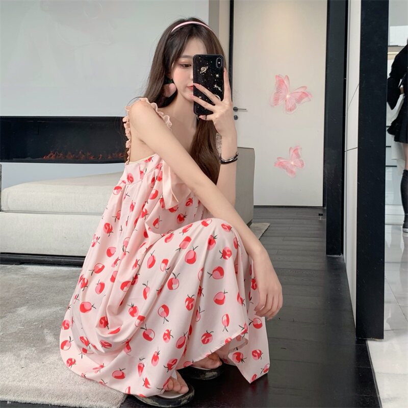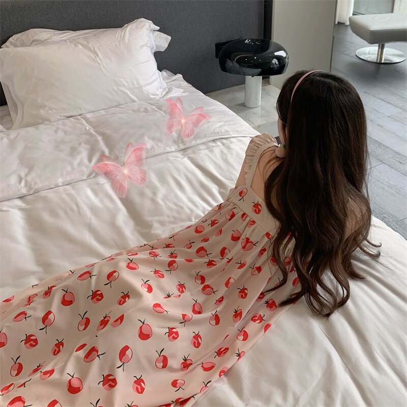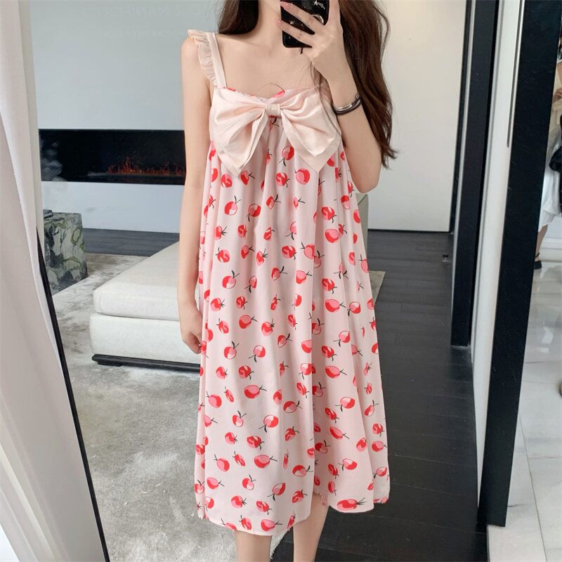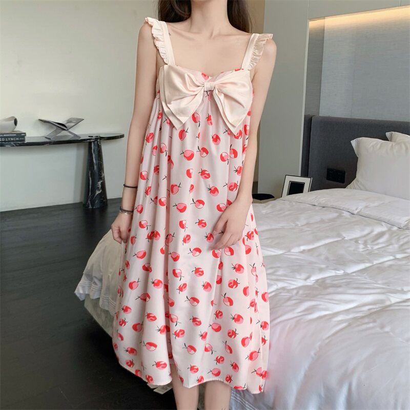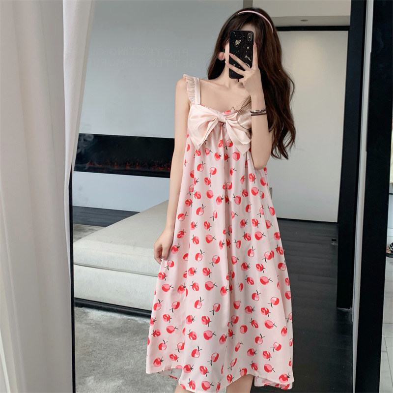 实拍实价 纯欲风设计感蝴蝶结飞飞袖吊带睡衣家居服薄款甜美睡裙