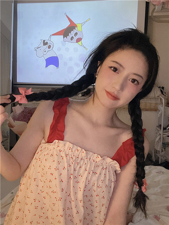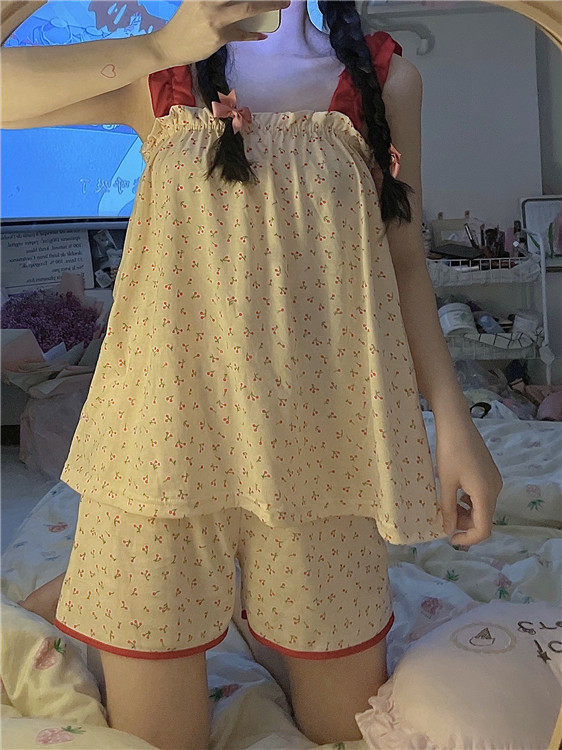 实拍 实价 甜美樱桃吊带上衣+短裤睡衣套装