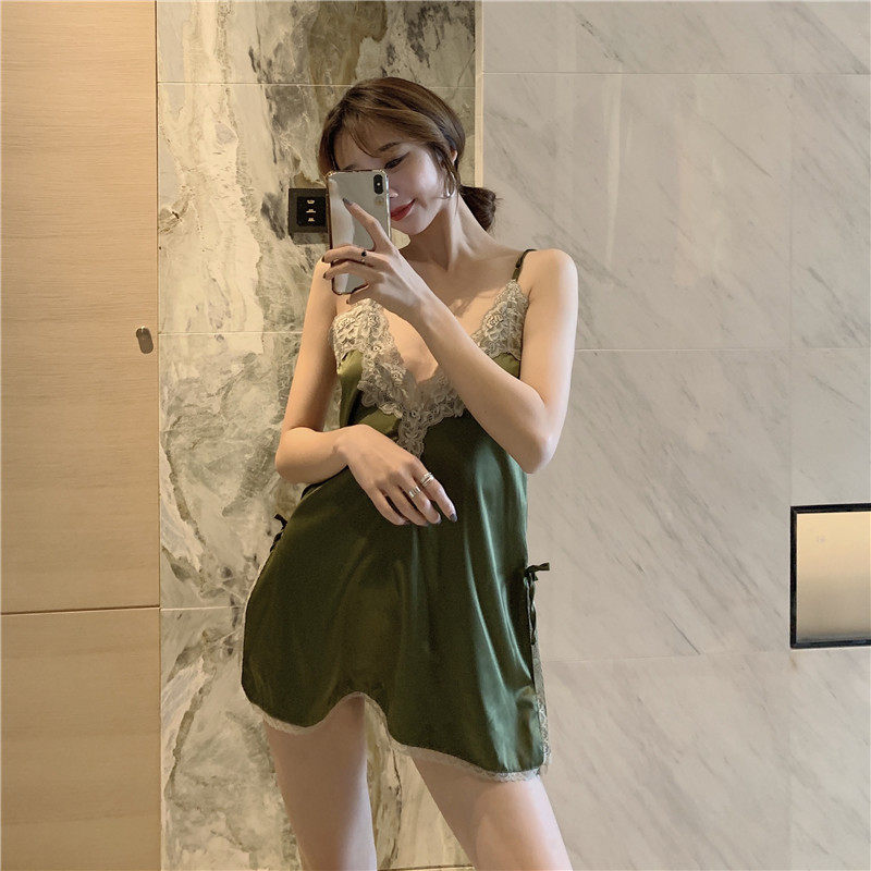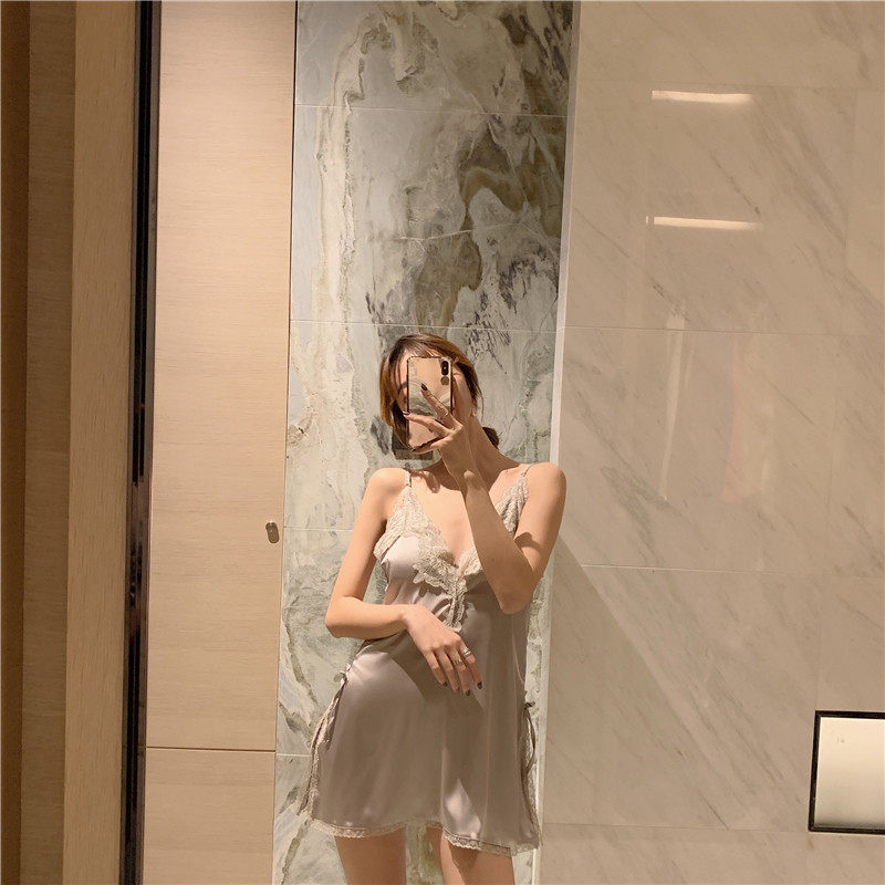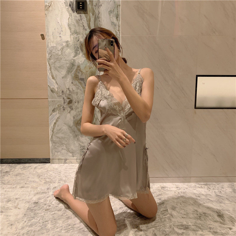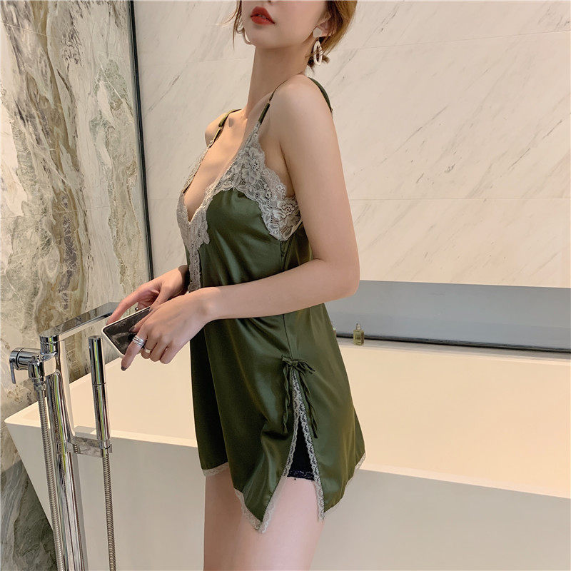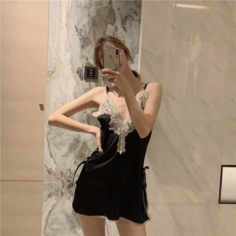 实拍实价 真丝绸缎蕾丝边深V领性感吊带背心睡衣