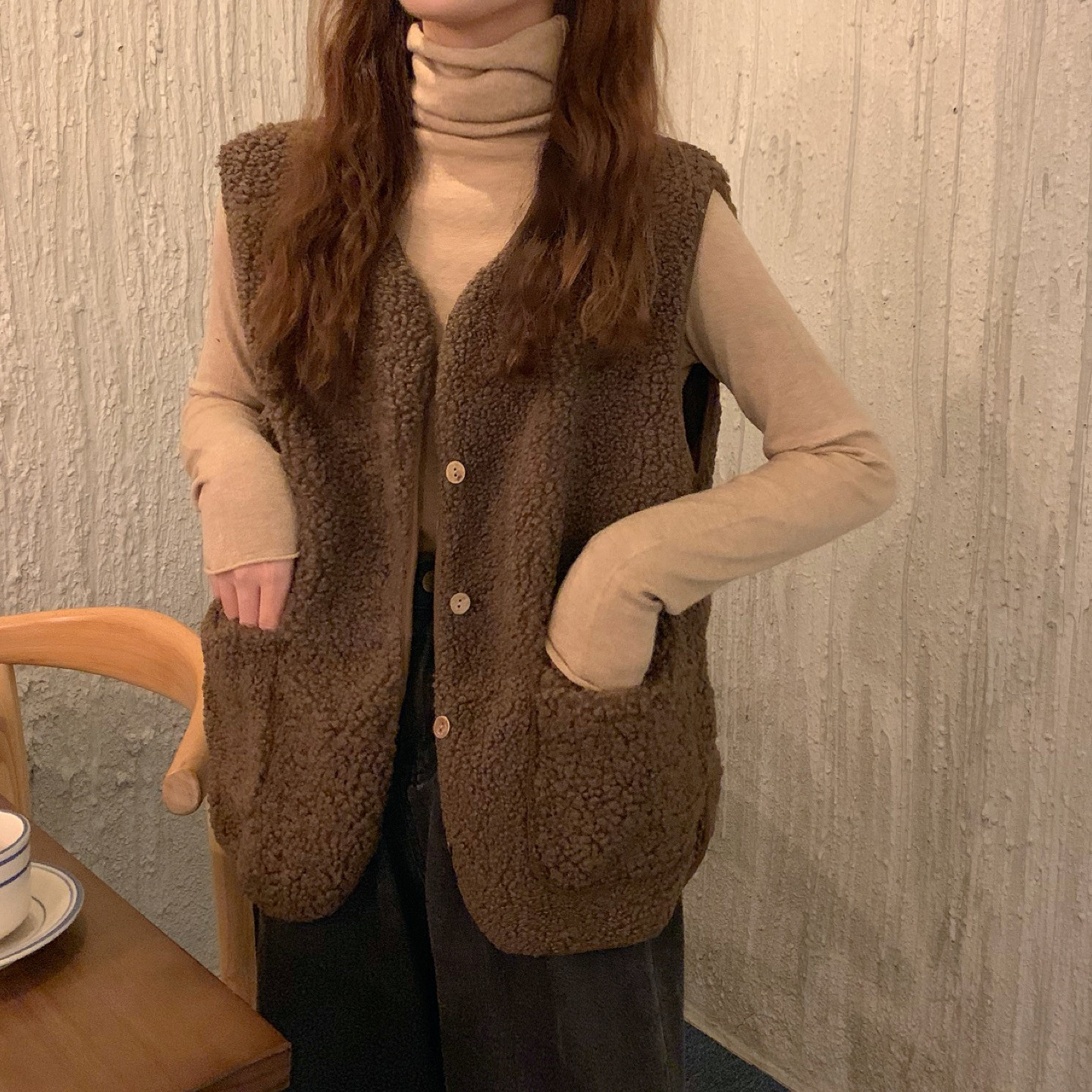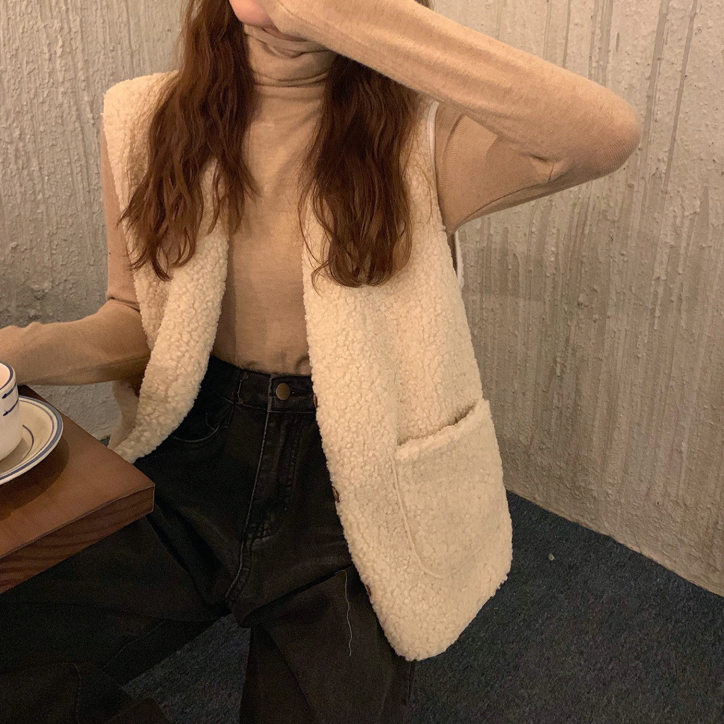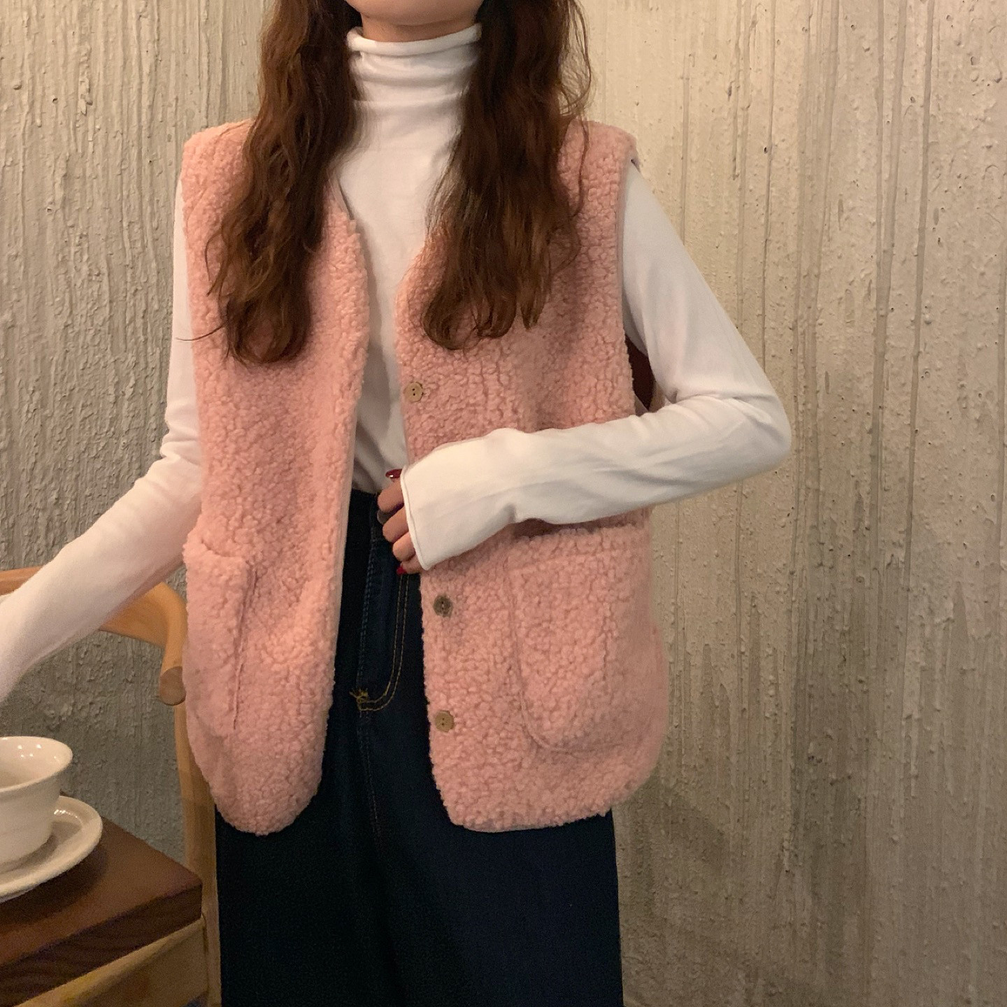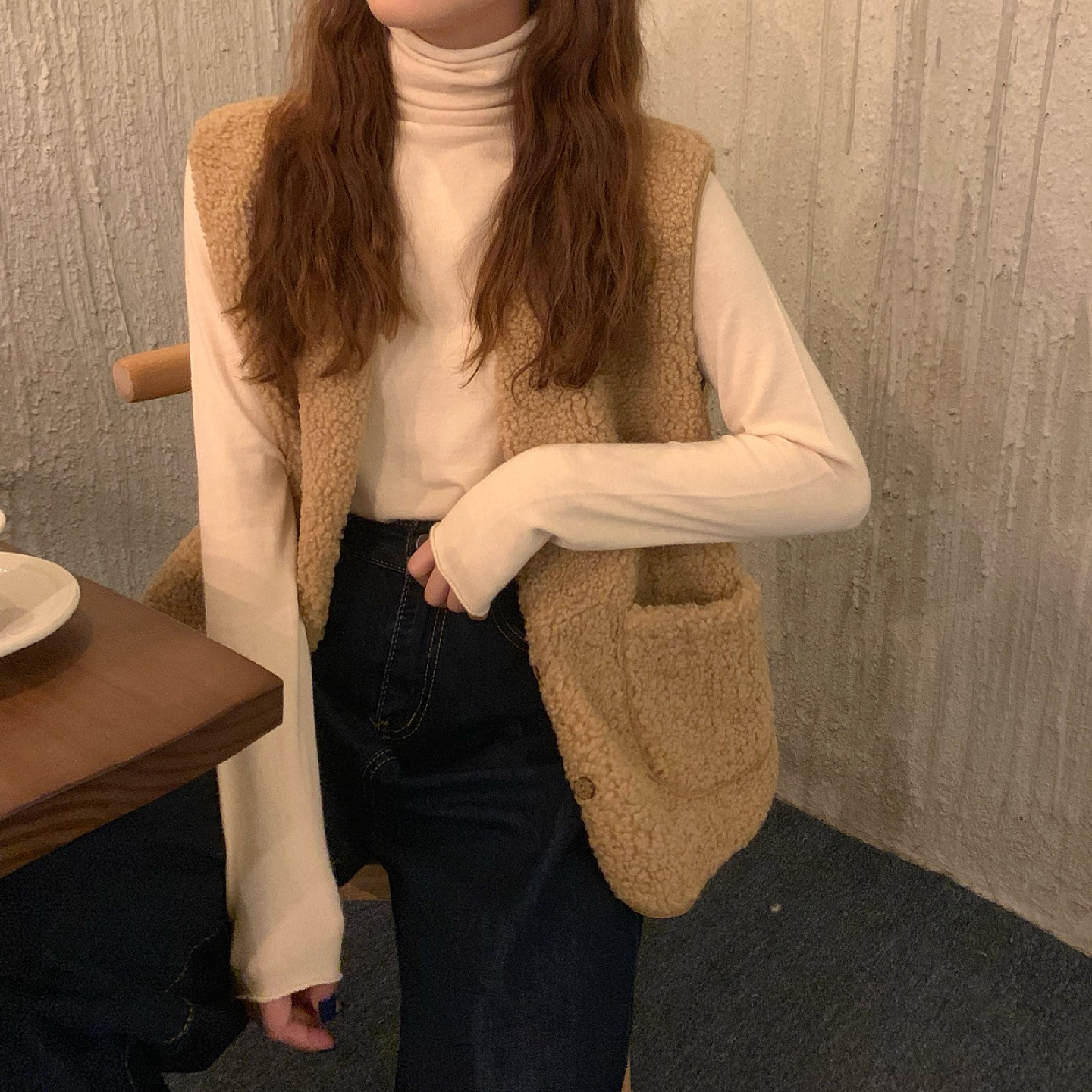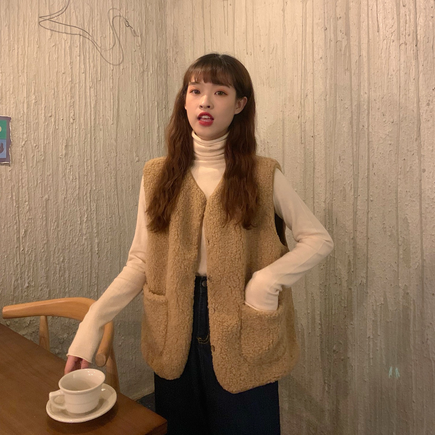 - 颜色分类:8905米杏色马甲单件