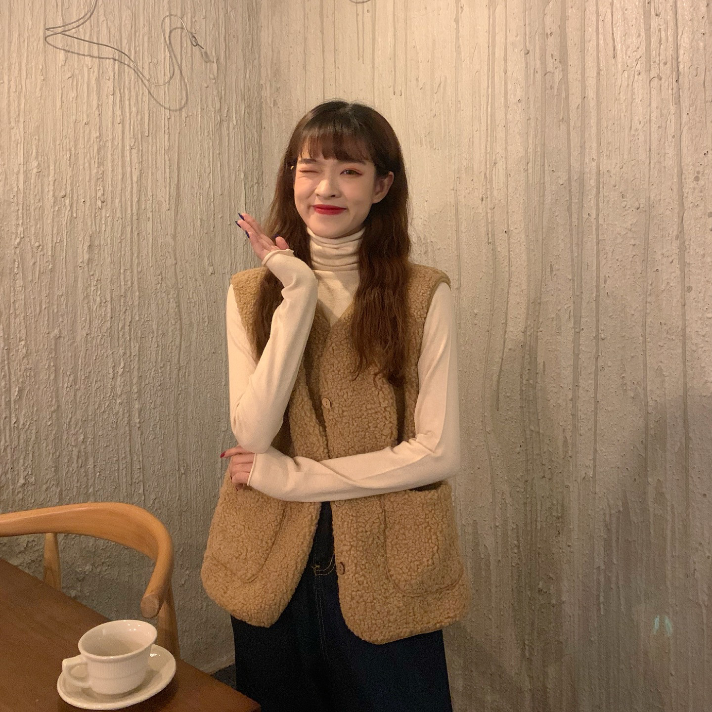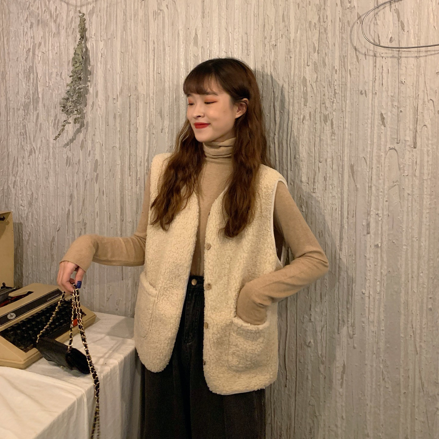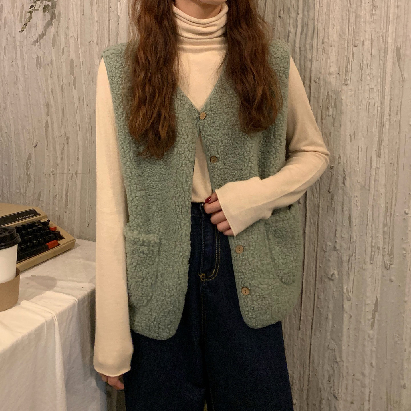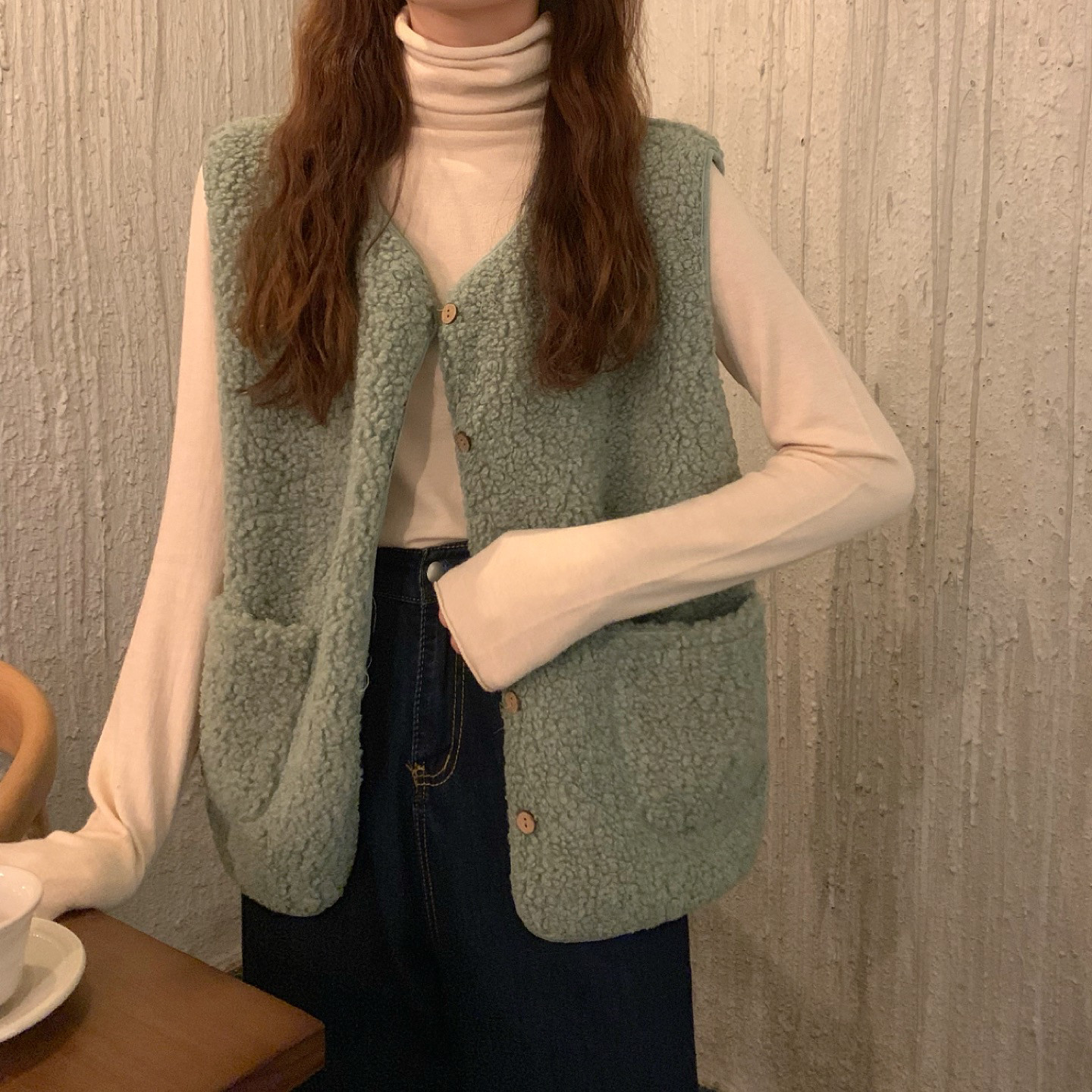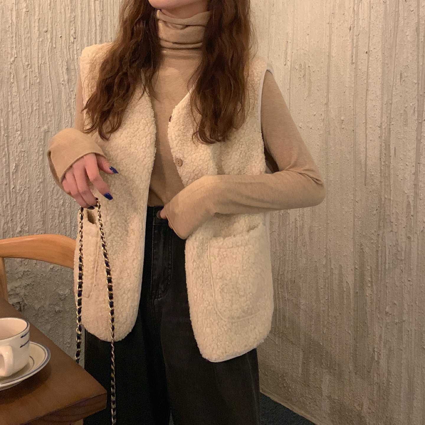 - 颜色分类:8905米杏色马甲单件