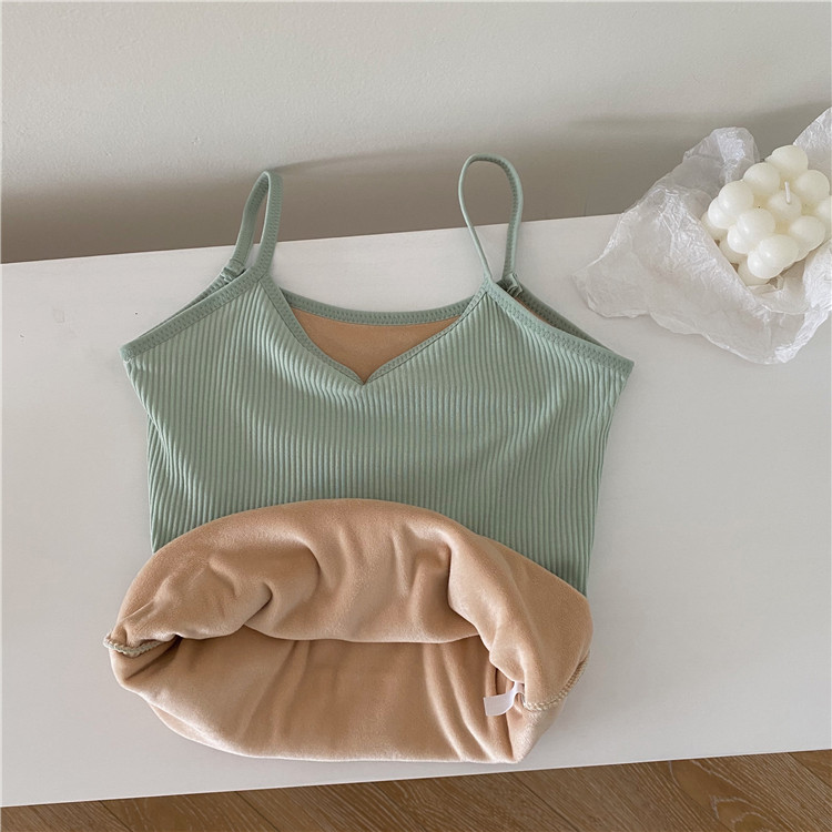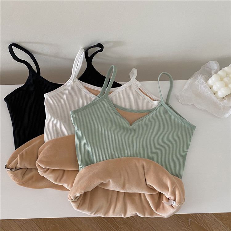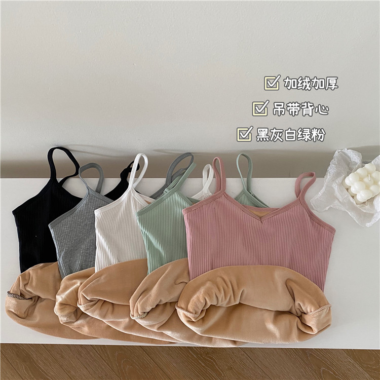 实价实拍 控3秋冬韩版内搭吊带背心加绒加厚保暖打底衫上衣女