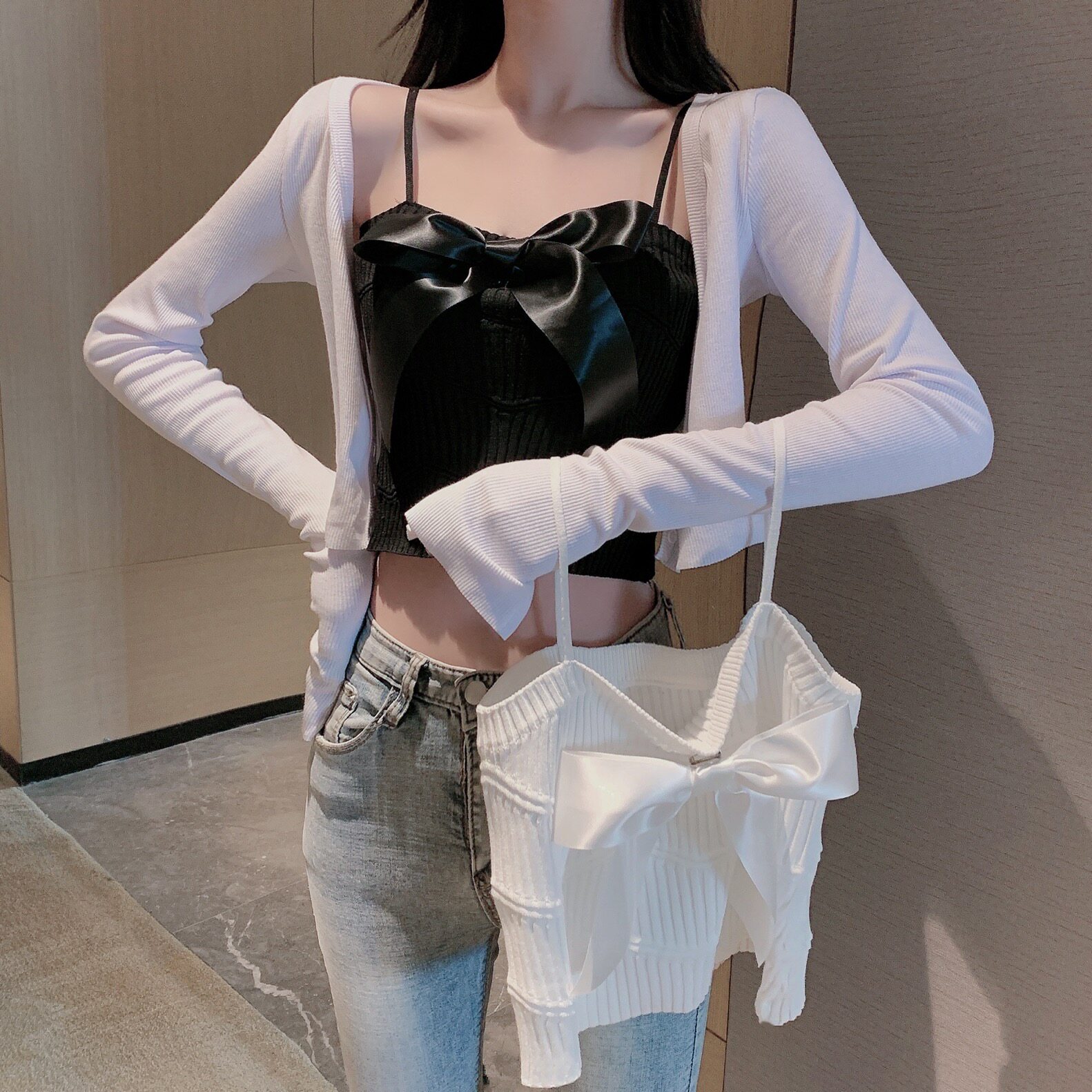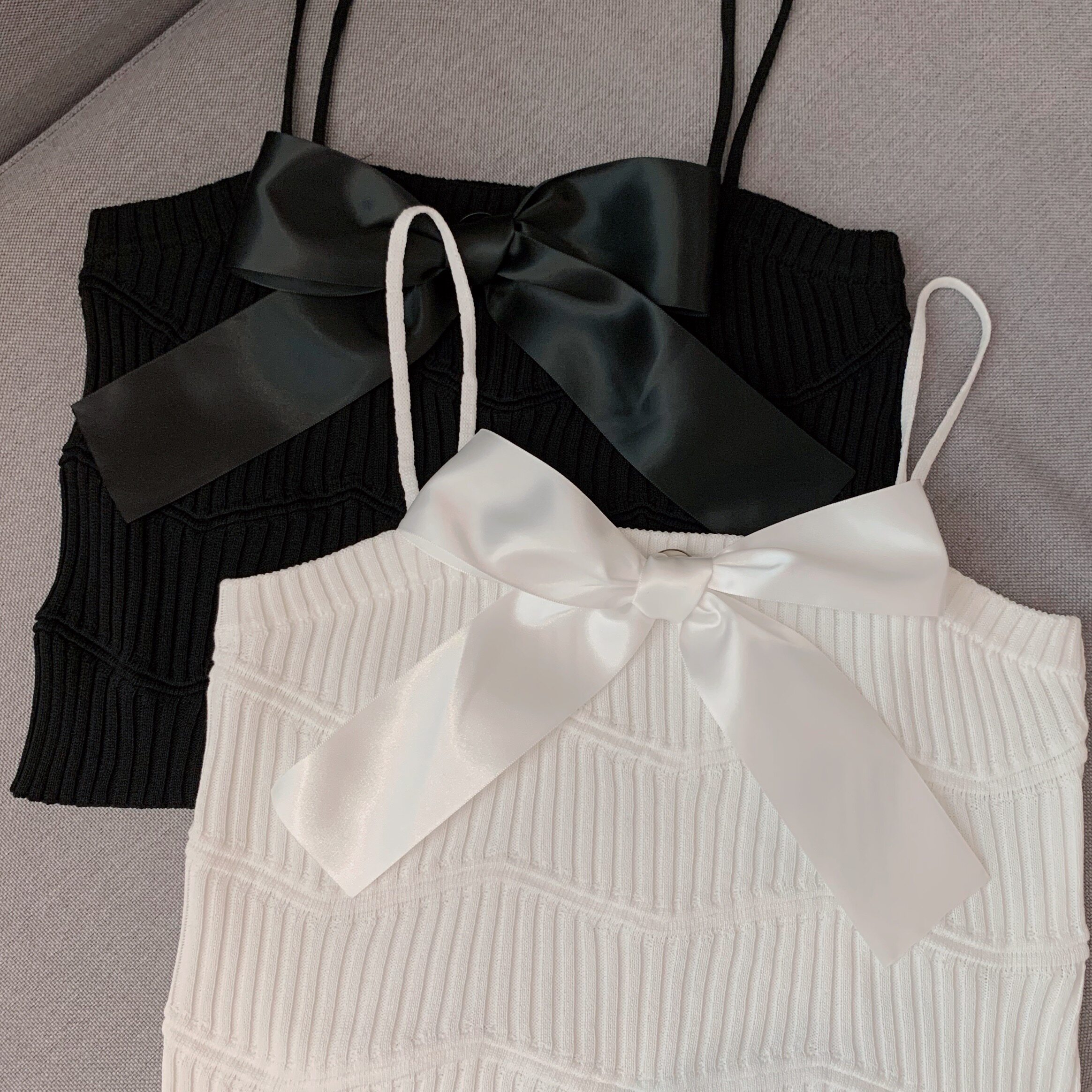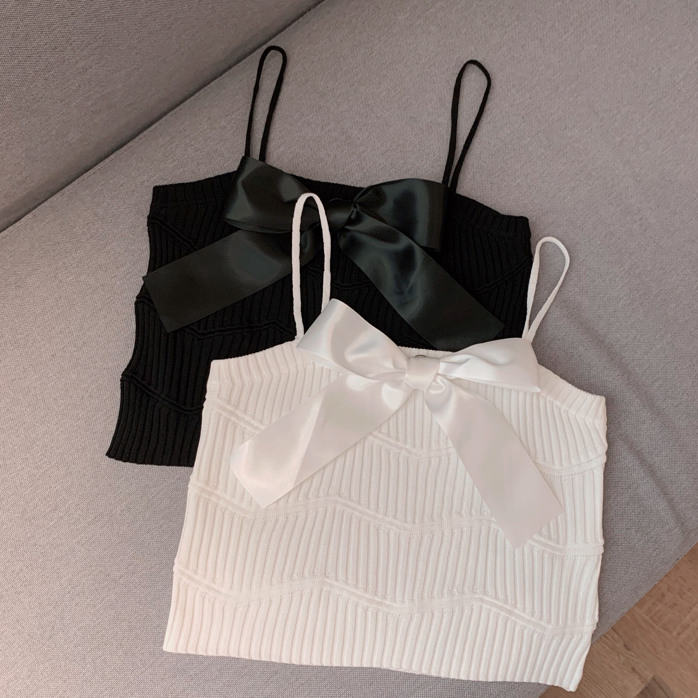 实拍实价 秋夏季性感蝴蝶结冰丝针织抹胸吊带背心心机打底上衣